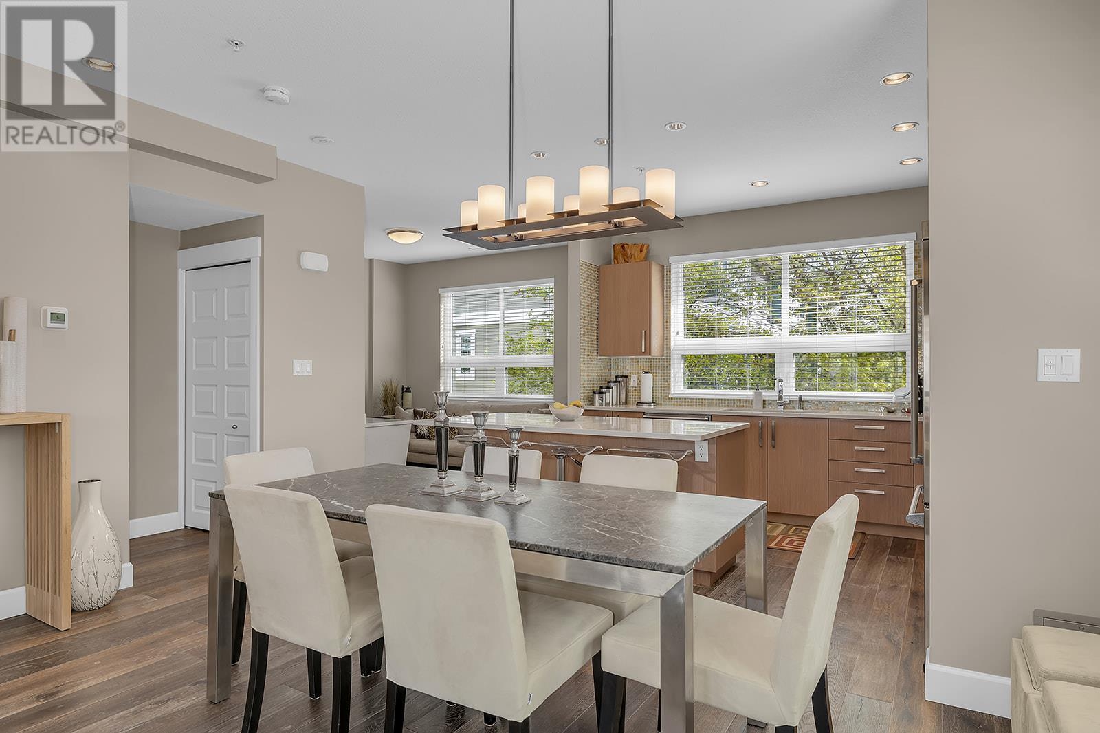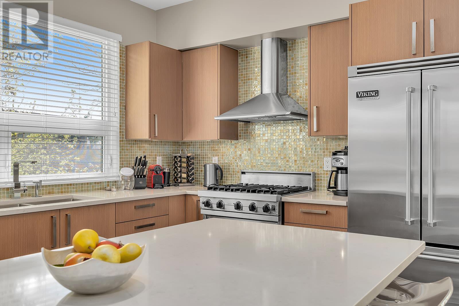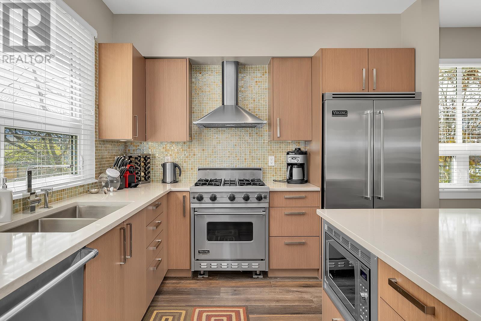 Just steps away from the beach and down the road from Pandosy’s hub of boutique stores and highly-rated restaurants is this perfectly located home. This bright and spacious Gyro Beach townhouse could be yours just in time for a beautiful Kelowna summer. The best location in the community, this three-level end townhome is bright, spacious and private. The main living area features an abundance of natural light. The kitchen is detailed with sleek cabinets, quartz countertops, Viking appliances including a gas stove, and opens up to a generous dining and living area. Nano doors connect your living area to the patio, ensuring seamless indoor/outdoor living and entertaining. Enjoy views of greenspace and Okanagan Lake! Plus, just off the kitchen is an alcove perfect for lounging or working, along with a powder room. Upstairs, you’ll find three bedrooms, including the primary suite with a spa-like bathroom and walk-in closet. On the lower level, your guests/family will enjoy the spacious bedroom, a bathroom and patio access to the fenced backyard. Close to all the amenities Kelowna’s Lower Mission has to offer. Summer’s coming… don’t miss out on this one! It’s time to live your beach life.