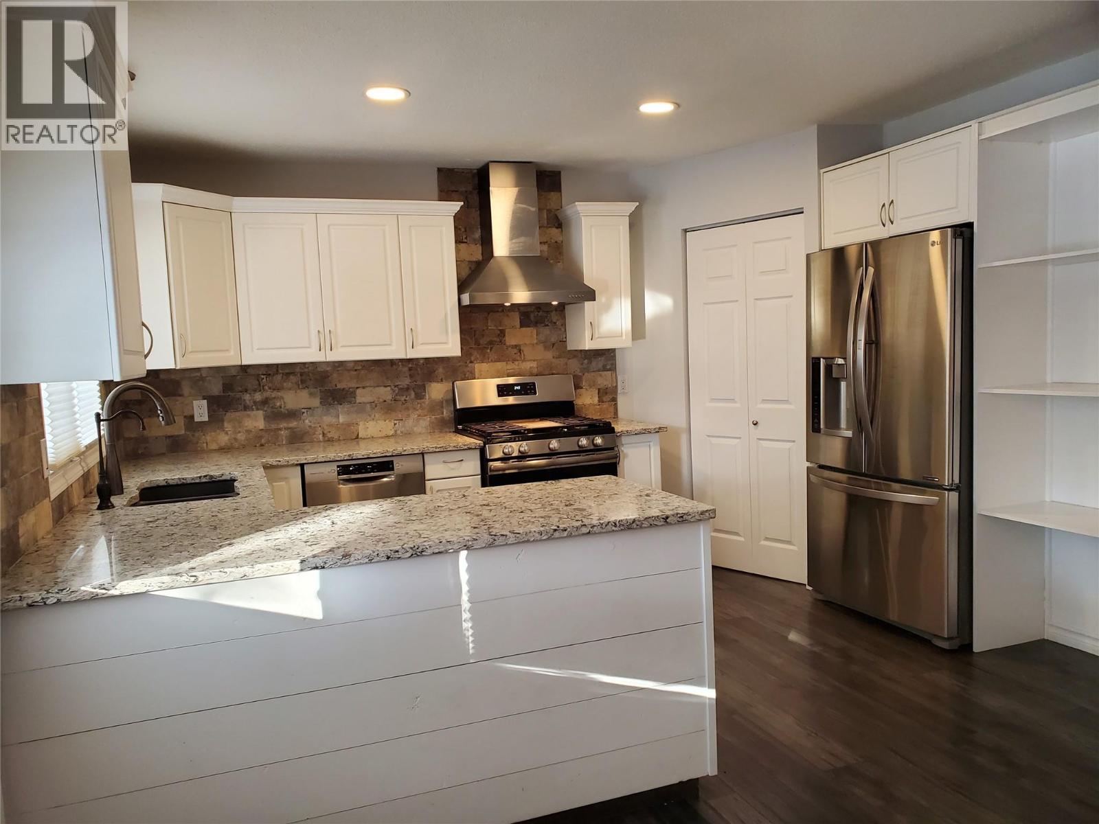 Excellent investment or holding property that has recently been updated and features new zoning with lane access. This nicely updated rancher offers wheelchair accessibility, 3 bedrooms (2 on the main floor and 1 downstairs), and 2 full bathrooms. Interior updates include a newer furnace, hot water tank, laminated floors, interior doors, fresh paint, new window coverings, a refinished gas fireplace, and a washer and dryer. The stylish kitchen boasts granite countertops, a tiled backsplash, newer stainless steel appliances, and a double undermount sink. The main bedroom provides ample closet space and features a barn door leading to an adjacent ensuite, which includes double marble sinks, a tiled floor, and a walk-in tiled shower. The property is situated in a quiet neighborhood and features a beautifully landscaped, fenced backyard with a flagstone patio, a garden area, a 12.5’ x 8’ rear shed for storage, and a covered seating area perfect for summer barbecues. A large double carport and driveway offer plenty of parking, with convenient access from a rear laneway. This location is ideal, close to the Vernon hospital, downtown, recreation facilities, restaurants, parks, and numerous amenities. Photos are prior to the tenants moving in, tenants to vacate November 30th, 2025 for a quick possession. (id:21321)