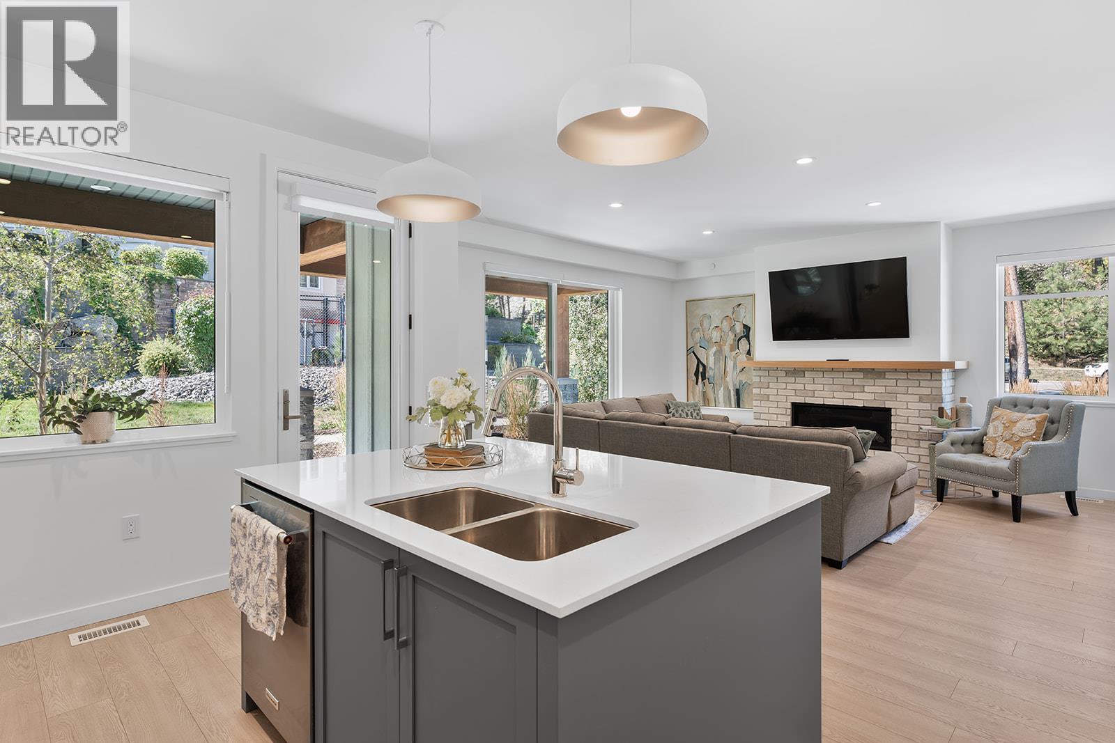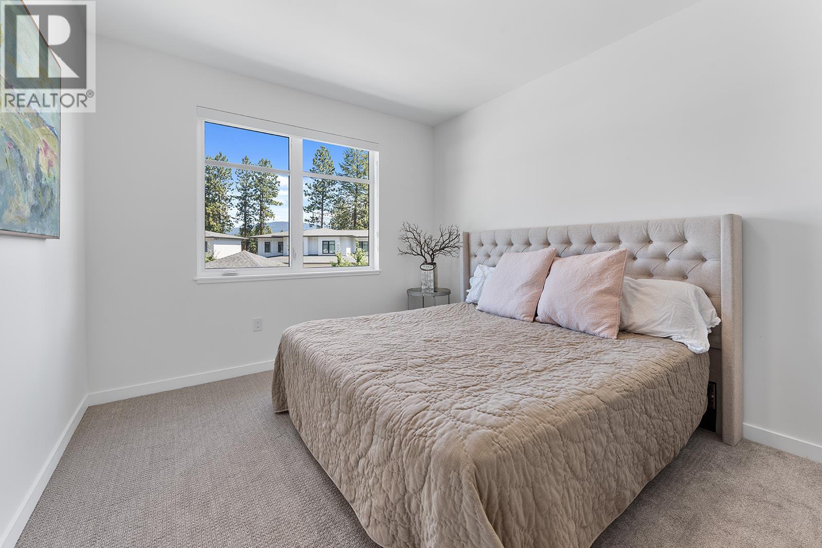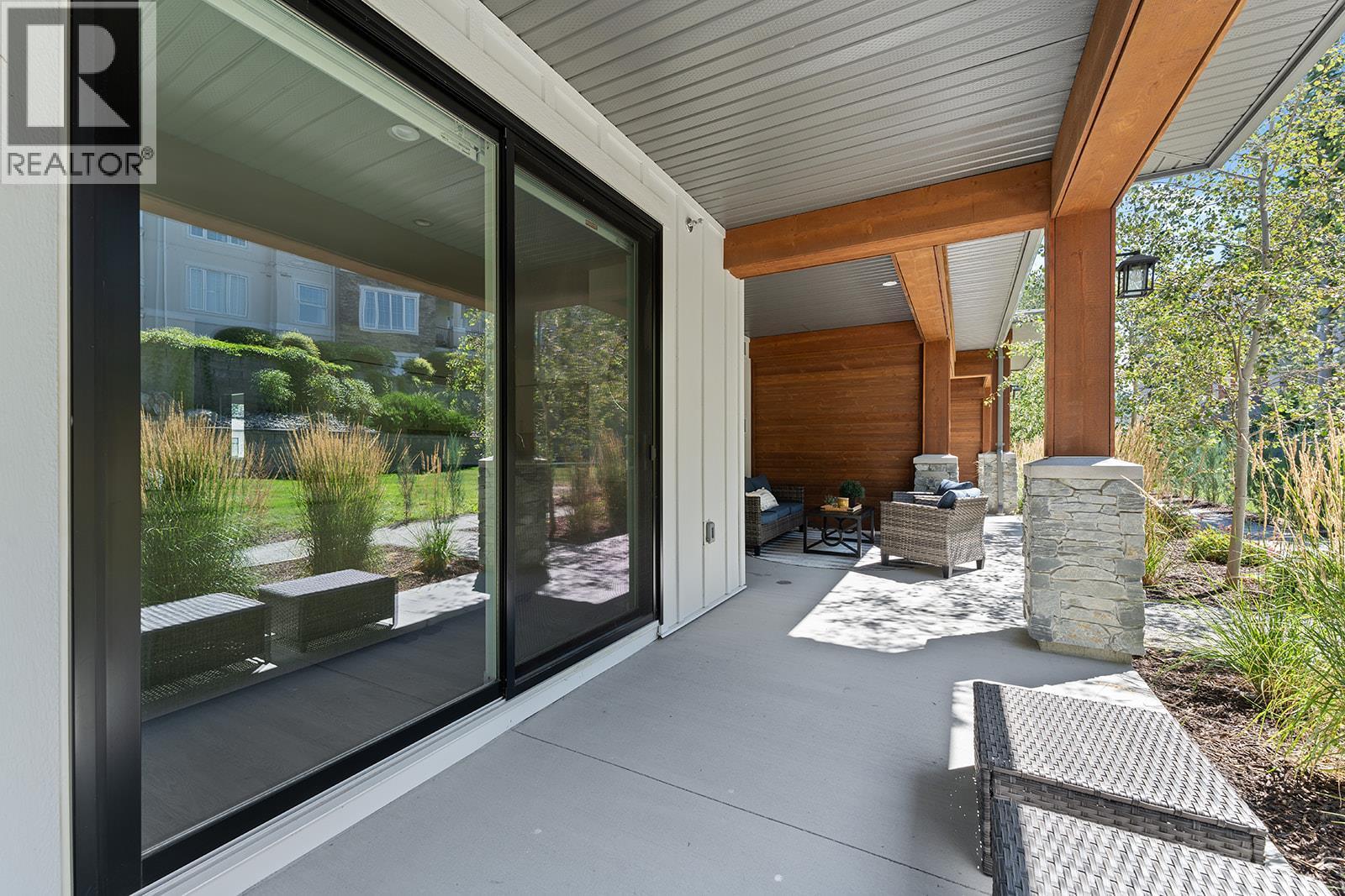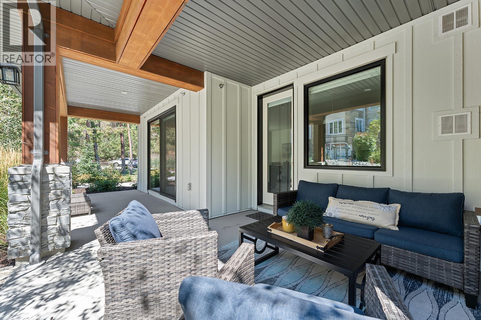 This bright and beautifully designed corner unit at Quail Landing offers the perfect combination of comfort, style, and single level living convenience. Featuring 2 bedrooms and 2 bathrooms, the open concept layout is filled with natural light thanks to large windows and soaring ceilings, creating an airy and inviting atmosphere. The kitchen is a true standout, perfect for both everyday living and entertaining. Complete with a quartz topped island that offer tons of cabinet storage, premium appliances, and sleek modern cabinetry with tasteful finishes. The spacious primary suite includes a walk in closet and a spa like ensuite for the ultimate retreat. Step outside through sliding doors to a covered patio with a natural gas BBQ hookup. Perfect for soaking in those warm Okanagan evenings. Down the hall, you’ll find a second spacious bedroom and full bathroom, ideal for guests or family, along with a great laundry space for added convenience. Set within a quiet, beautifully maintained community, this home offers a peaceful retreat surrounded by nature. Residents enjoy access to scenic walking trails that wind through the area, as well as a private fire pit gathering space. Perfect for relaxing evenings or connecting with neighbours. The location puts you in the middle of nature and great recreation, just minutes from UBCO, Kelowna International Airport (YLW), and all the shops, restaurants, and services found in the growing University District. (id:21321)