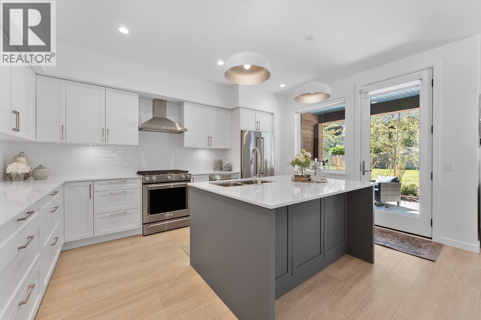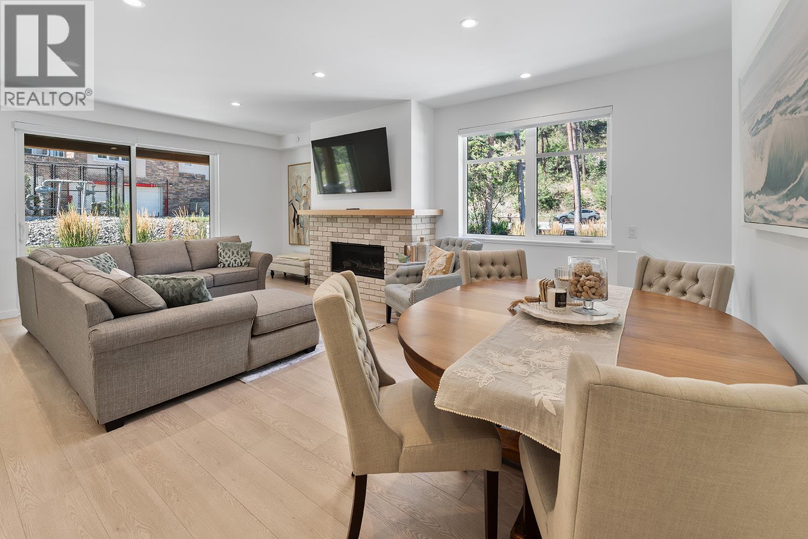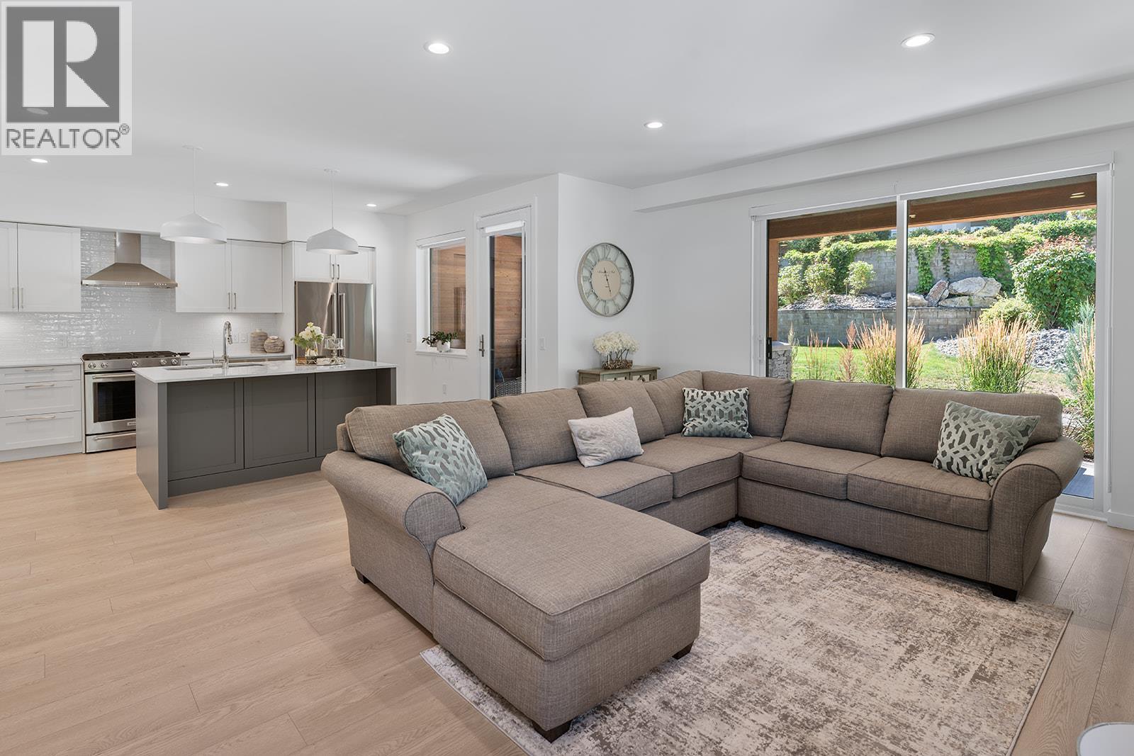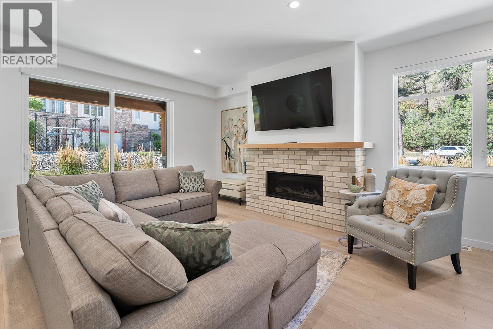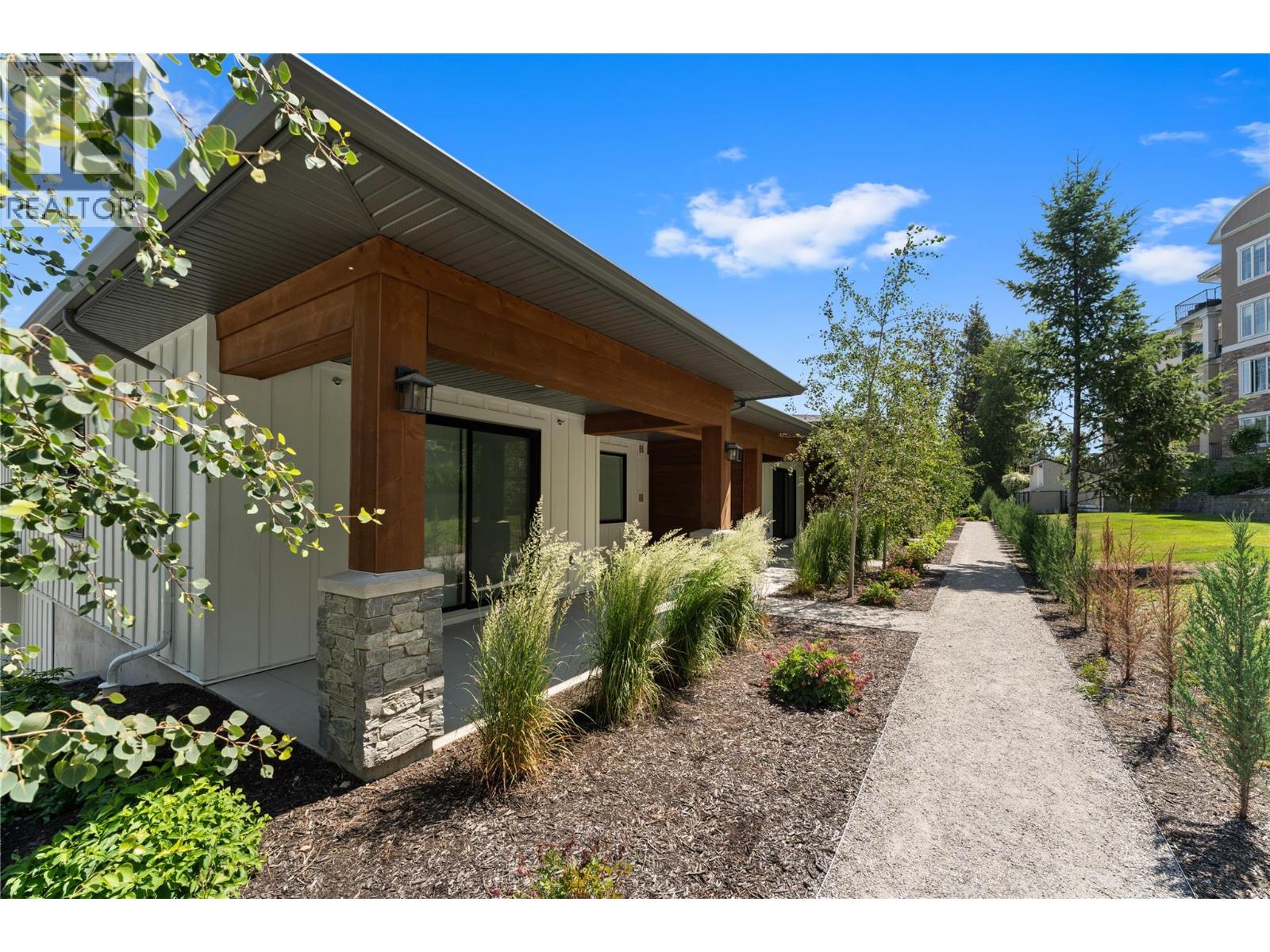 This bright and beautifully designed corner unit at Quail Landing offers the perfect combination of comfort, style, and single level living convenience. Featuring 2 bedrooms and 2 bathrooms, the open concept layout is filled with natural light thanks to large windows and soaring ceilings, creating an airy and inviting atmosphere. The kitchen is a true standout, perfect for both everyday living and entertaining. Complete with a quartz topped island that offer tons of cabinet storage, premium appliances, and sleek modern cabinetry with tasteful finishes. The spacious primary suite includes a walk in closet and a spa like ensuite for the ultimate retreat. Step outside through sliding doors to a covered patio with a natural gas BBQ hookup. Perfect for soaking in those warm Okanagan evenings. Down the hall, you’ll find a second spacious bedroom and full bathroom, ideal for guests or family, along with a great laundry space for added convenience. Set within a quiet, beautifully maintained community, this home offers a peaceful retreat surrounded by nature. Residents enjoy access to scenic walking trails that wind through the area, as well as a private fire pit gathering space. Perfect for relaxing evenings or connecting with neighbours. The location puts you in the middle of nature and great recreation, just minutes from UBCO, Kelowna International Airport (YLW), and all the shops, restaurants, and services found in the growing University District. (id:21321)
