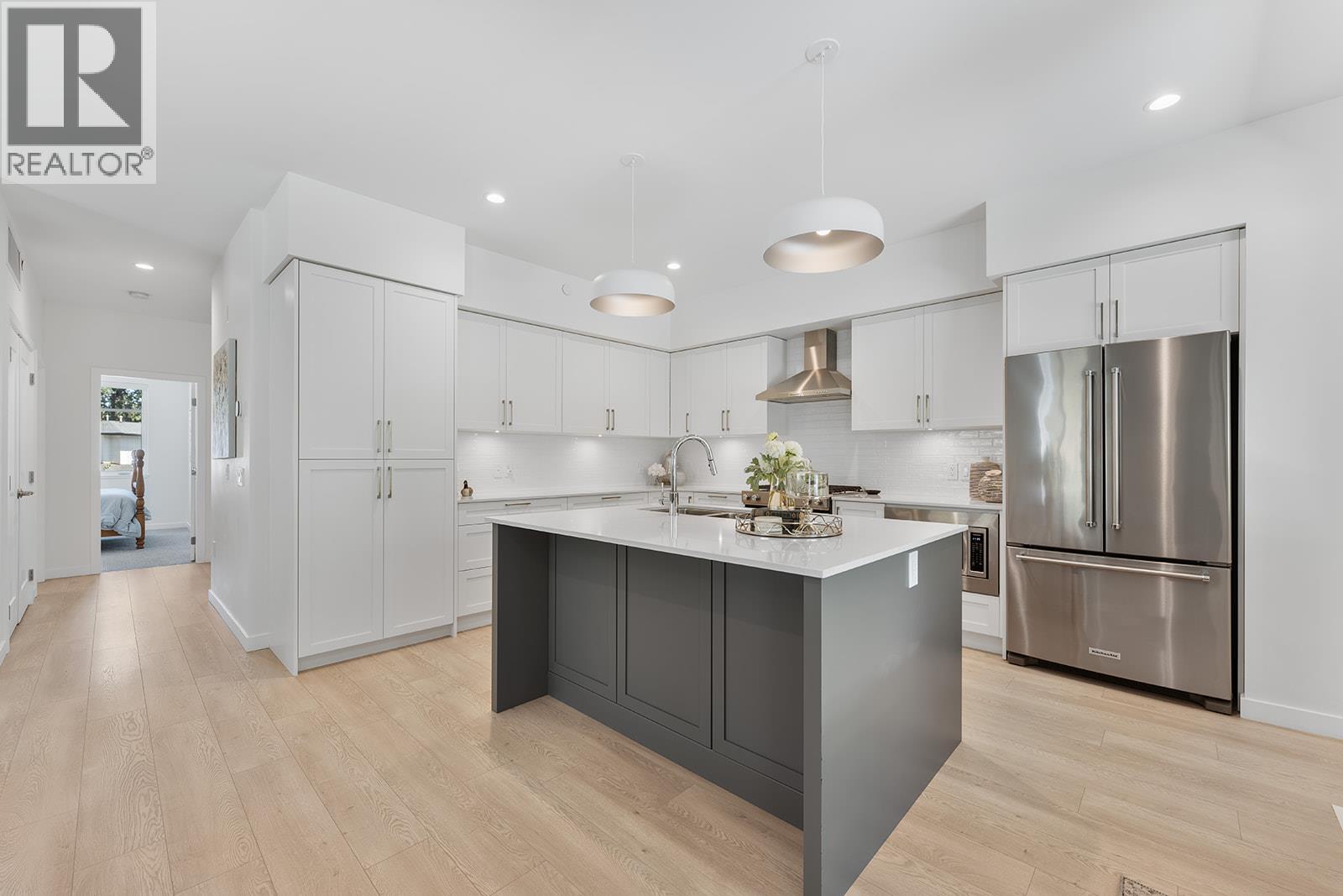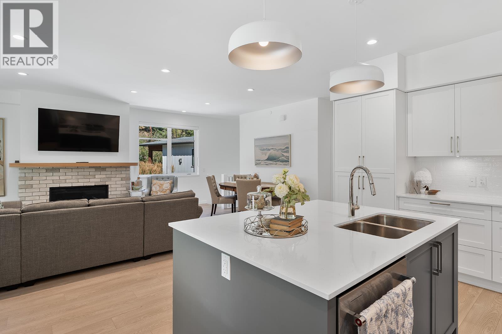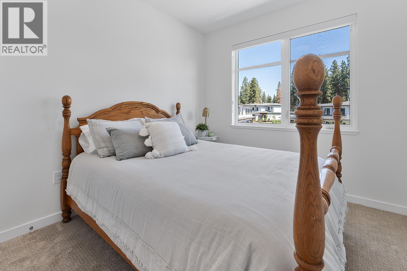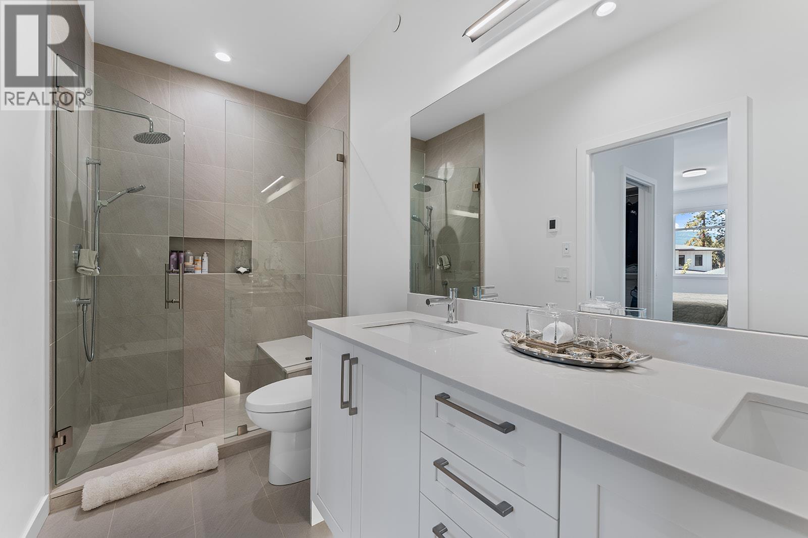 This bright and beautifully designed corner unit at Quail Landing offers the perfect combination of comfort, style, and single level living convenience. Featuring 2 bedrooms and 2 bathrooms, the open concept layout is filled with natural light thanks to large windows and soaring ceilings, creating an airy and inviting atmosphere. The kitchen is a true standout, perfect for both everyday living and entertaining. Complete with a quartz topped island that offer tons of cabinet storage, premium appliances, and sleek modern cabinetry with tasteful finishes. The spacious primary suite includes a walk in closet and a spa like ensuite for the ultimate retreat. Step outside through sliding doors to a covered patio with a natural gas BBQ hookup. Perfect for soaking in those warm Okanagan evenings. Down the hall, you’ll find a second spacious bedroom and full bathroom, ideal for guests or family, along with a great laundry space for added convenience. Set within a quiet, beautifully maintained community, this home offers a peaceful retreat surrounded by nature. Residents enjoy access to scenic walking trails that wind through the area, as well as a private fire pit gathering space. Perfect for relaxing evenings or connecting with neighbours. The location puts you in the middle of nature and great recreation, just minutes from UBCO, Kelowna International Airport (YLW), and all the shops, restaurants, and services found in the growing University District. (id:21321)