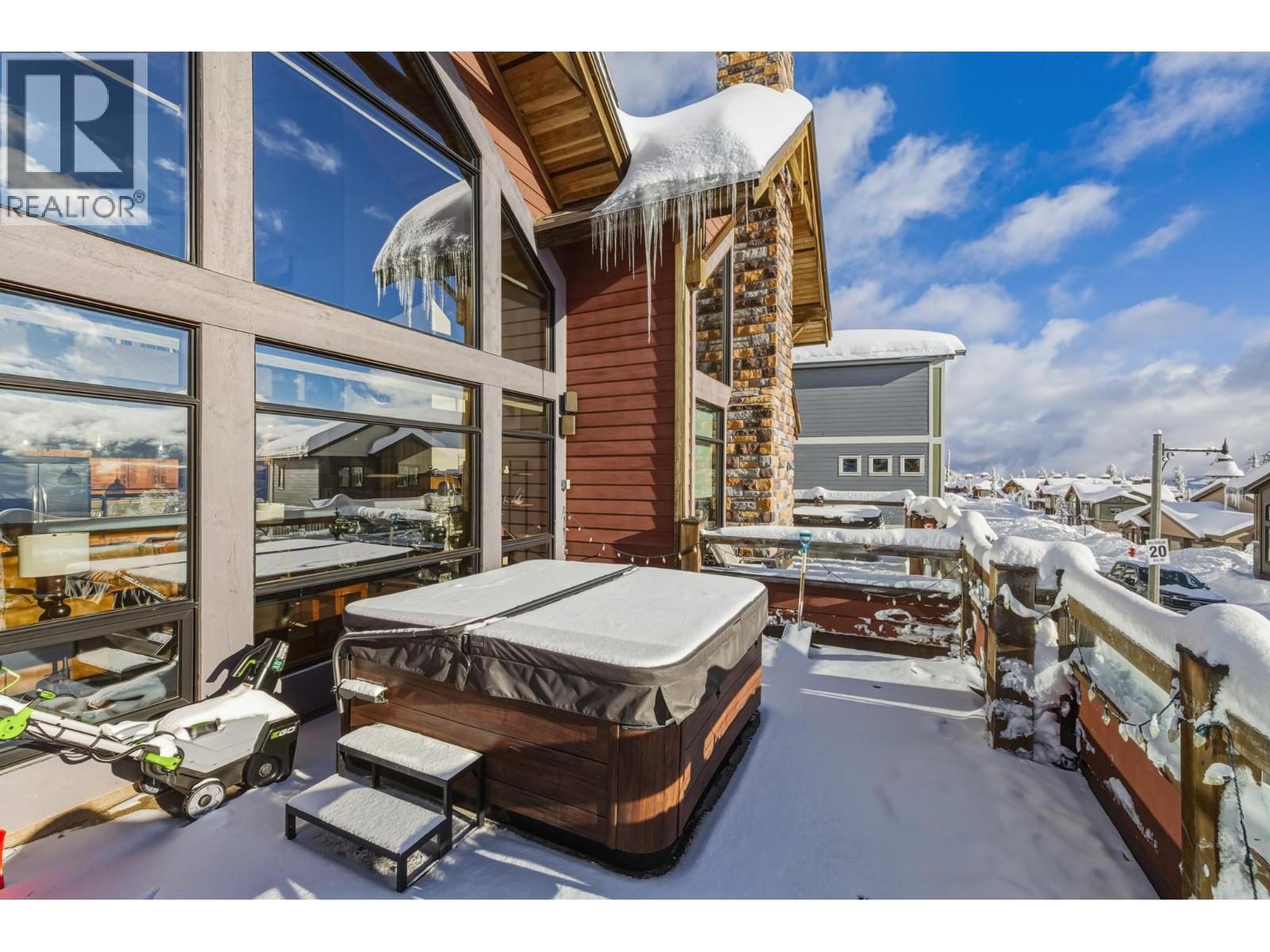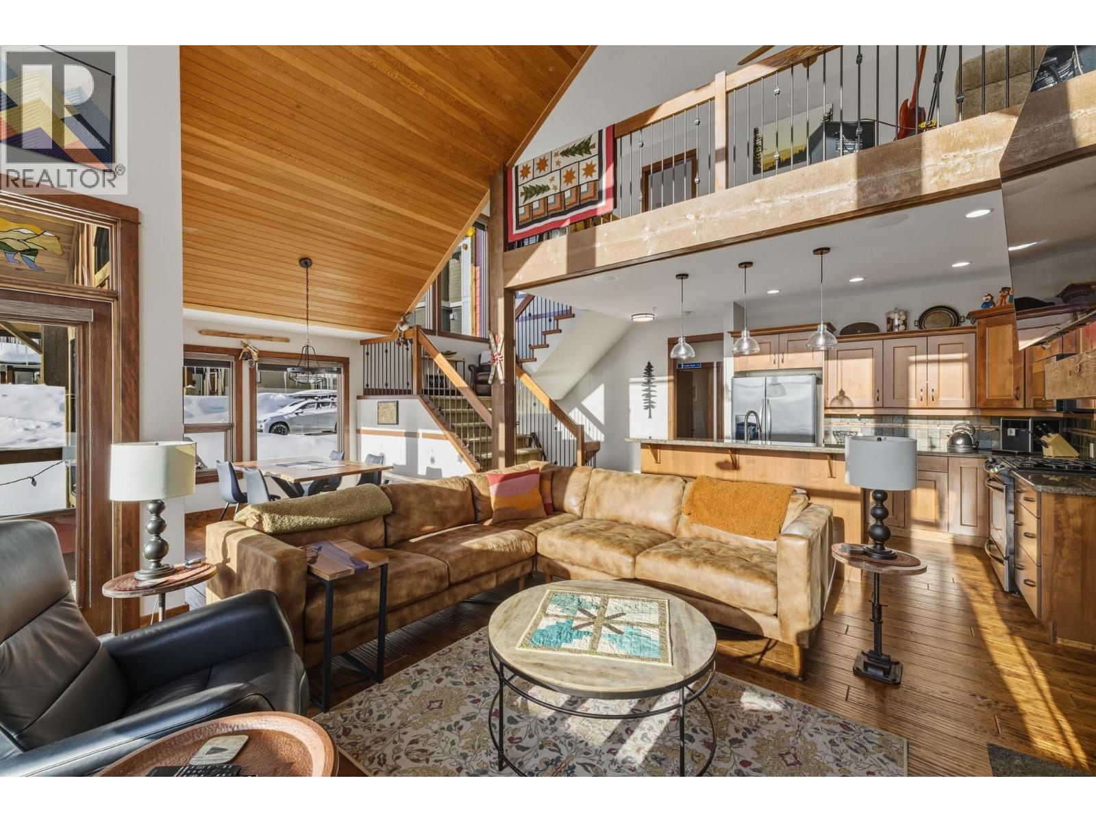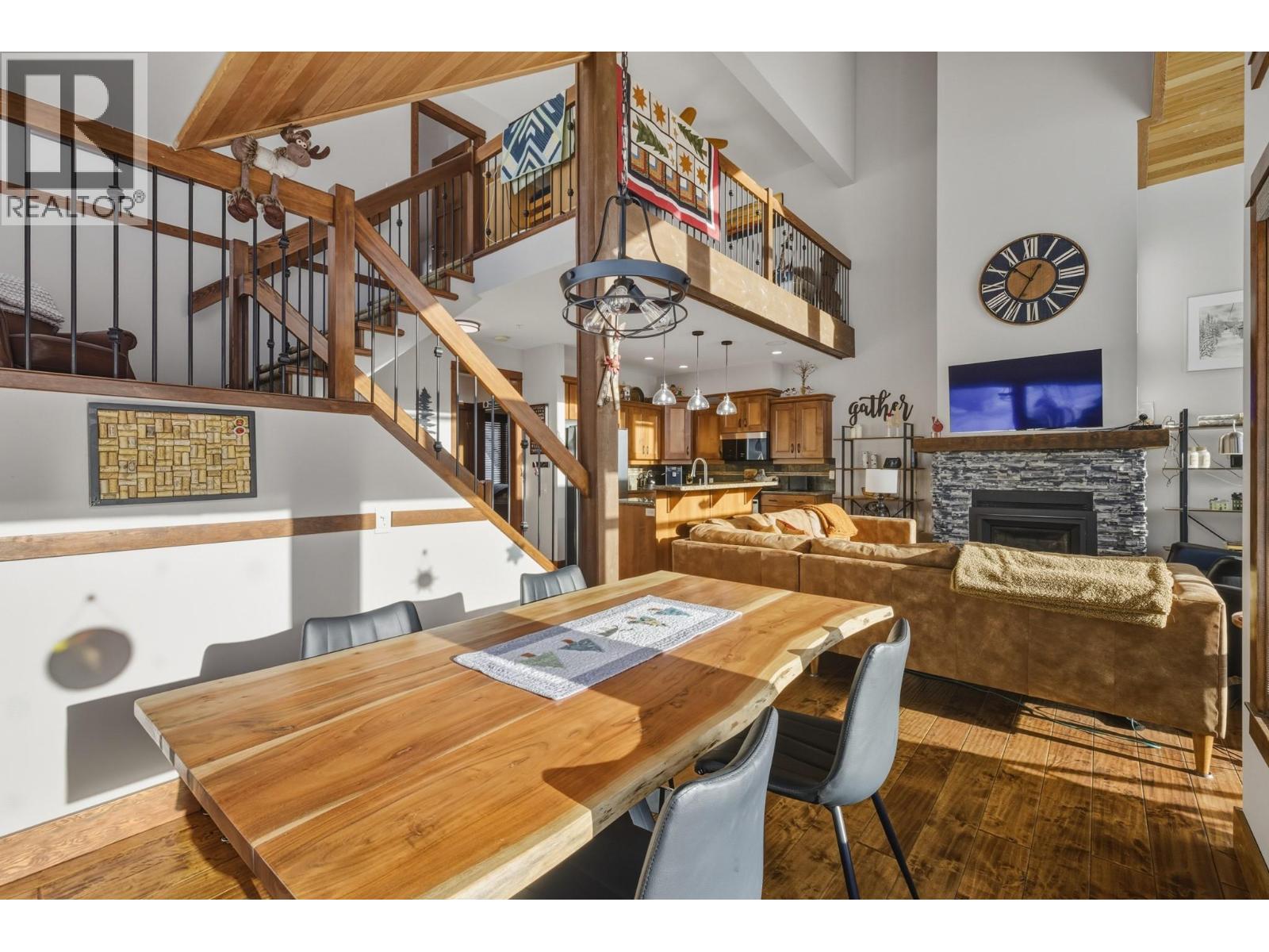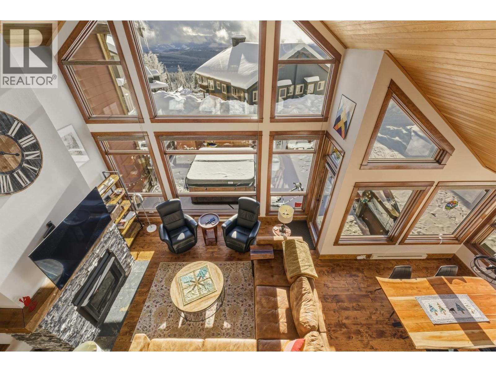 Welcome to Grizzly Ridge Estates! This is the original show home for the development and spares no detail in the quality of construction and thoughtful design. When you think of ski chalet, this is exactly what comes to mind. On the main floor you will find the vaulted and lofted main living space including Kitchen, living and Dining rooms, 2 spare bedrooms, a 3 piece bathroom with heated tile floors, plus floor to ceiling windows overlooking the large deck and views of the Monashee mountains. Walk upstairs to the spacious loft area with a fold out couch which continues into the massive Primary bedroom complete with its own gas fireplace, small patio and 4 piece ensuite with heated tile floors, dual vanity, walk in tile shower and water closet. On the lower level you will find the main entrance with in floor hot water heat throughout (including inside the garage), wine cellar under the stairs, laundry area, utility room and your oversized 2 car garage (28’x21’) plus room for 4 vehicles outside in your private driveway. Low strata fee’s are a bonus with the annual total for 2025 being just $923.43 ($76.95/mo but paid on an annual basis). (id:21321)