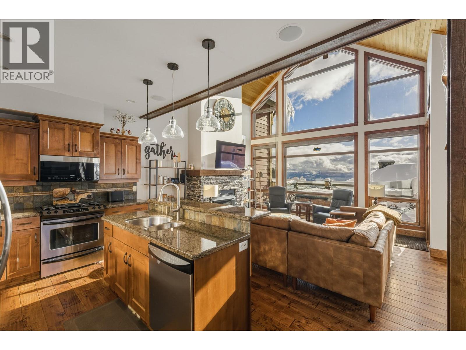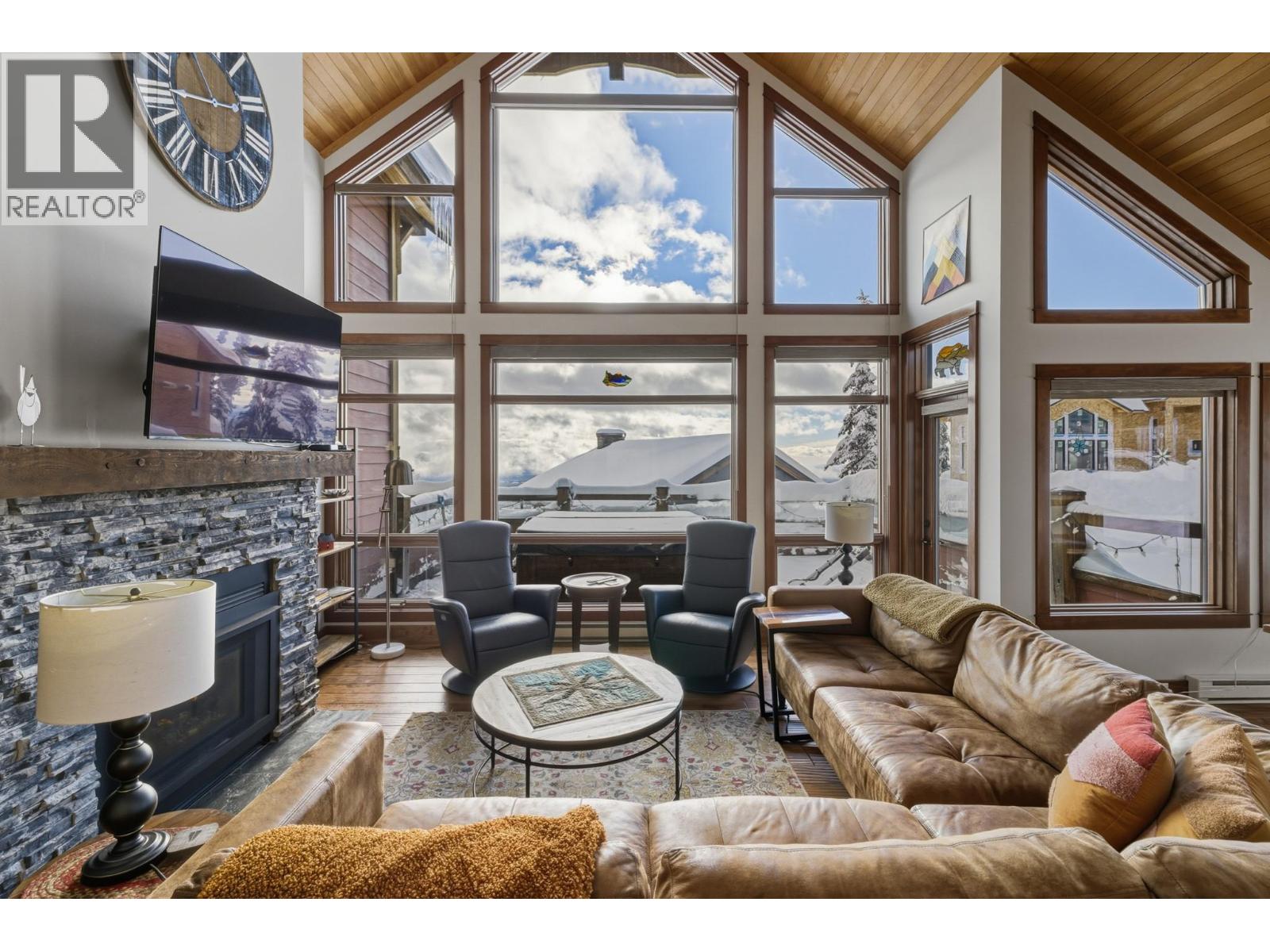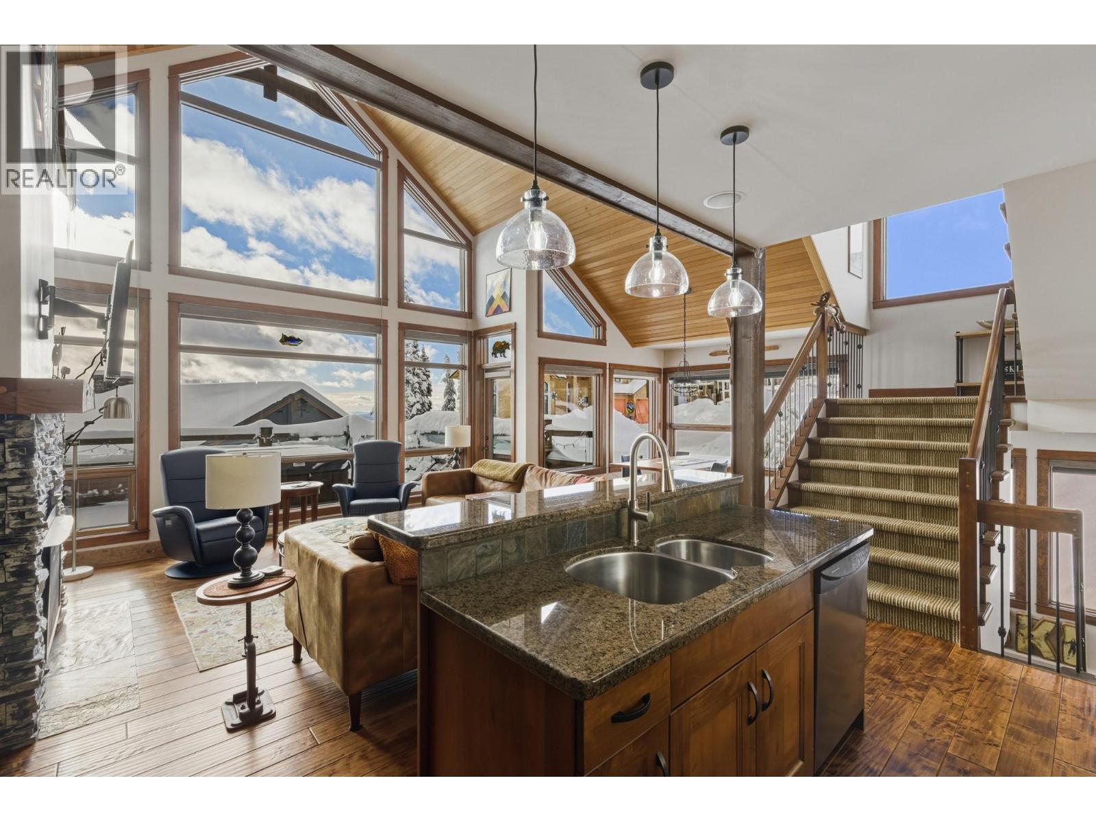 Welcome to Grizzly Ridge Estates! This is the original show home for the development and spares no detail in the quality of construction and thoughtful design. When you think of ski chalet, this is exactly what comes to mind. On the main floor you will find the vaulted and lofted main living space including Kitchen, living and Dining rooms, 2 spare bedrooms, a 3 piece bathroom with heated tile floors, plus floor to ceiling windows overlooking the large deck and views of the Monashee mountains. Walk upstairs to the spacious loft area with a fold out couch which continues into the massive Primary bedroom complete with its own gas fireplace, small patio and 4 piece ensuite with heated tile floors, dual vanity, walk in tile shower and water closet. On the lower level you will find the main entrance with in floor hot water heat throughout (including inside the garage), wine cellar under the stairs, laundry area, utility room and your oversized 2 car garage (28’x21’) plus room for 4 vehicles outside in your private driveway. Low strata fee’s are a bonus with the annual total for 2025 being just $923.43 ($76.95/mo but paid on an annual basis). (id:21321)