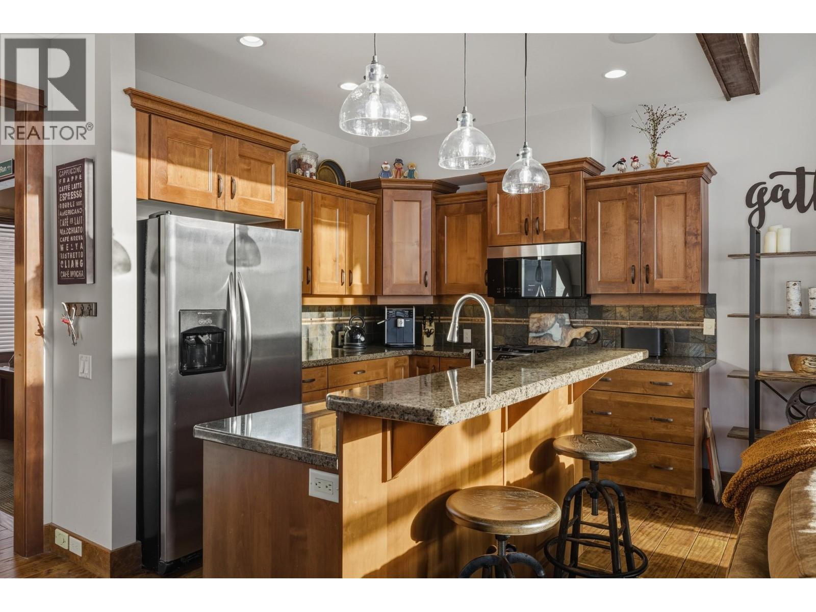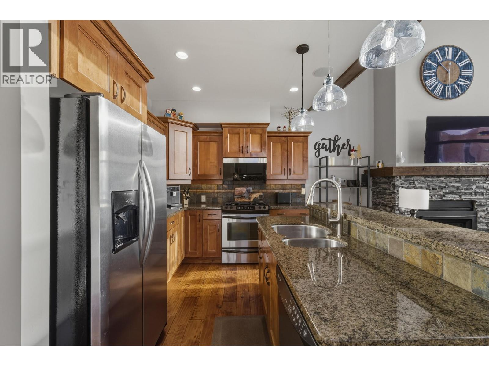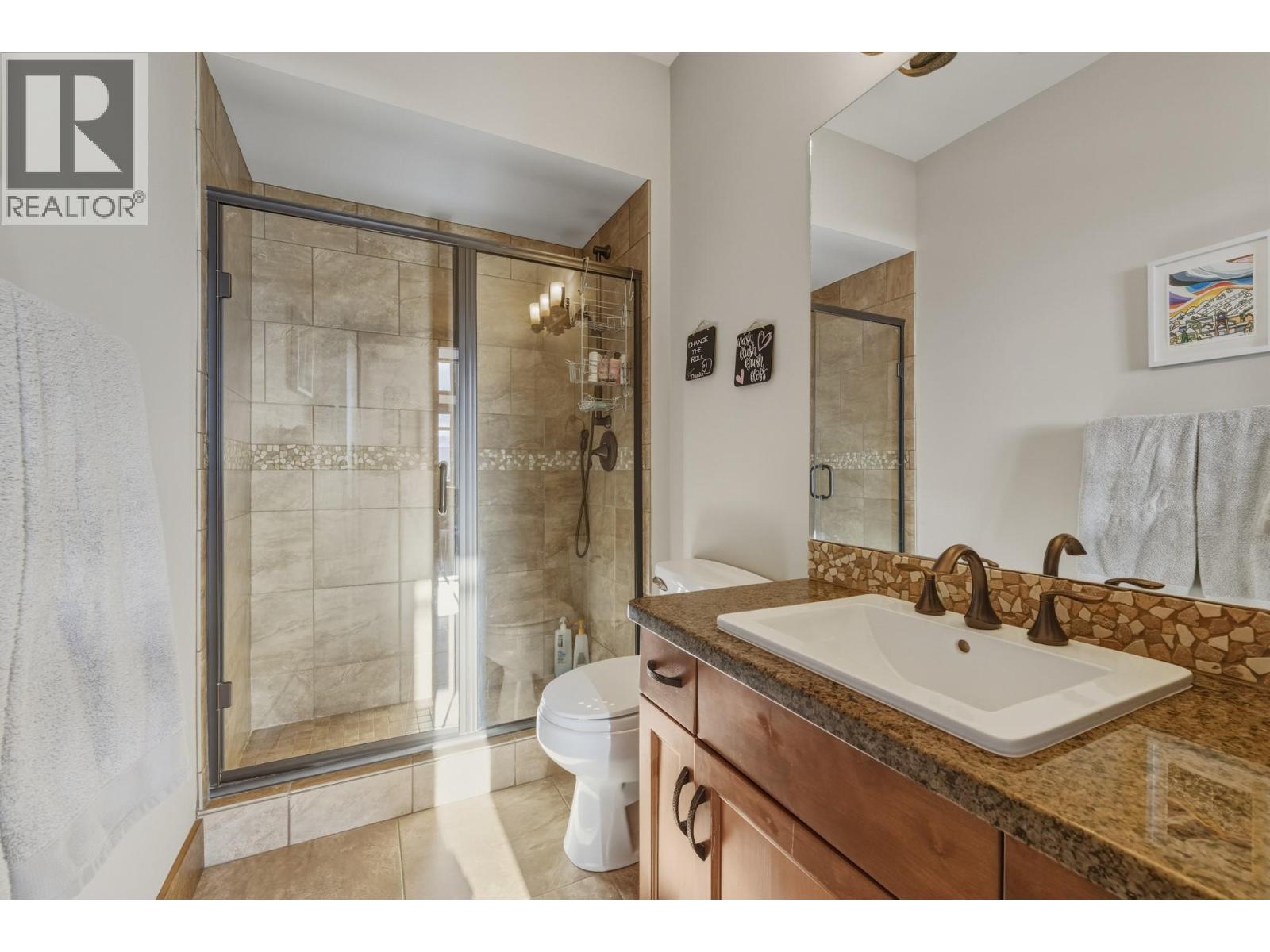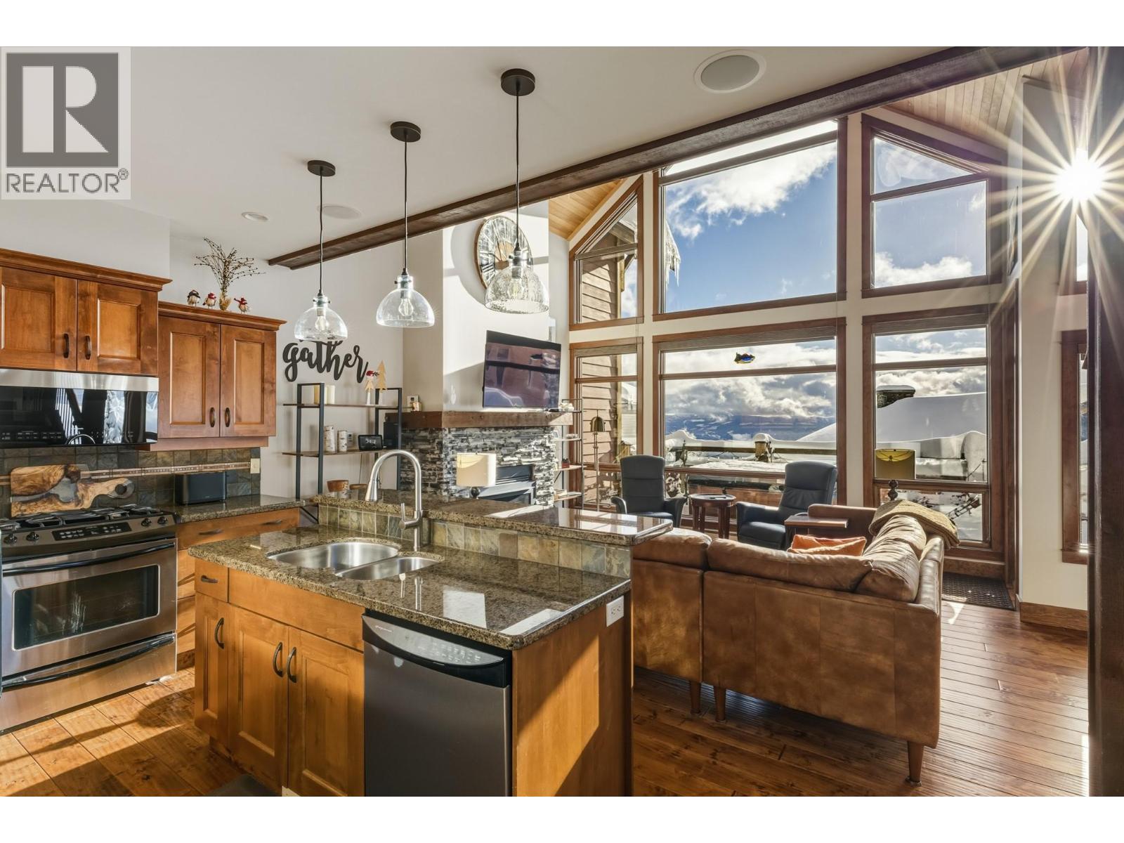 Welcome to Grizzly Ridge Estates! This is the original show home for the development and spares no detail in the quality of construction and thoughtful design. When you think of ski chalet, this is exactly what comes to mind. On the main floor you will find the vaulted and lofted main living space including Kitchen, living and Dining rooms, 2 spare bedrooms, a 3 piece bathroom with heated tile floors, plus floor to ceiling windows overlooking the large deck and views of the Monashee mountains. Walk upstairs to the spacious loft area with a fold out couch which continues into the massive Primary bedroom complete with its own gas fireplace, small patio and 4 piece ensuite with heated tile floors, dual vanity, walk in tile shower and water closet. On the lower level you will find the main entrance with in floor hot water heat throughout (including inside the garage), wine cellar under the stairs, laundry area, utility room and your oversized 2 car garage (28’x21’) plus room for 4 vehicles outside in your private driveway. Low strata fee’s are a bonus with the annual total for 2025 being just $923.43 ($76.95/mo but paid on an annual basis). (id:21321)