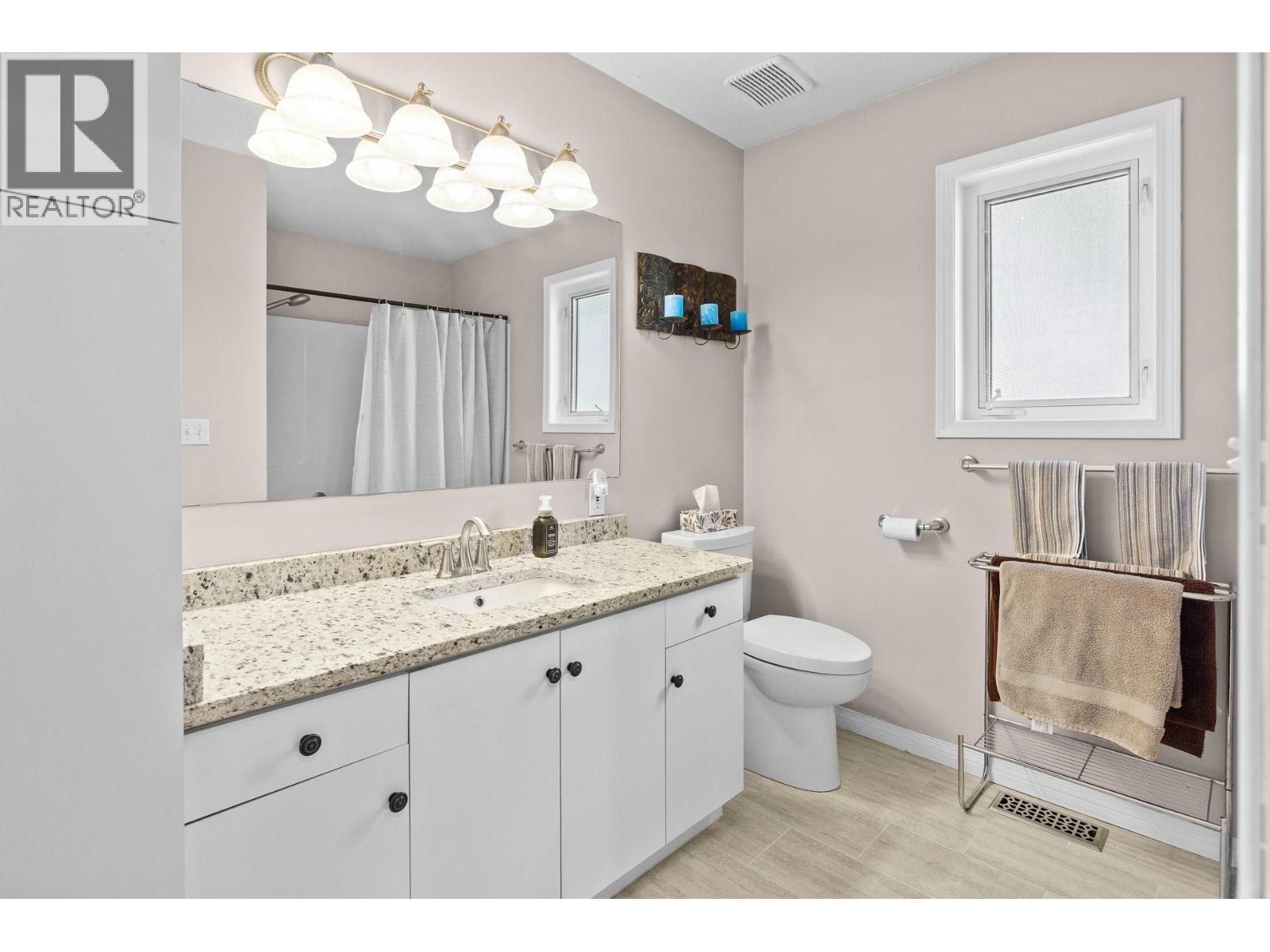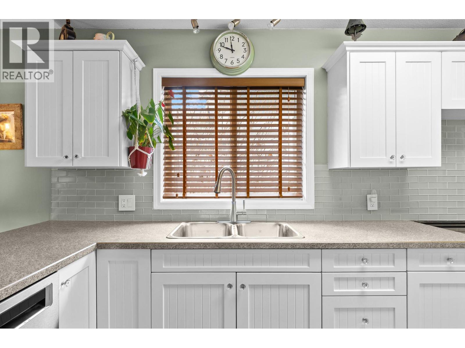 Welcome to this bright and inviting 1,206 sq. ft. home offering 3 bedrooms and 1.5 bathrooms, thoughtfully designed for comfortable everyday living. The spacious living room is filled with natural light from large front windows and features a stylish wall-mounted electric fireplace, creating a warm focal point. The kitchen is both functional and attractive, featuring white shaker-style cabinetry, a subway tile backsplash, stainless steel appliances, and generous counter space. Bright and open, it overlooks the dining and living areas, creating a natural connection to the main living space and making it perfect for everyday living and entertaining. The spacious primary bedroom offers a comfortable retreat with a convenient ensuite and sliding glass doors that open onto the raised back deck, creating an easy connection to the outdoor living space. The deck, also accessible from the kitchen, features sleek metal railings and overlooks a relaxing hot tub area—perfect for unwinding at the end of the day. The private backyard is beautifully finished with mature trees, attractive plantings, and low-maintenance synthetic lawn, all enclosed with privacy fencing. Two additional bedrooms provide flexible space for family, guests, or a home office. Major mechanical updates include a high-efficiency furnace, central air conditioning, and hot water on demand, all approximately three years old. The property also offers ample parking with space for an RV plus three additional vehicles. (id:21321)