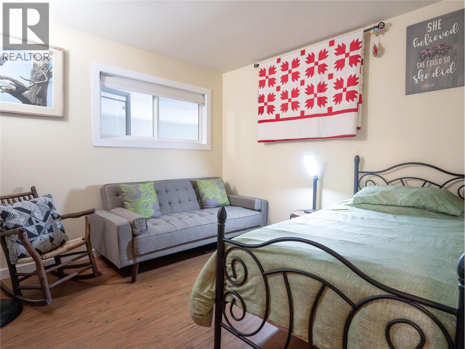 Charming 5-bedroom, 2-bath home on a large corner lot with a fenced yard—perfect for gardeners! The main level offers a bright living room with wood burning fireplace, open-concept dining & kitchen, 3 bedrooms, and a full bath. The fully renovated lower level is a legal, profitable short-term rental suite with a new kitchen, 2 bedrooms, full bath, and updated finishes including flooring, paint, and appliances. Recent updates also include new windows, an updated electrical panel, and a new torch-on roof. Centrally located near shopping and schools, with R4-L zoning offering potential for a future carriage home. Ready for its next family - contact listing agent for more information. (id:21321)