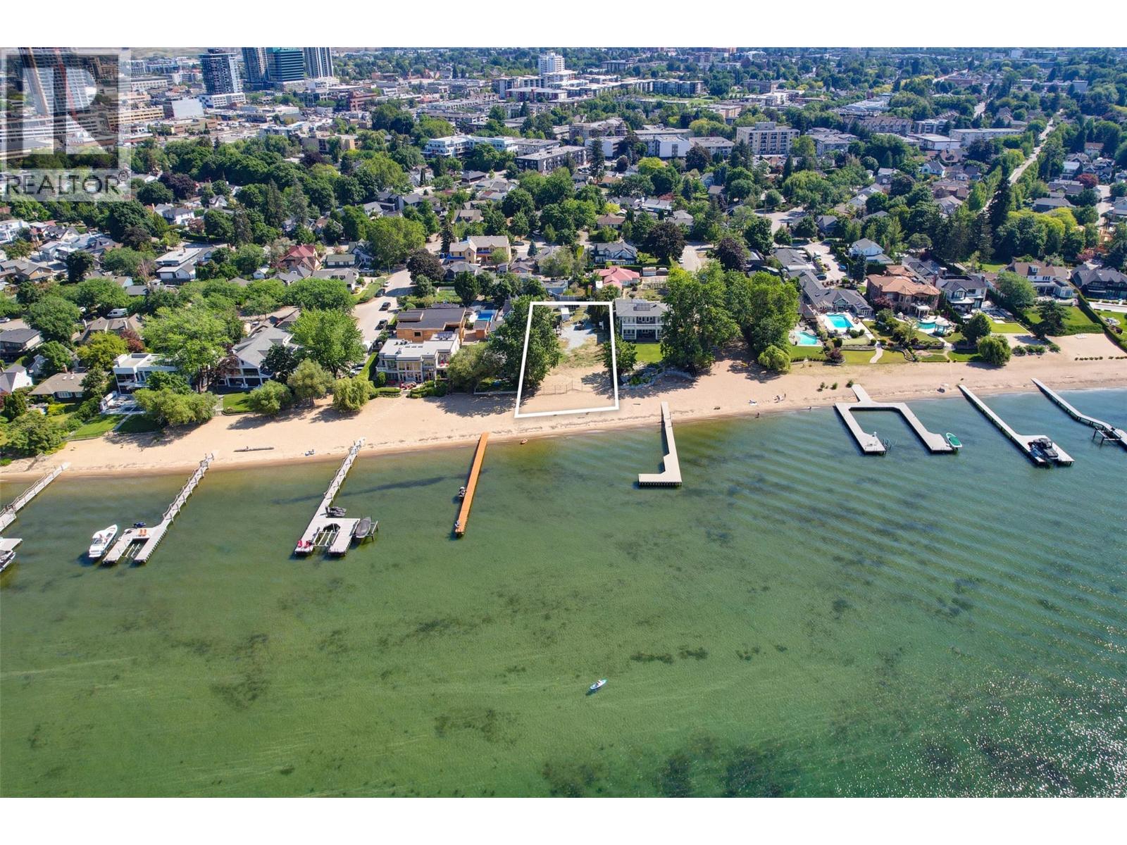 Considered to be one of the most desirable lakeshore properties on Okanagan Lake this rare 0.44-acre vacant lakeshore lot is nestled in one of Kelowna’s most prestigious iconic neighborhoods secluded just off the coveted Abbott Street corridor. This 19,000+ sq ft parcel is a vacant blank canvas to build your vision for your family’s legacy dream home. With almost 88 feet of level, expansive natural sand beach, an unobstructed South-West exposure, you can enjoy stunning sunsets and direct access to the crystal waters of Okanagan Lake. This wide lot provides ample room for a large dock, accommodating multiple boats, entertaining guests, swimming, and beach activities. Perfect for lakeside entertainment! Whether you envision a luxurious private estate with historic architecture or a modern contemporary masterpiece – the possibilities are endless! Ideally located just a short stroll to Kelowna’s City Park and vibrant downtown core - boutique shopping, galleries, casual and fine dining, cultural districts, and Kelowna General Hospital. Proximity to World-class wineries, orchards, golf courses, the University of British Columbia Okanagan, and Kelowna International Airport. This iconic property offers a rare fusion of lakeside serenity and convenience blending natural beauty with a vibrant four-season lifestyle in the heart of the Okanagan Valley. The property may allow for up to four dwellings under the new Provincial density regulations and is free from Canada’s foreign buyer ban. (id:21321)
