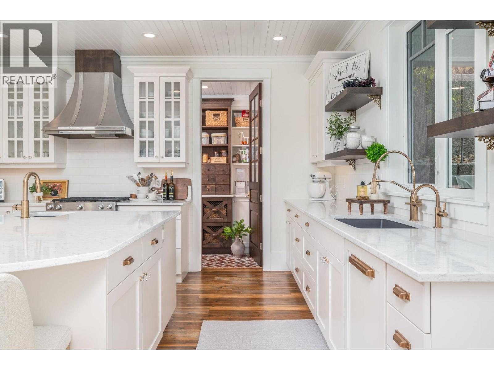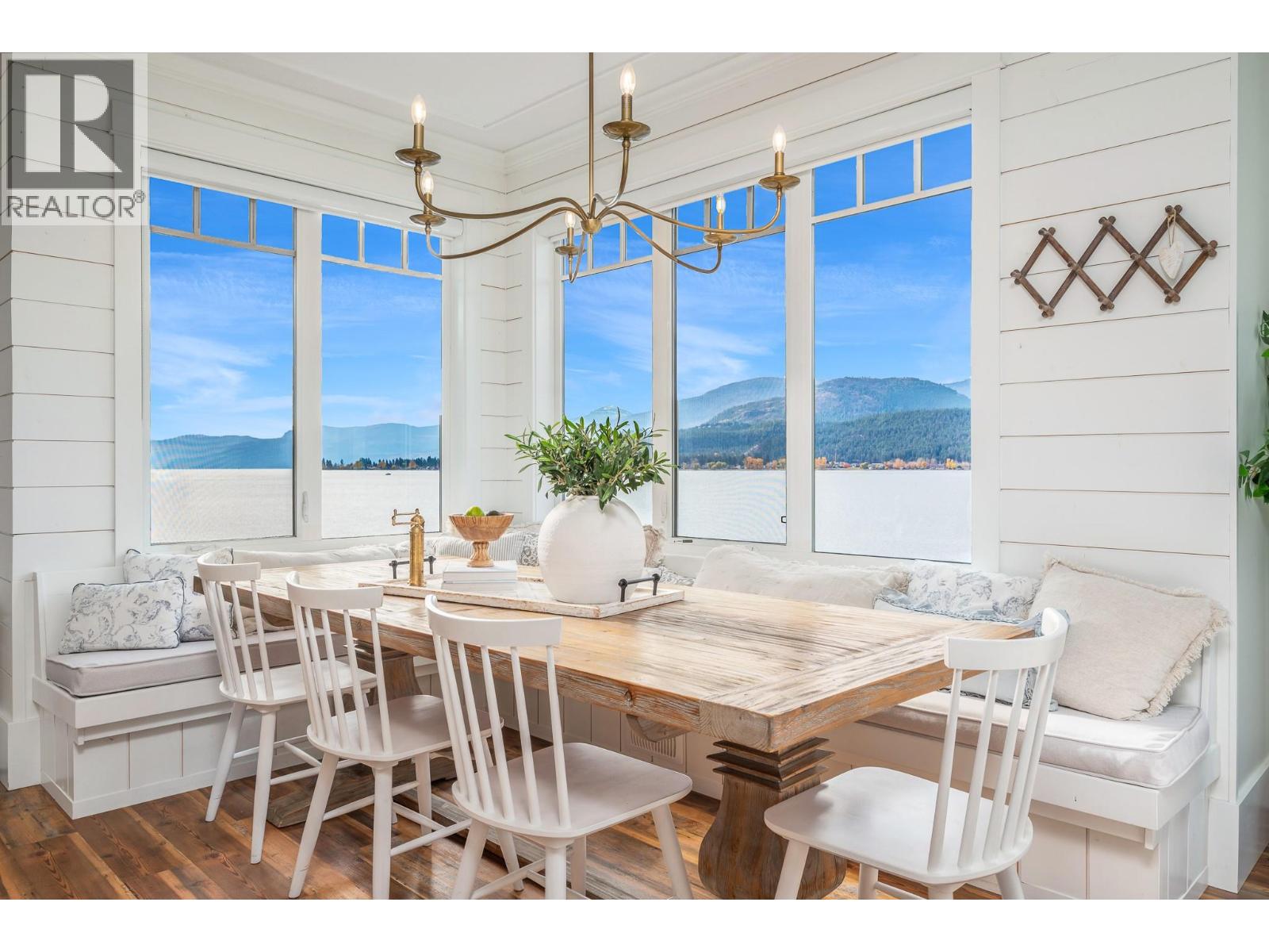 Set on the shimmering shores of Okanagan Lake, this immaculate 5-bedroom, 4.5-bath home defines Luxury Lakeside Living. Tucked within a private gated community, this designer-inspired residence captures the perfect balance of sophistication and ease. Every space reflects thoughtful collaboration between the homeowner and designer—resulting in a home where modern style meets effortless lakefront comfort. The gourmet kitchen is a chef’s dream with quartz countertops, stainless appliances, a beautiful butler’s pantry, and abundant storage. Expansive windows span the entire main floor, framing panoramic lake views from the dining, kitchen, and living areas. Built-in cabinetry and soft neutral tones enhance the home’s light and airy design. The primary suite is a serene retreat overlooking the lake, complete with a spa-inspired ensuite featuring a double vanity, glass shower, and soaker tub, plus a custom walk-in closet. Outside, enjoy a lakeside setting designed for entertaining. Built-in LED lighting accents the exterior and dock, creating a stunning nighttime ambiance. The new synthetic plank dock includes both boat and Seadoo lifts—ready for your Okanagan Lake lifestyle. (id:21321)