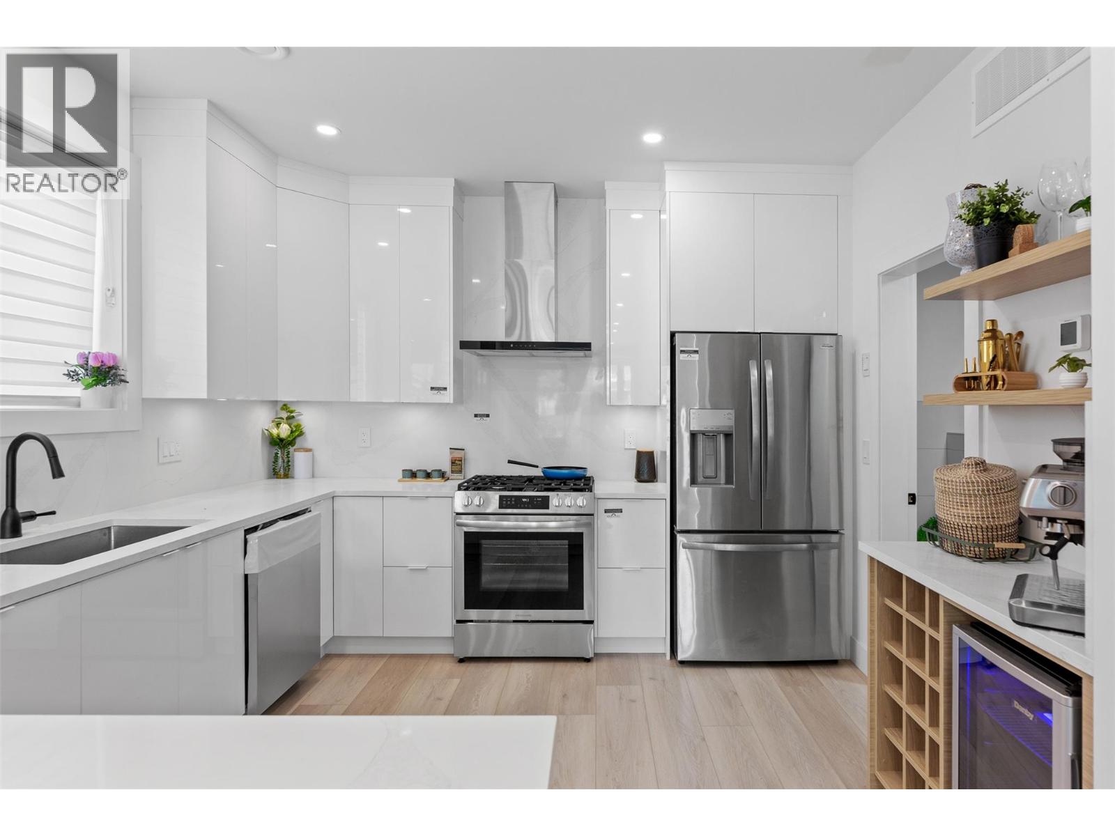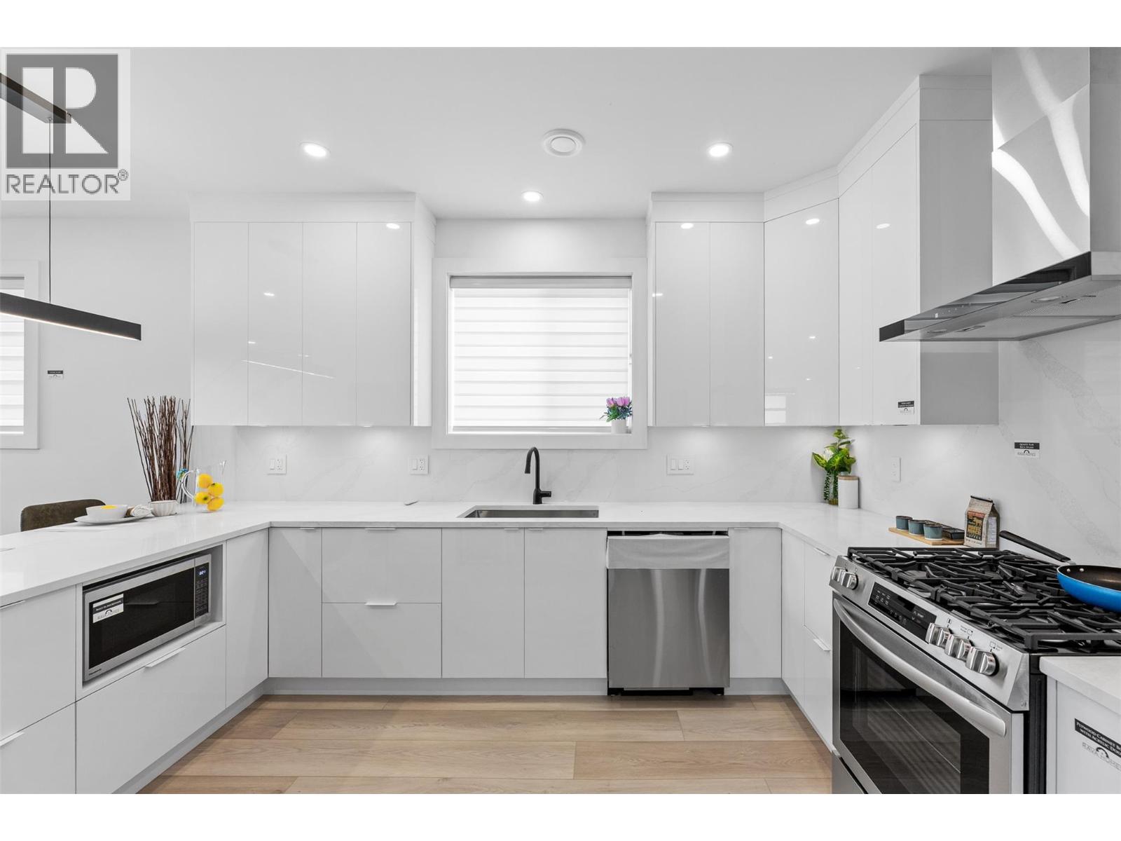 ** LAST UNIT AVAILABLE / QUICK POSSESSION AVAILABLE ** WELCOME TO 787 LAWSON!. Another beautiful build brought to you by SNG & RAVA Homes. Come check out this sleek modern design located just steps to the downtown Core, Casino, restaurants and Okanagan Lake. As you step into this quality built 3-bedroom, 3 bathroom home you will be greeted with a large and bright open floor plan. This first floor offers large windows, fireplace, living room beautiful kitchen, guest bathroom and laundry/pantry. The kitchen offers SS appliance, energy efficient heat pump solid slab quartz back splash with matching counters, large to ceiling quality wood cabinets with soft close drawers, all sitting on 100% high quality waterproof flooring. Upstairs features 2 spare bedrooms, full guest bathroom, large master suite with a 3-piece ensuite. Other great features include, vaulted ceilings throughout the upper floor, Central air, single car garage w/ storage, electric car charger roughed in, gas range, bright sky lights, second floor balconies, custom blinds throughout, security cameras and glass railings on main level. GST Applicable. Hurry and call your Realtor now! ***SHOW SUITE NOW OPEN EVERY SATURDAY & SUNDAY 12-2 *** (id:21321)