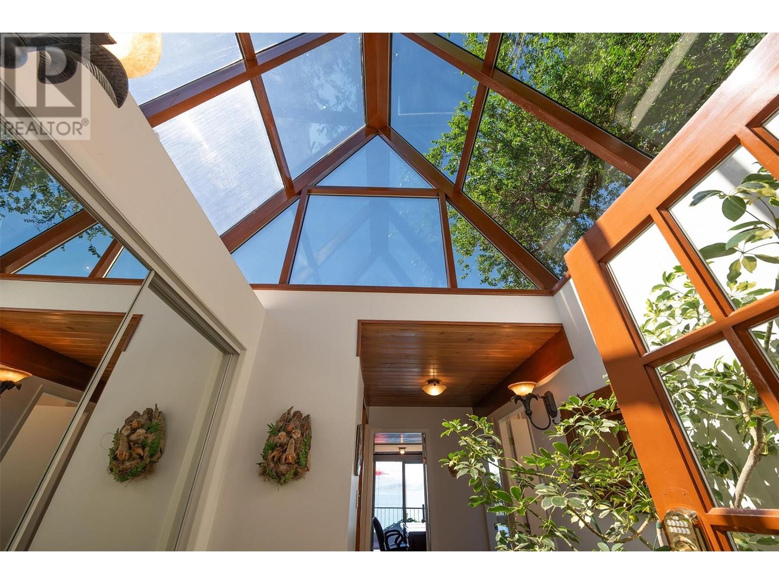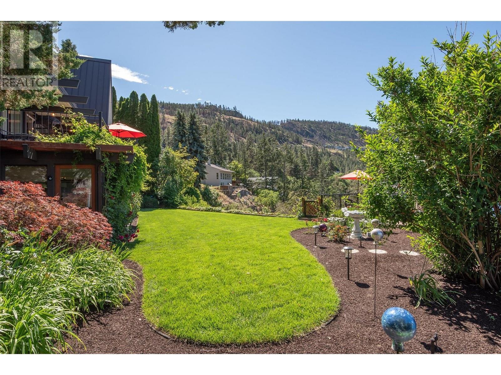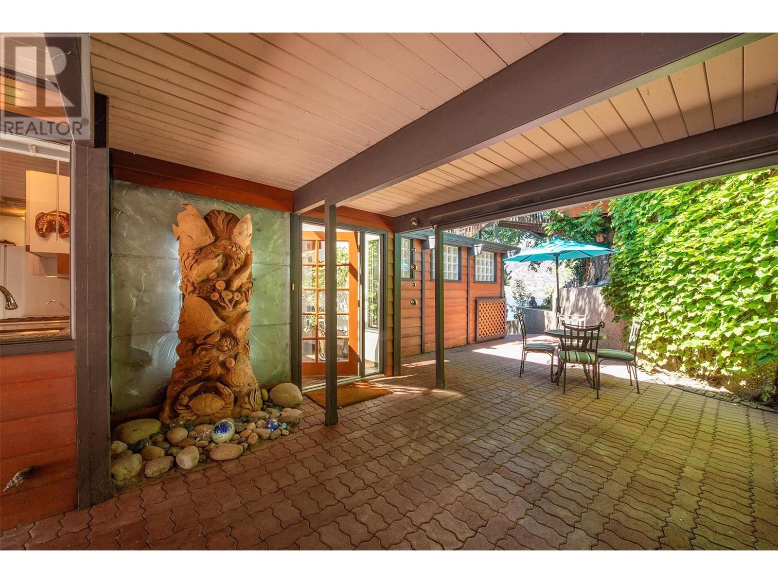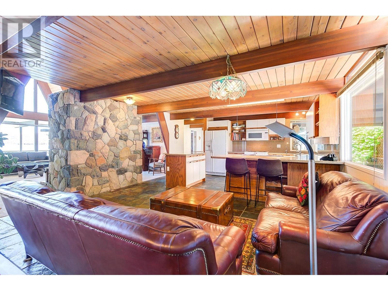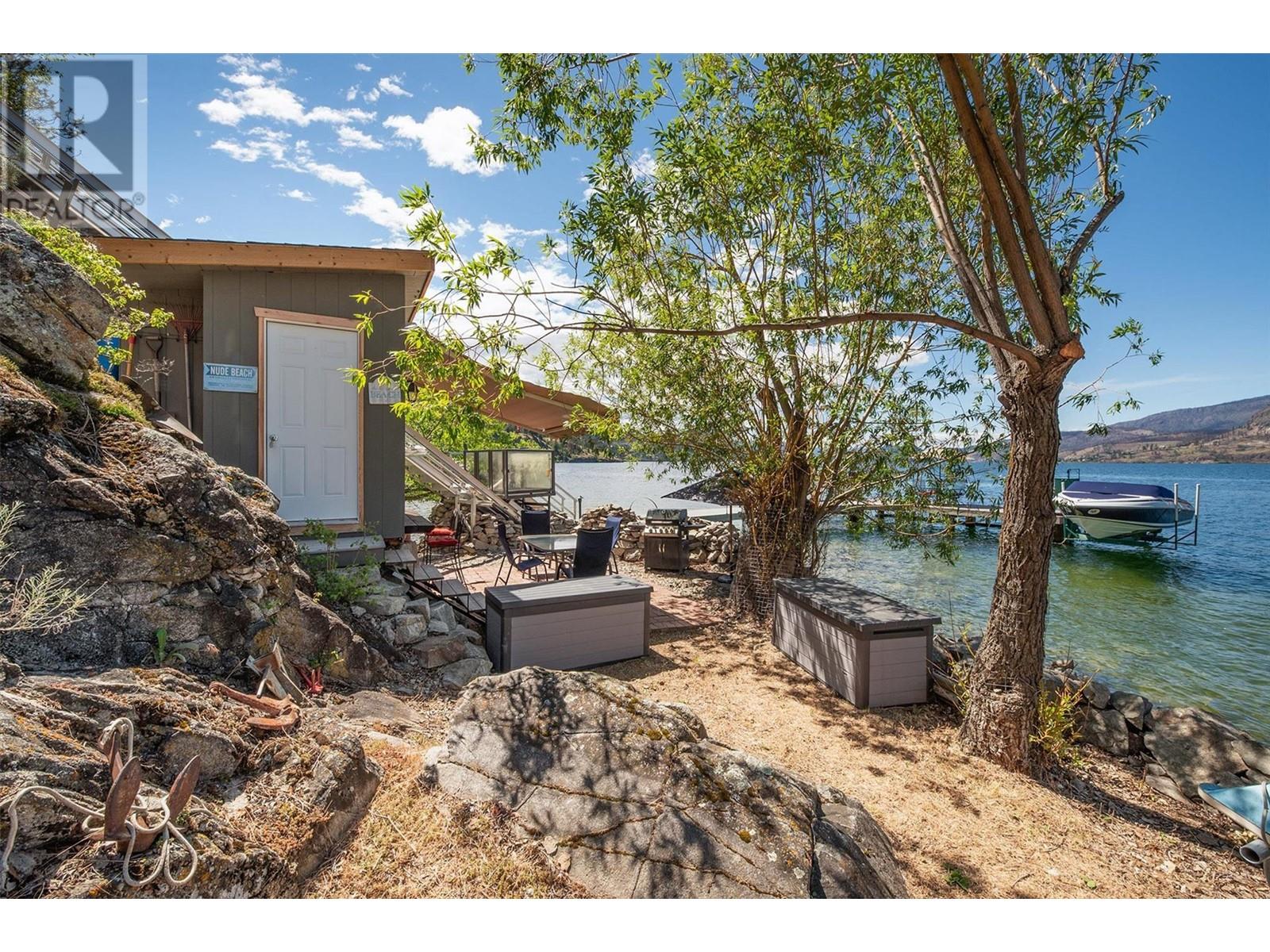 Nestled above the shores of Okanagan Lake, this timeless 4-bedroom A-frame retreat exudes vintage charm and offers one of the best vantage points on Okanagan Lake. With southern exposure, the iconic A-frame architecture features expansive windows that flood the home with unbelievable lake & mountain views. This 2-level abode provides easy main-floor living, featuring a lake-view primary bedroom, ample space in the kitchen/dining area for entertaining, a lake-view patio, & a cozy living room with a charming stone fireplace, allowing you to relax below the soaring ceilings & bask in the endless vistas. The walkout lower level houses 2 guest bedrooms, a family room, & a sunroom, all opening to the beautiful outdoor living spaces. Outside, discover manicured gardens, water feature, a hot tub, & multiple deck platforms. For effortless trips to the water, a tram takes you down to the beach to the private dock with dual lifts. Enjoy a convenient lakeside storage outbuilding & a BBQ/lounge area. Sprinkled around the property are adorable outbuildings, each with its own unique character: a craft cabana, a nostalgic treehouse, & a hillside den carved into the landscape...it truly feels like a fairytale! The property also offers lots of parking & a massive 23' x 40'9 ft detached garage with over height 12 ft doors – park your RV or boat inside for the off-season! Whether you are seeking a year-round residence or a seasonal getaway, this property promises peace, joy & endless adventures. (id:21321)