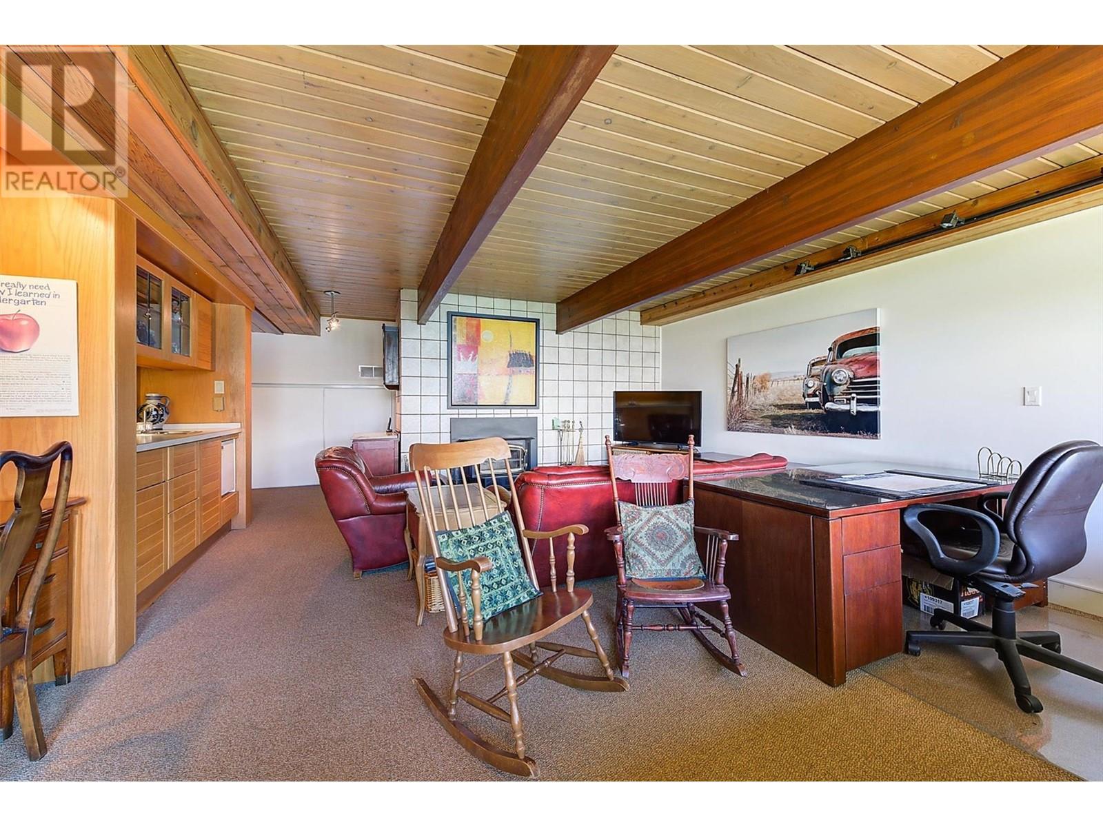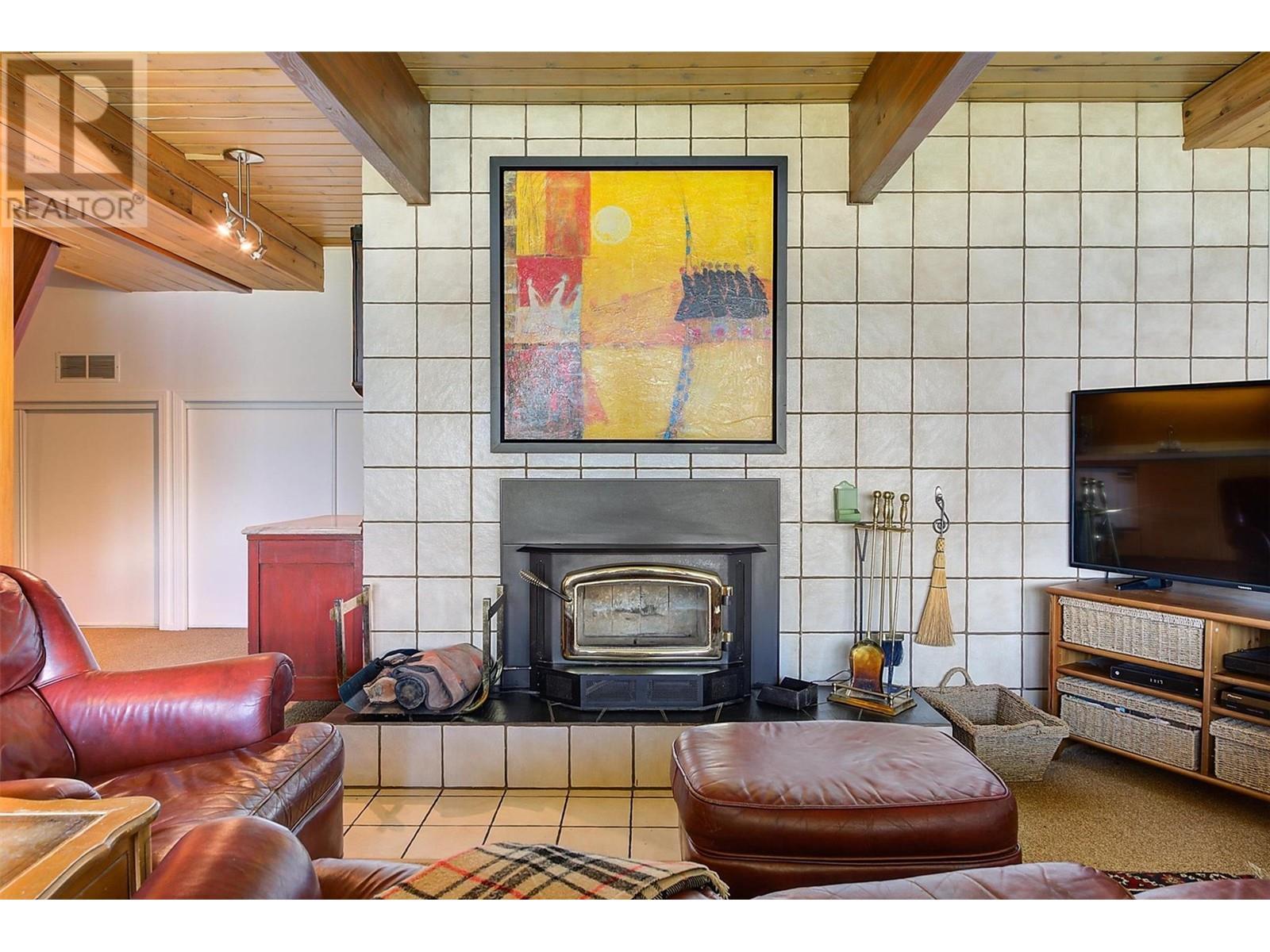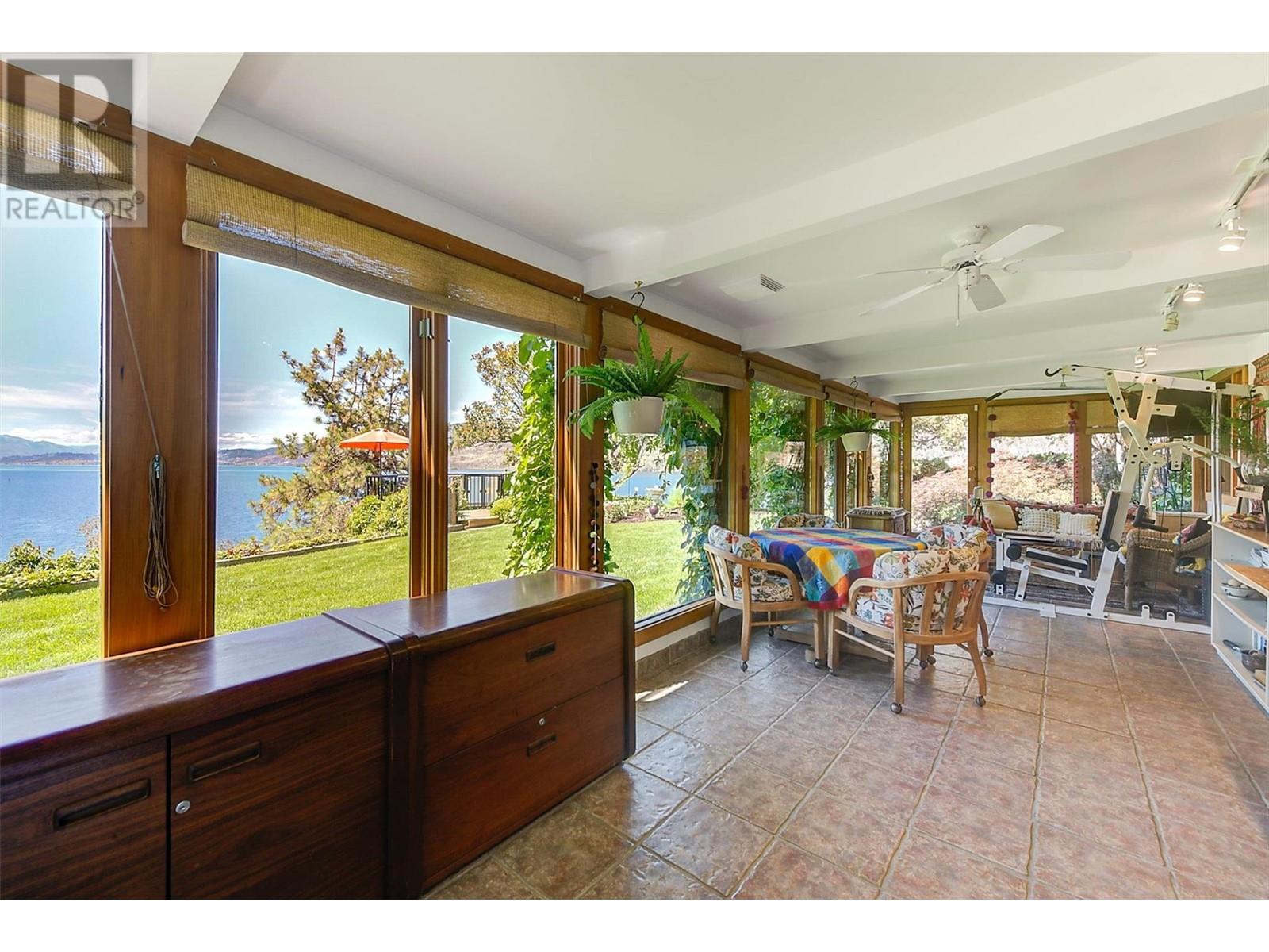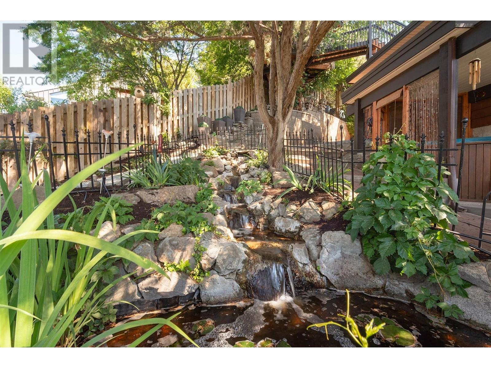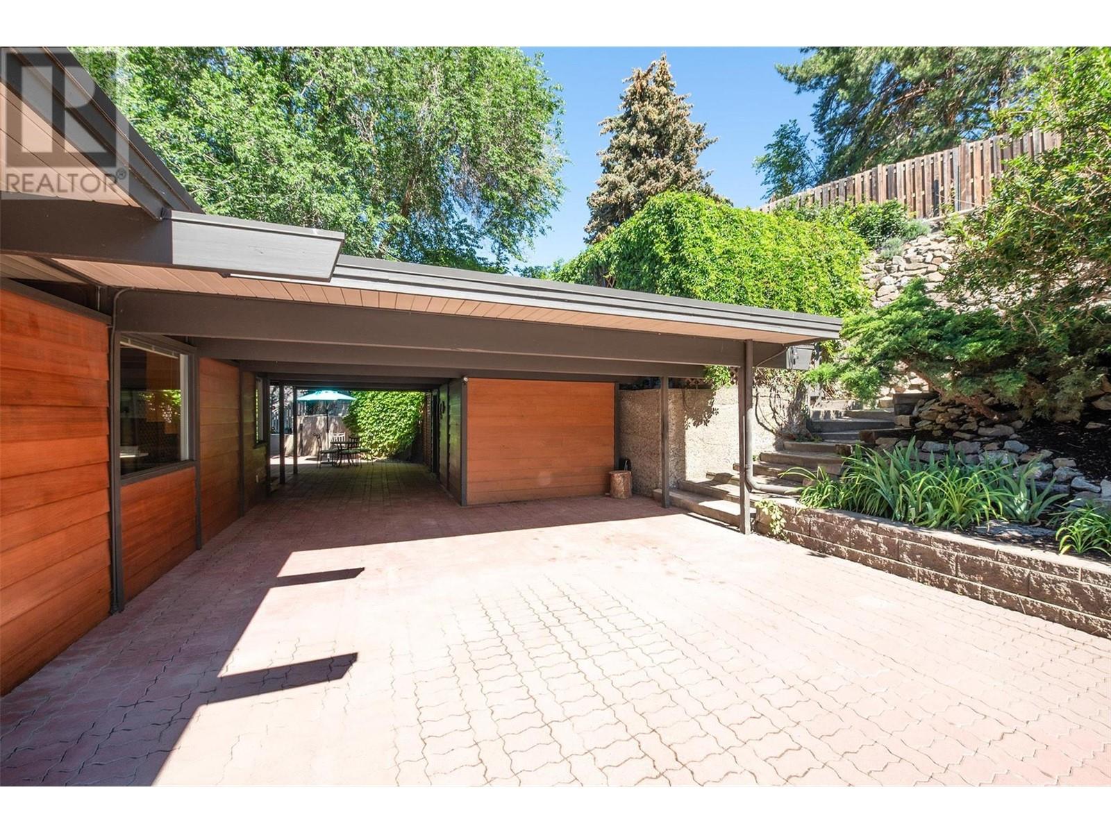 Nestled above the shores of Okanagan Lake, this timeless 4-bedroom A-frame retreat exudes vintage charm and offers one of the best vantage points on Okanagan Lake. With southern exposure, the iconic A-frame architecture features expansive windows that flood the home with unbelievable lake & mountain views. This 2-level abode provides easy main-floor living, featuring a lake-view primary bedroom, ample space in the kitchen/dining area for entertaining, a lake-view patio, & a cozy living room with a charming stone fireplace, allowing you to relax below the soaring ceilings & bask in the endless vistas. The walkout lower level houses 2 guest bedrooms, a family room, & a sunroom, all opening to the beautiful outdoor living spaces. Outside, discover manicured gardens, water feature, a hot tub, & multiple deck platforms. For effortless trips to the water, a tram takes you down to the beach to the private dock with dual lifts. Enjoy a convenient lakeside storage outbuilding & a BBQ/lounge area. Sprinkled around the property are adorable outbuildings, each with its own unique character: a craft cabana, a nostalgic treehouse, & a hillside den carved into the landscape...it truly feels like a fairytale! The property also offers lots of parking & a massive 23' x 40'9 ft detached garage with over height 12 ft doors – park your RV or boat inside for the off-season! Whether you are seeking a year-round residence or a seasonal getaway, this property promises peace, joy & endless adventures. (id:21321)