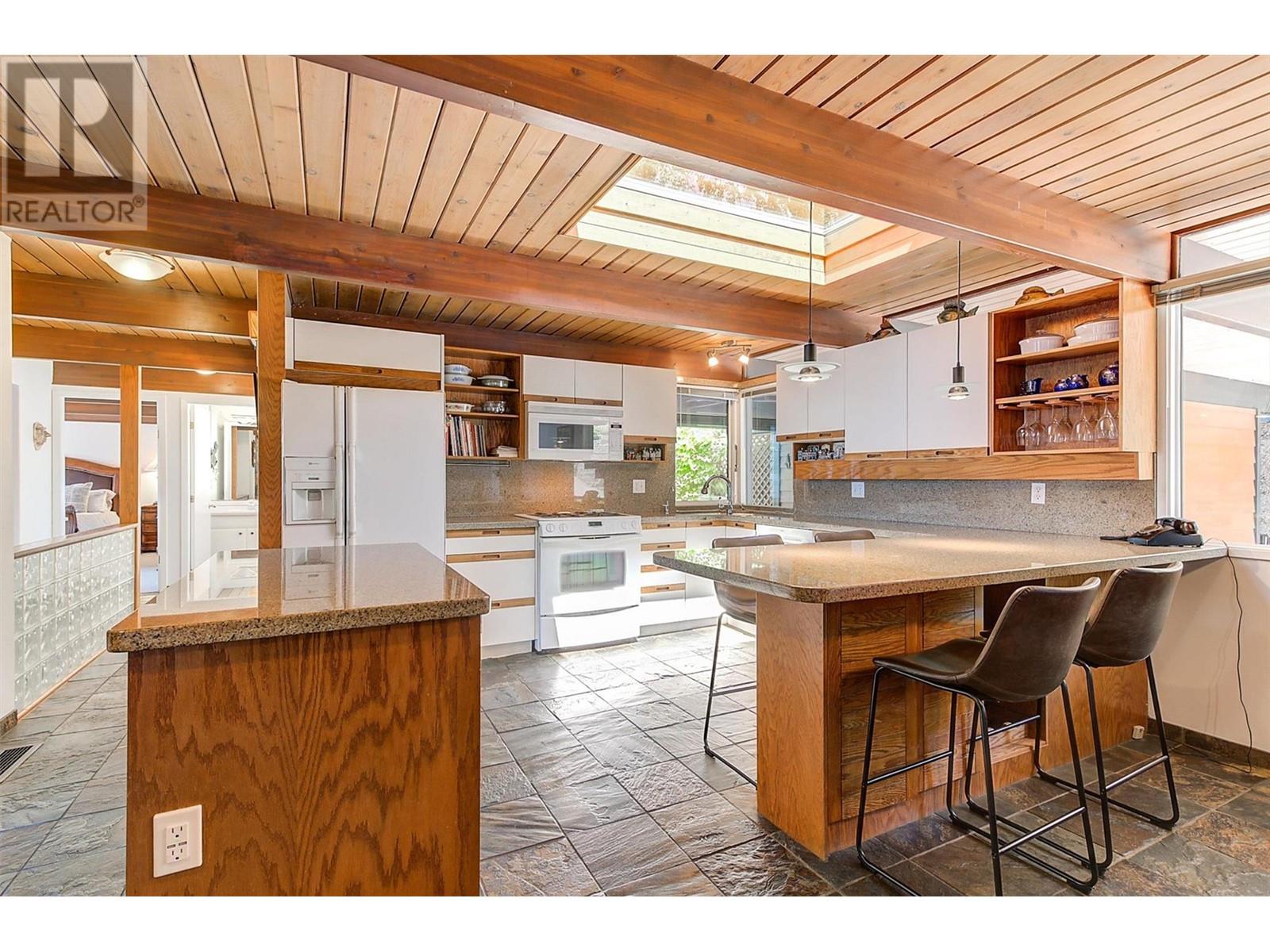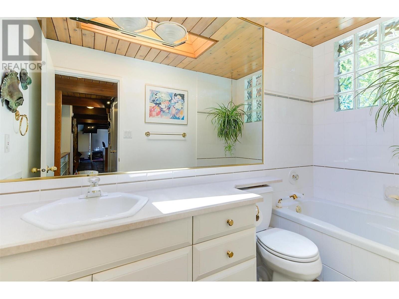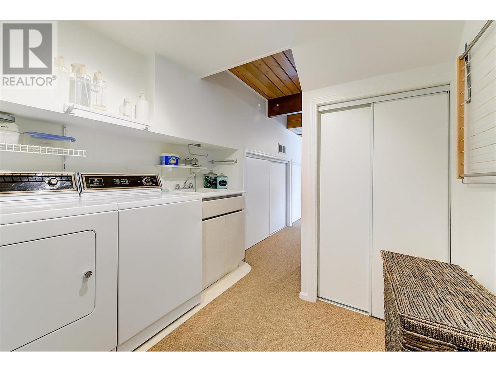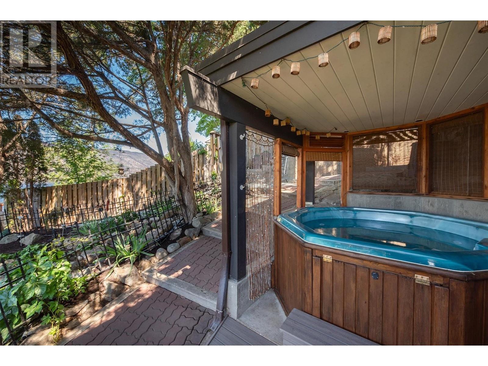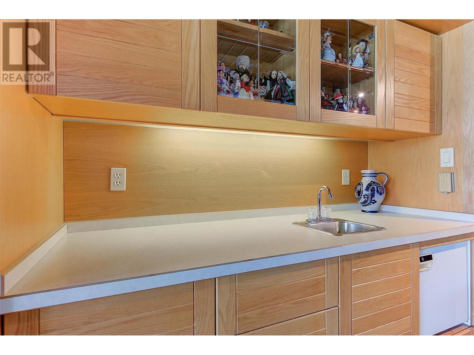 Nestled above the shores of Okanagan Lake, this timeless 4-bedroom A-frame retreat exudes vintage charm and offers one of the best vantage points on Okanagan Lake. With southern exposure, the iconic A-frame architecture features expansive windows that flood the home with unbelievable lake & mountain views. This 2-level abode provides easy main-floor living, featuring a lake-view primary bedroom, ample space in the kitchen/dining area for entertaining, a lake-view patio, & a cozy living room with a charming stone fireplace, allowing you to relax below the soaring ceilings & bask in the endless vistas. The walkout lower level houses 2 guest bedrooms, a family room, & a sunroom, all opening to the beautiful outdoor living spaces. Outside, discover manicured gardens, water feature, a hot tub, & multiple deck platforms. For effortless trips to the water, a tram takes you down to the beach to the private dock with dual lifts. Enjoy a convenient lakeside storage outbuilding & a BBQ/lounge area. Sprinkled around the property are adorable outbuildings, each with its own unique character: a craft cabana, a nostalgic treehouse, & a hillside den carved into the landscape...it truly feels like a fairytale! The property also offers lots of parking & a massive 23' x 40'9 ft detached garage with over height 12 ft doors – park your RV or boat inside for the off-season! Whether you are seeking a year-round residence or a seasonal getaway, this property promises peace, joy & endless adventures. (id:21321)