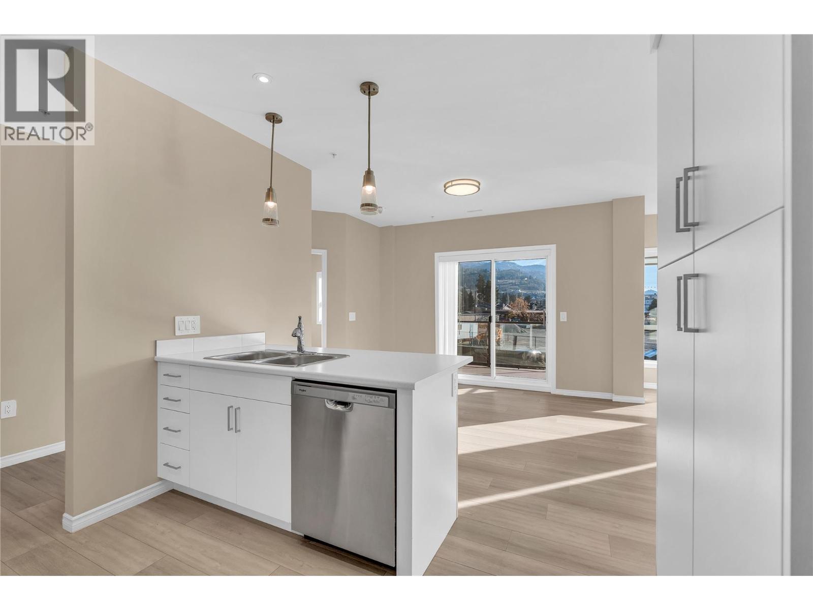 Welcome to Skaha Lake Towers – the lowest and best priced unit in this development for investors and buyers alike. This unit is in a modern steel-and-concrete building less than two years old and ideally located just a few blocks from Skaha Lake, beaches, and nearby parks. This thoughtfully designed 2-bedroom, 2-bathroom plus den home offers comfortable living space with a desirable south-facing layout. The bright, open-concept floor plan is perfect for both everyday living and entertaining, featuring a spacious kitchen with a large island and generous cabinetry. Large windows and outdoor spaces allow you to take in beautiful views. Two decks extend your living area, including one with a natural gas BBQ hookup—ideal for relaxing or dining outdoors. Additional features include a cozy gas fireplace, gas on-demand hot water, and efficient forced-air heating and cooling. Each unit comes complete with a dedicated parking stall, storage locker, window coverings, and all six appliances. Enjoy the convenience of walking to the lake, beaches, restaurants, and parks, with schools and shopping just minutes away. This is low-maintenance, modern living in one of Penticton’s most desirable locations. (id:21321)