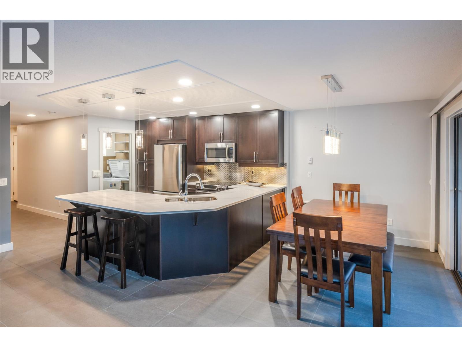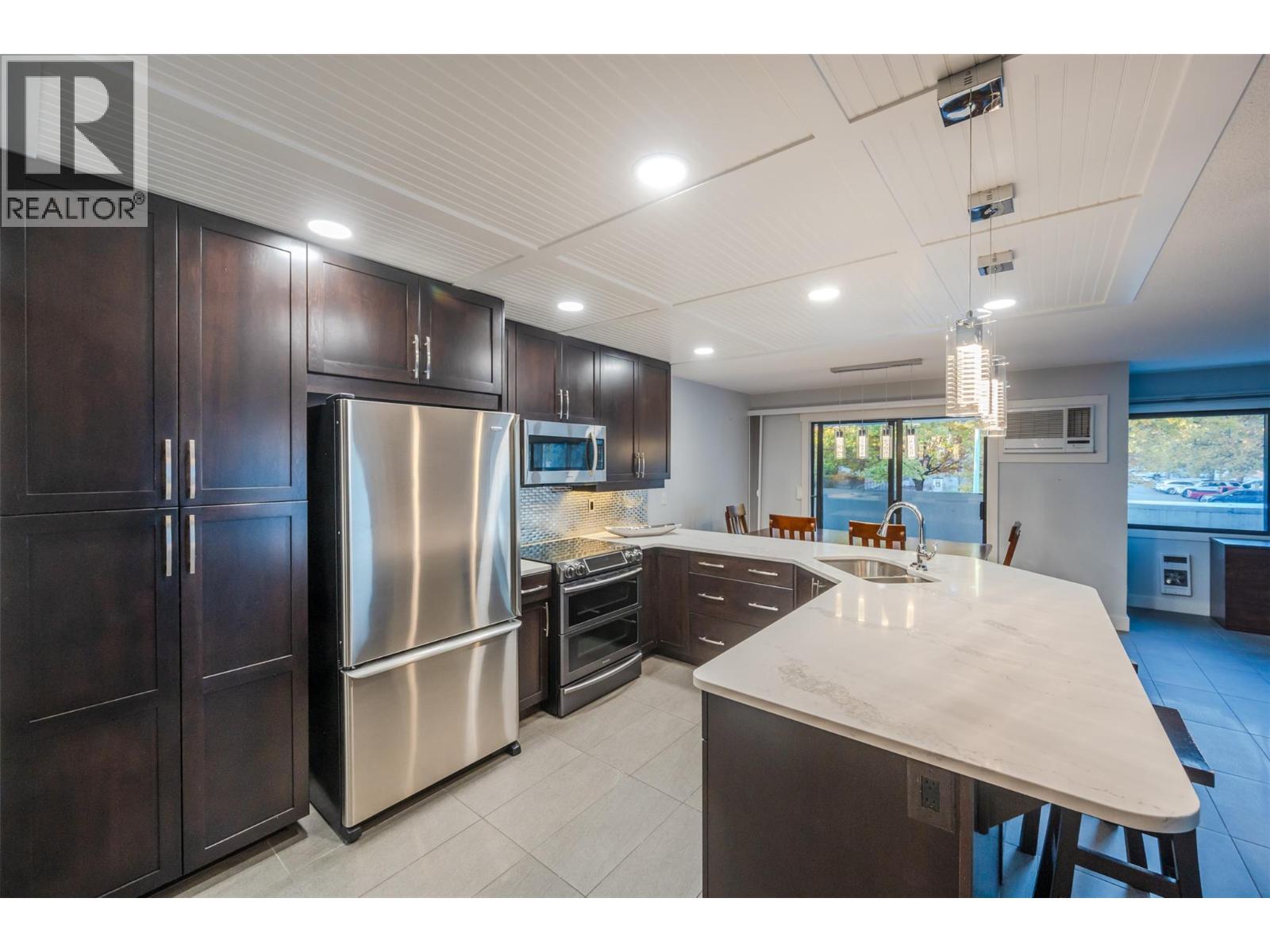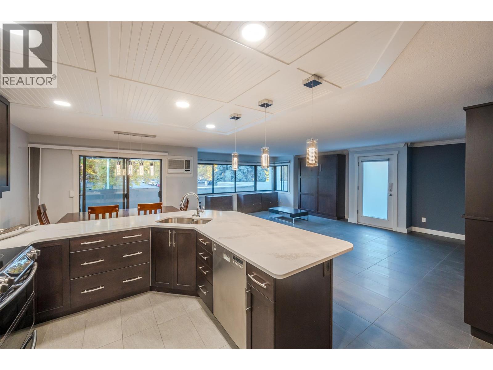 Experience downtown Kelowna living at its finest in this fully renovated 2-bedroom, 2-bath condo featuring an impressive 800 sq ft of private patio space. The open-concept layout offers a bright and stylish living area with an electric fireplace, a covered deck off the dining room, and patio access from both the living room and primary suite. The primary bedroom boasts heated floors and a 3pc ensuite, while the spacious 4pc main bath and laundry room with extra storage add everyday convenience. Enjoy top-notch building amenities including an outdoor pool, party room, exercise room, bike storage, and storage lockers—plus two underground parking spaces. All this just steps from the shops, restaurants, and entertainment of vibrant downtown Kelowna. Contact the listing agent to view! (id:21321)