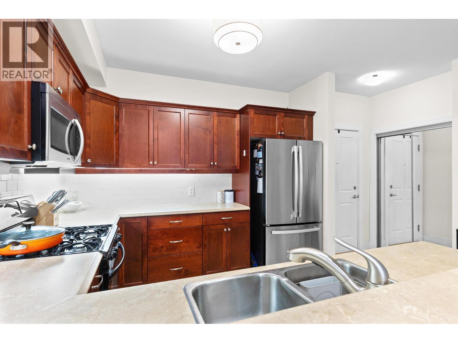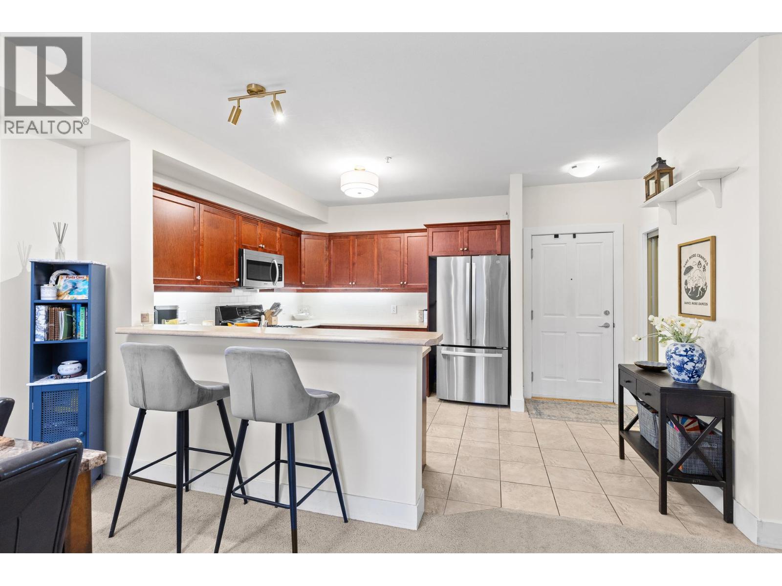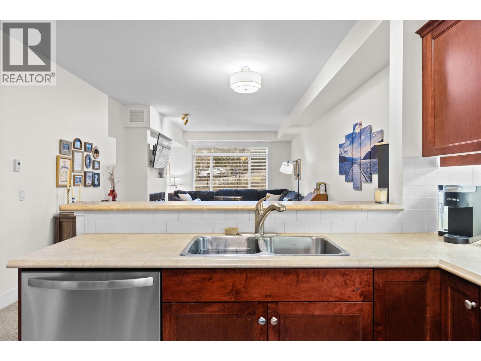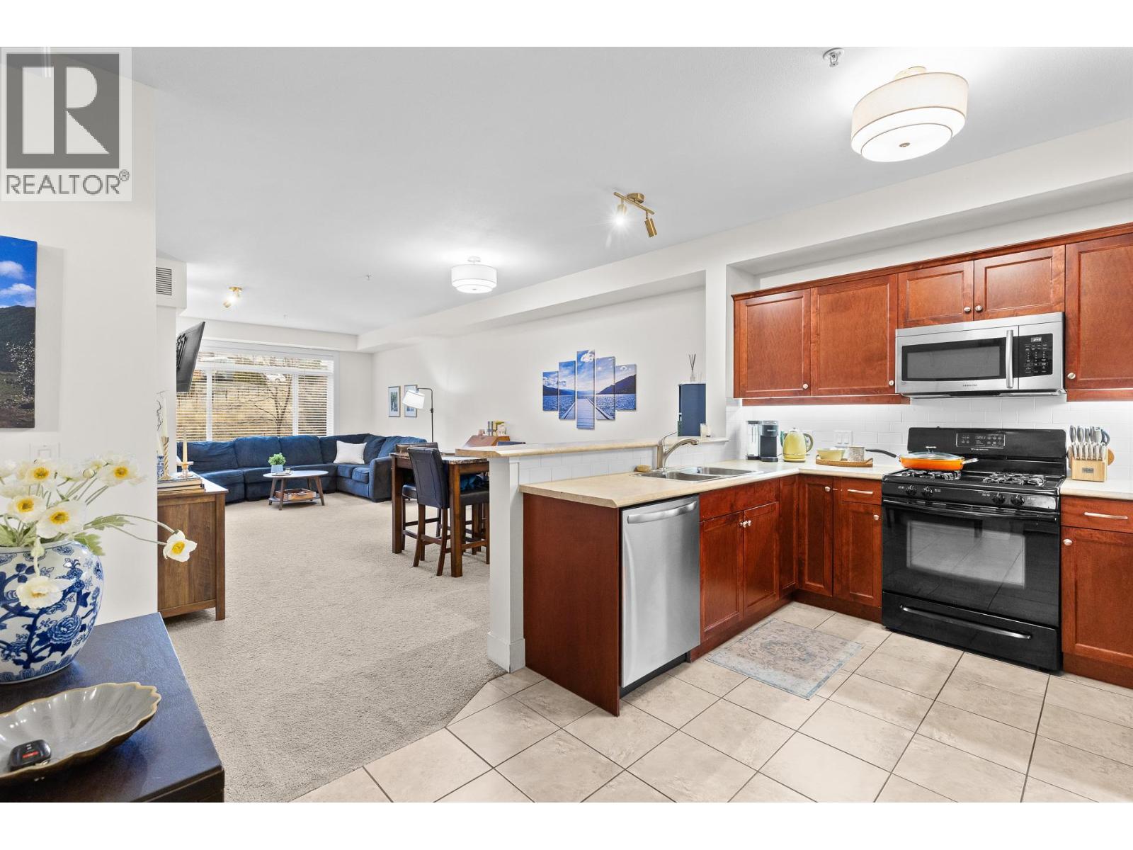 Winterra at The Lakes – Bright, Stylish Living! Welcome to this beautifully appointed 1 bedroom + 1 bathroom home in the sought-after Winterra at The Lakes development. Enjoy southeast peaceful views of greenspace, filling the home with natural light throughout the day. The spacious kitchen is a standout, featuring an abundance of shaker-style cabinetry, excellent storage, a gas range, and a convenient sit-up bar—perfect for casual dining or entertaining. The open living area offers a cozy gas fireplace and a large picture window, creating a warm and inviting space. Step out onto the balcony with a gas BBQ hookup to relax and enjoy the good life! The primary bedroom provides a calm, private escape with ample space and functionality, while the stylish bathroom completes the home with a clean, modern feel. Forced-air heating and cooling provide year-round comfort. This unit includes 1 underground parking stall and a storage locker. Residents enjoy access to a well-equipped clubhouse with gym, meeting room, and a guest suite for visiting friends and family. Large dogs are welcome, making this a fantastic option for pet lovers. A smart investment and an even better place to live!! (id:21321)