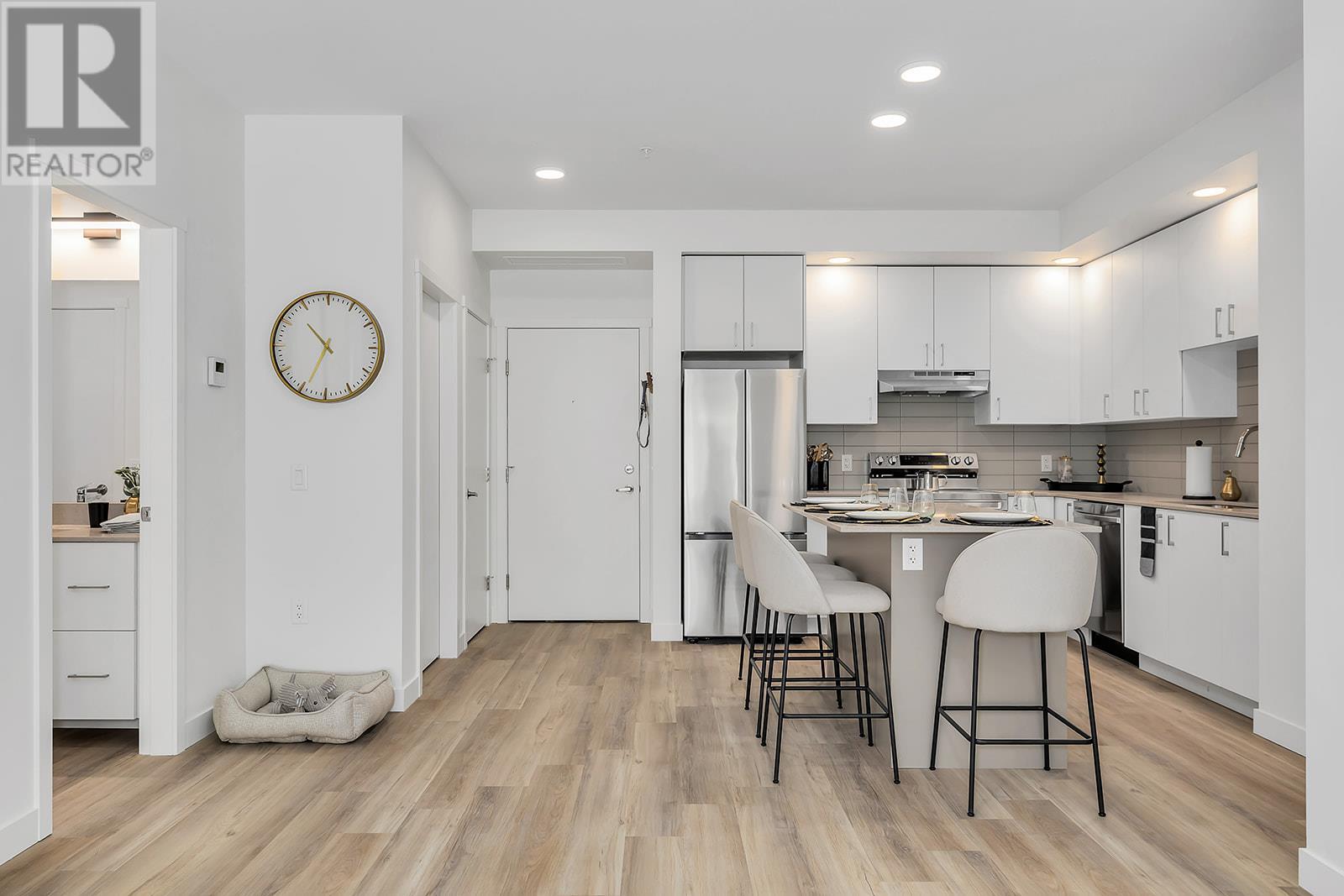 Upper Mission’s first condo community, Ascent, is redefining elevated living. This spacious 2-bedroom, 2-bathroom home showcases a contemporary interior design and high-end finishes. Inside, the kitchen features a quartz island with bar seating, stainless steel appliances, soft-close cabinets with luxury hardware, and a subway tile backsplash. With plenty of windows and 9ft ceilings, the home feels bright and open. The kitchen seamlessly flows into the separate living and dining areas, which lead to your own private patio. The primary bedroom includes a walk-in closet and an ensuite with a standing shower and quartz counters. The second bedroom offers a pass-through closet with access to a full bathroom and tub. The oversized laundry room is equipped with energy-star-rated appliances and has plenty of storage space. Living at Ascent means enjoying access to the community clubhouse, complete with a gym, games area, kitchen, patio, and more. Located in the highly sought-after Upper Mission, Ascent is just steps from Mission Village at The Ponds, with public transit, hiking and biking trails, wineries, and the beach all just minutes away. Feel the Highstreet difference with this Carbon-Free Home that comes with double warranty, adheres to the highest BC Energy Step Code standards, and features built-in leak detection for peace of mind. Plus, it’s PTT-exempt for extra savings! Photos are of a similar home.