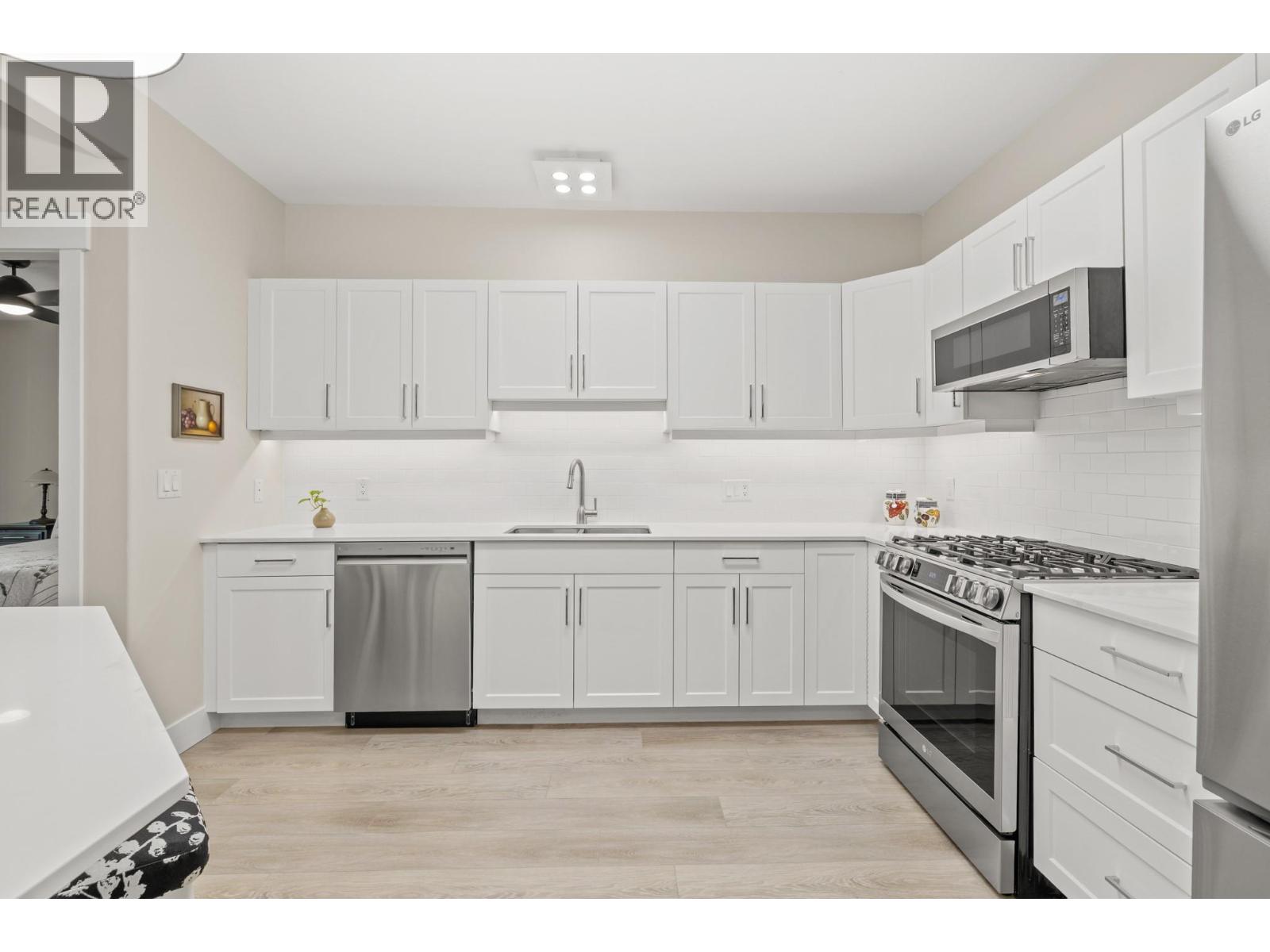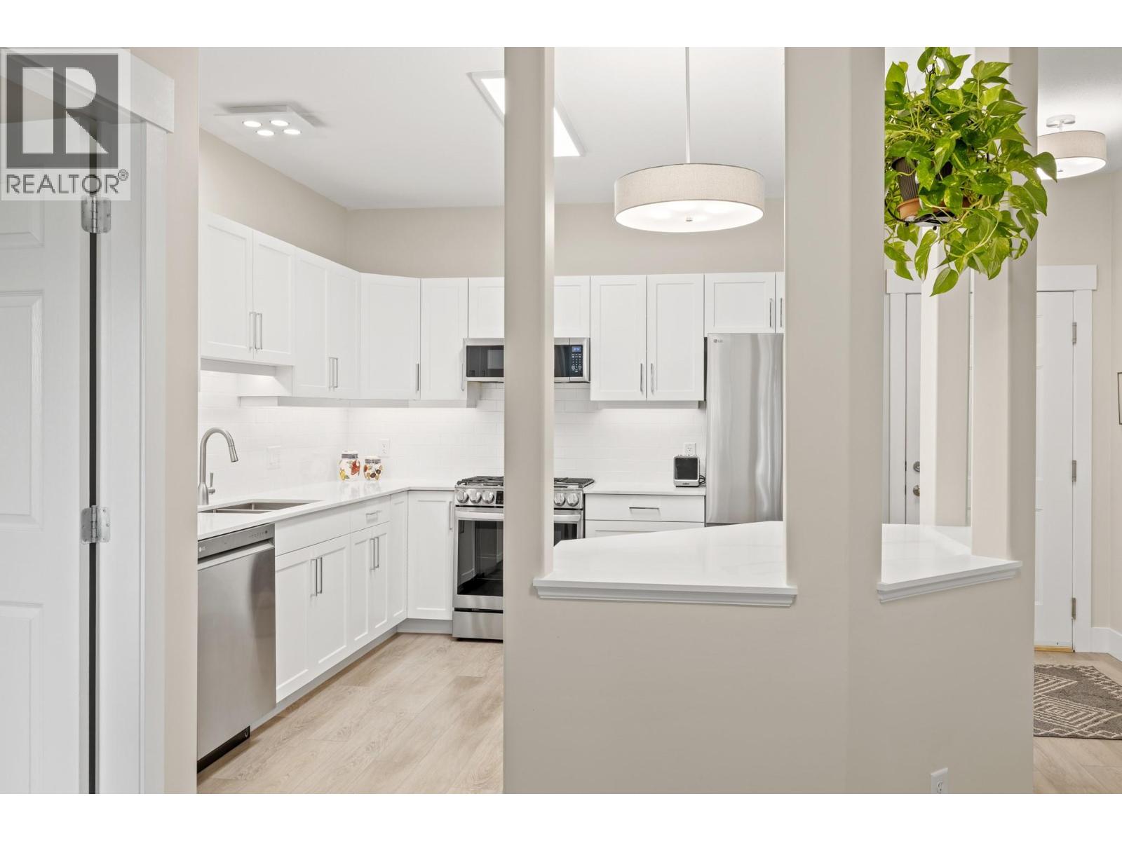 Bright and spacious 2-bedroom, 2-bathroom condo featuring a desirable split-bedroom layout and open-concept design. Enjoy abundant natural light from large windows, a modern kitchen with stainless steel appliances including a gas range, and a cozy gas fireplace in the main living area. Each bedroom offers its own private covered patio—perfect for morning coffee or quiet relaxation. Additional conveniences include in-suite laundry, one dedicated parking stall, and a storage locker. Ideally located near Okanagan College, Okanagan Lake, shopping, and recreational amenities, this well-appointed building also offers great on-site features such as a workshop and a fitness room with access to a pool table. Exterior parking first come first serve. Act fast, this unit won't last! (id:21321)