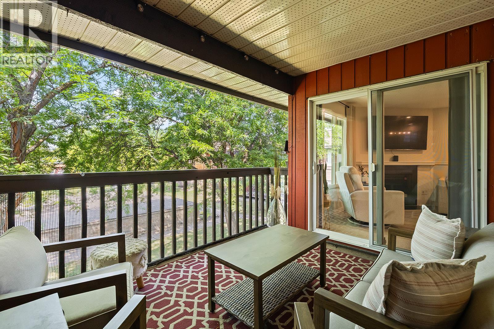 Welcome to Courtside Manor – a beautifully updated top-floor townhome in the heart of Kelowna! Perfectly positioned just steps from the Parkinson Recreation Centre and within walking distance of the lively Landmark District, this 2-bedroom, 2-bathroom stacked townhome combines comfort, convenience, and excellent value. Inside, you’ll immediately notice the warm, welcoming atmosphere and thoughtful upgrades completed in January 2023—including new flooring, paint, lighting, modernized wiring, and hardwired smoke detectors. The spacious primary suite features a 3-piece ensuite with a walk-in shower, while the second bedroom and full bath provide great versatility for guests, family, or a home office. Enjoy year-round comfort with an updated forced-air heating and cooling system, and relax outdoors on your private patio—BBQs welcome! The quiet, well-maintained building is both pet-friendly (up to two pets, 14” at the shoulder) and free of age restrictions. Additional highlights include a large private storage locker (8’ x 5’ x 6'8”), newer energy-efficient windows in the primary bedroom and kitchen, exterior motion sensor lighting, and a location just steps from major transit routes. Move-in ready and centrally located, this home offers a low-maintenance lifestyle in one of Kelowna’s most convenient neighbourhoods—a perfect place to call home! (id:21321)
