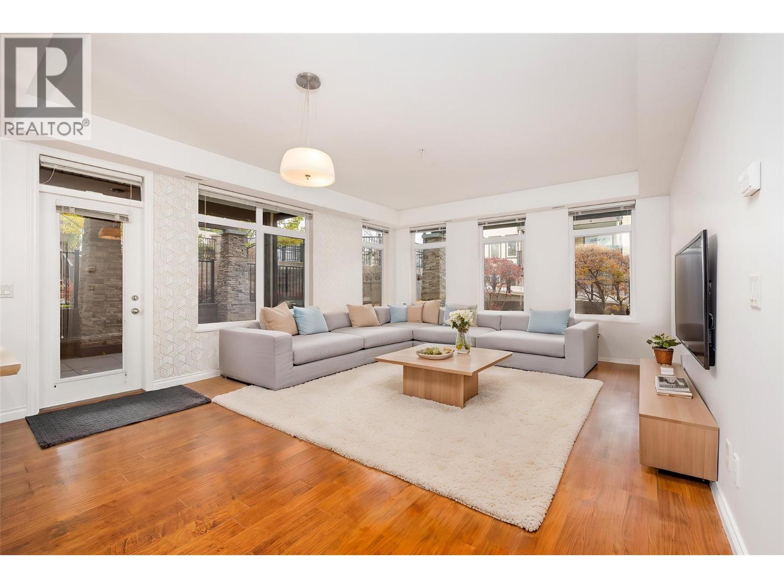 Experience the best of West Kelowna living in this beautiful ground-level corner suite at MiraVista. This 1122 sqft apartment is thoughtfully designed with 2 bdrms, 2 bath & features two large private patios with streetside entry, perfect for bringing in groceries or greeting guests! Sunlight floods the living room through 2 walls of windows, highlighting the elegant engineered hardwood floors & sophisticated tray ceiling. The open concept kitchen features granite countertops, stainless steel appliances, updated light fixtures & spacious sit-up bar - ideal for casual dining & entertaining. A functional split bdrm design creates privacy for both bdrms. The king-size primary retreat opens to the covered patio & features a walk-through closet and 3-piece ensuite. The 2nd cozy bedroom sits on the opposite side of the condo conveniently next to a full 4-piece bath. Additional features of this home include: In-suite laundry with a new Frigidaire Quiet Pack stacked w/d (2024), a spacious foyer with coat closet & thoughtfully designed storage throughout the suite keeps your space organized & clutter-free, enhancing everyday living MiraVista is know for its exceptional amenities, including secure parking, an outdoor pool and hot tub, workshop, rentable amenity room for gatherings and a guest suite. This is truly the BEST of West Kelowna, you are literally steps to Crown & Thieves Winery, amazing hiking trails, the aquatic centre, groceries shopping, restaurants & more! (id:21321)