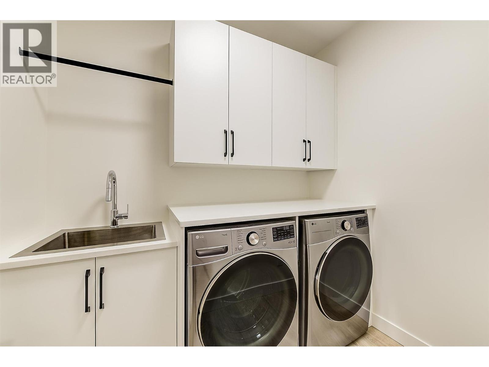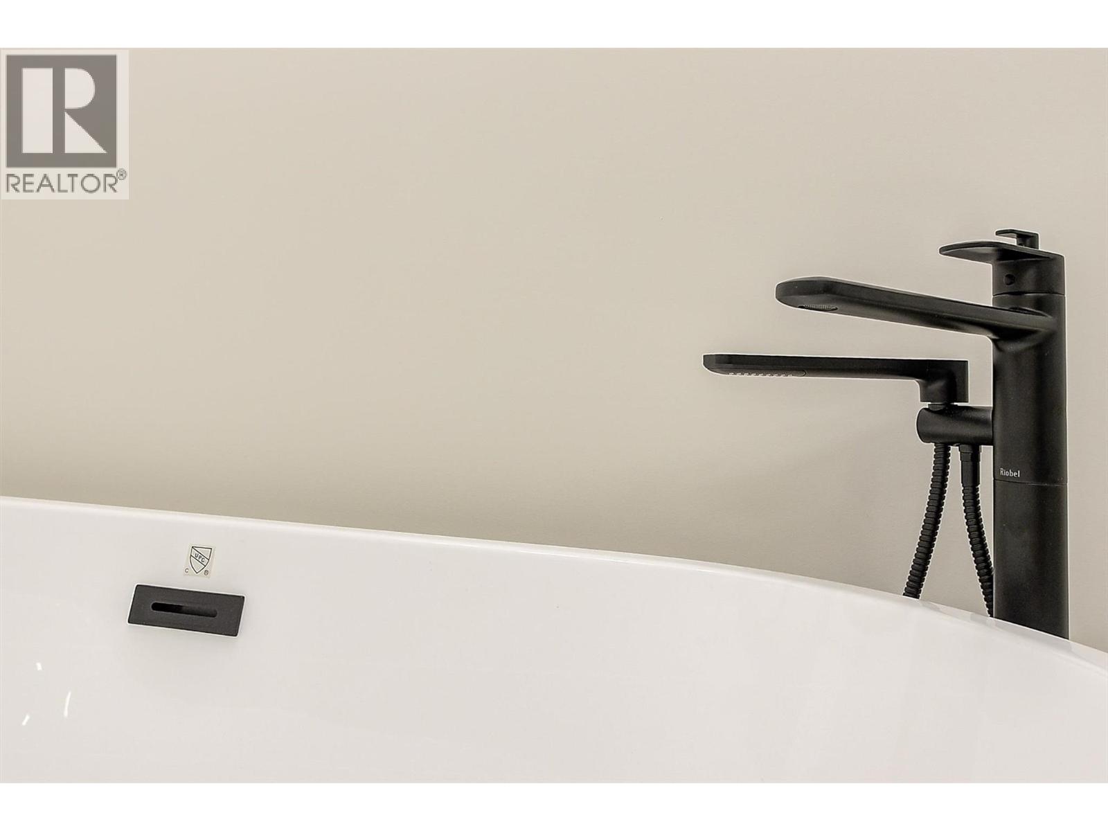 Come experience this quality Knorr Enterprises LTD. home on Kirschner Mountain with mountain & valley views. This stylish home has 5 bedrooms + den & 4 bathrooms. The covered veranda opens to an entryway & ground floor den w ensuite. A bright 2-bedroom Legal Suite w separate laundry, appliances & covered patio. The main floor offers a bright & open living/dining room w linear fireplace, ""tray"" ceiling w custom lighting & large windows/sliding door to take in the views. There is a large covered deck w wood ceiling. The kitchen offers Quartz counters, two-tone cabinets, an oversized island, a butler pantry, plus a kitchen-bar wall area + stainless appliances & gas range & a second covered deck w gas line. 2 carpeted bedrooms, linen closet & 4-piece main bathroom, a full laundry room w cupboards & sink on this level. The primary bedroom is bright & open w large windows for the views. A windowed walk-in closet & a 5-piece ensuite w custom tiled shower, heated floors, double vanity sink, quartz counter & stand-alone tub make up the primary oasis. The home offers an oversized double garage complete w utility room. The EV charger & central vacuum are both roughed-in. The home comes w Hardie board & brick exterior, landscaping, quality laminate floors throughout & carpet in the main home bedrooms & stairs. Hot water on demand, 200 amps CATT 5, lots of storage. Backs onto a park & is close to Black Mountain Elementary & BM Golf Course. Price +GST. Make this beautiful house your home. (id:21321)