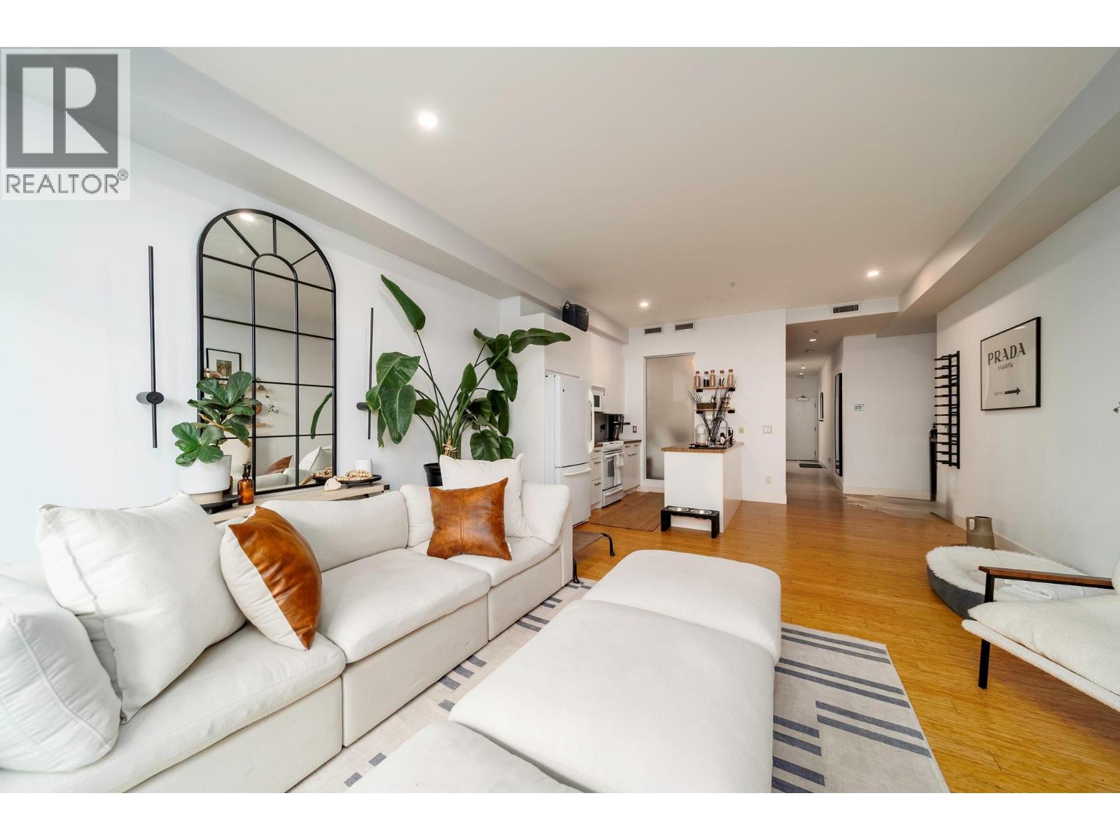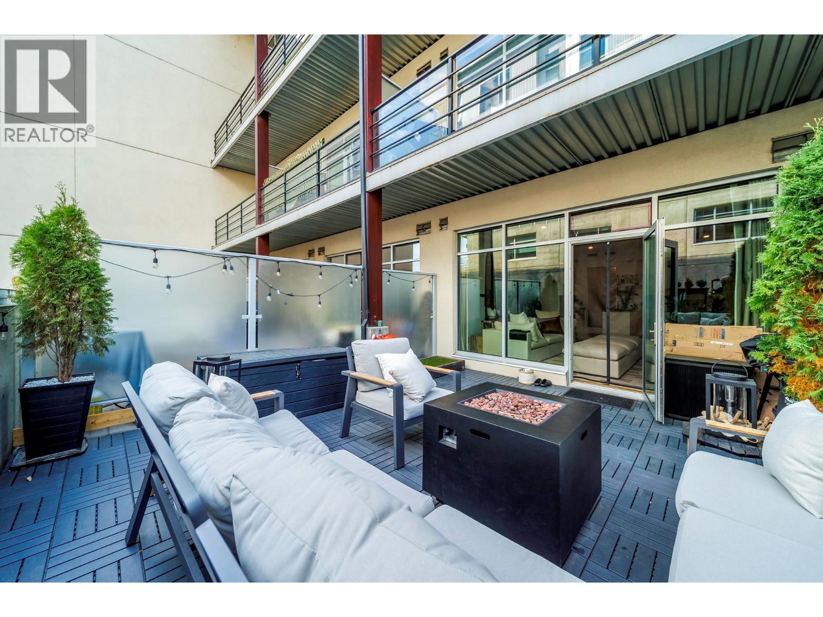 Located in the heart of Kelowna’s Cultural District, this 1-bedroom plus den home at Cannery Lofts combines modern design with exceptional outdoor space. The open layout features 9’ ceilings, light bamboo floors, and floor-to-ceiling windows that fill the space with natural light. A full glass wall opens to a private 18’x16’ deck—ideal for morning coffee or shaded evening gatherings. Contemporary finishes and a cozy fireplace add warmth and style, while residents can also enjoy the rooftop patio with lake views. From the beach to Prospera Place and Kelowna’s best dining, everything downtown offers is just steps away. (id:21321)