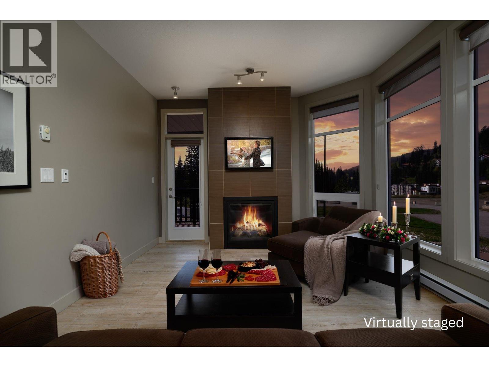 Enjoy ski-in/ski-out convenience with this 2nd-floor corner condo in Firelight at Silver Star Mountain Resort. Perfectly located beside the skating pond and Tube Town, with easy access to the Silver Queen chair and Nordic trails, this 2-bedroom, 1-bathroom unit is fully furnished and move-in ready. The open layout includes a well-equipped kitchen, in-unit washer/dryer, and a private balcony. The second bedroom is furnished with bunks, making it ideal for families or guests. Firelight offers excellent amenities, including a central lobby, two elevators, underground parking, ski lockers, a wax room, secure bike storage, and a shared outdoor hot tub. This property can be added back into the rental pool for revenue potential, and with no current bookings to honor, you can start enjoying the mountain lifestyle right away. GST applicable. (id:21321)