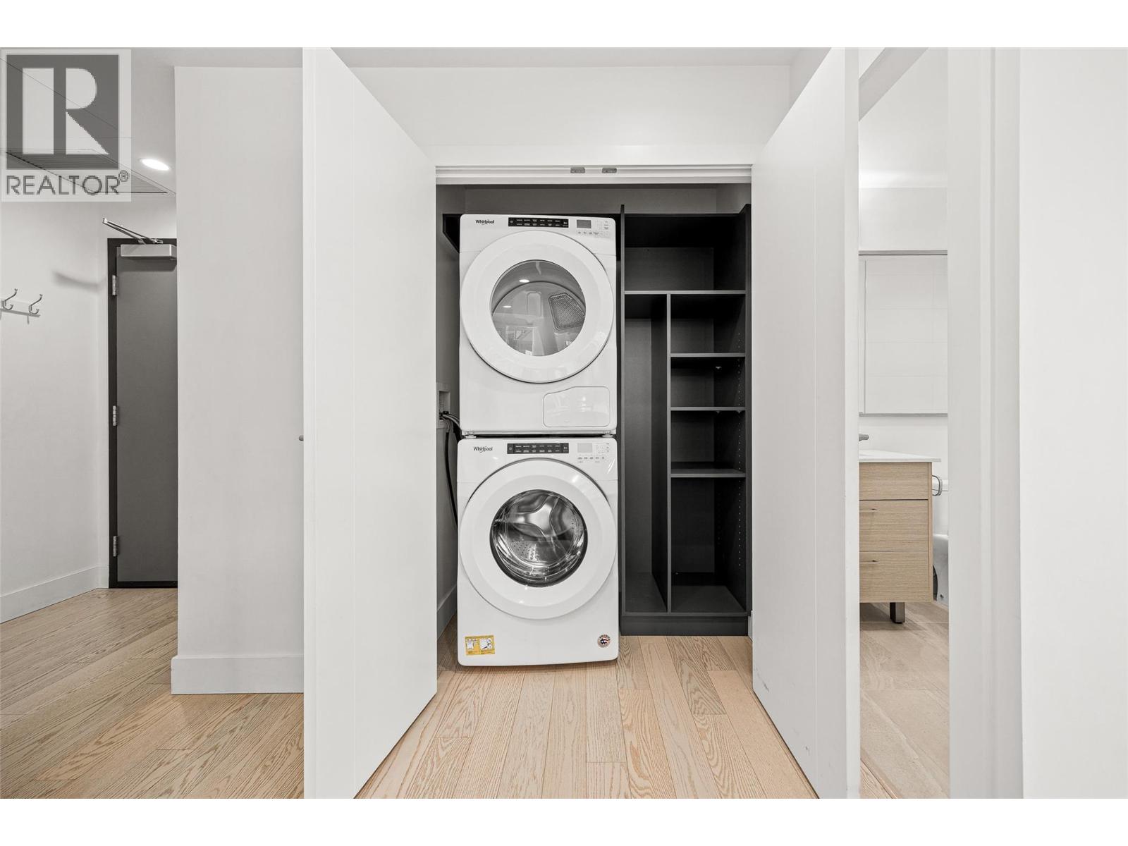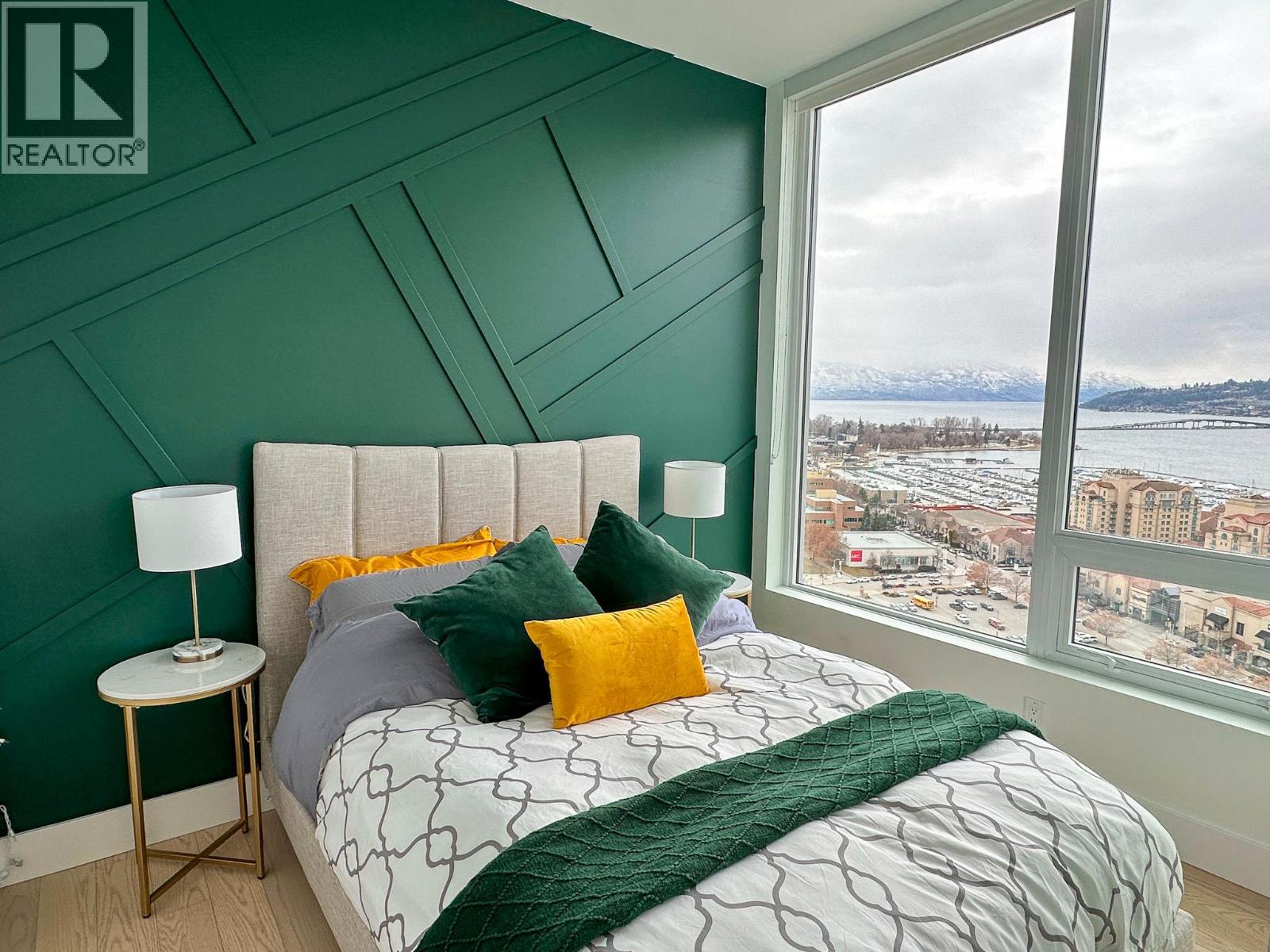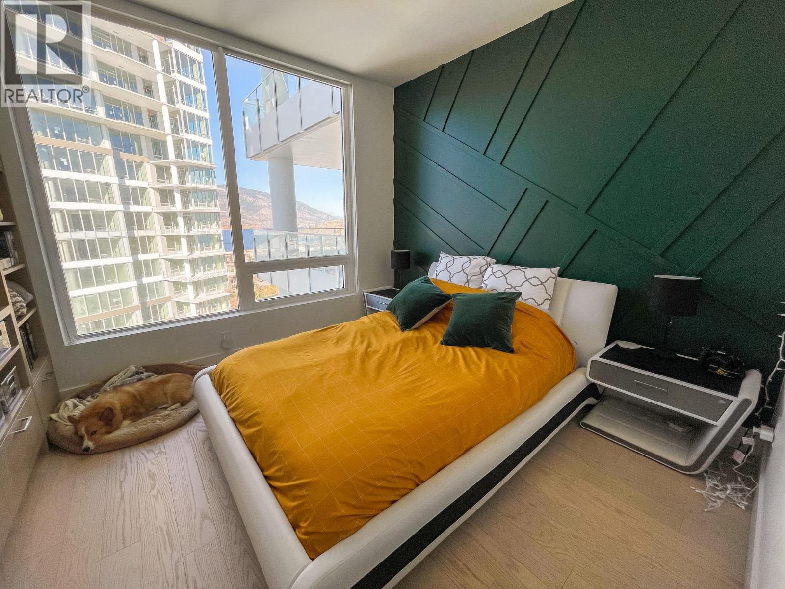 PANORAMIC LAKE VIEWS. Perched high above the city, unit 2205 at One Water Street delivers a true condo-in-the-sky experience with a sweeping west-facing vistas, capturing lake, city mountain & sunset views from every angle! This 2 bed, 2 bath corner unit features an open floor plan where the kitchen, dining and living spaces flow seamlessly to a massive covered sundeck overlooking Kelowna’s waterfront park & Okanagan Lake. The best spot in town to watch boats pass and a front row seat to take in the fireworks! The kitchen blends warm beach tones inspired by Knox Mountain with stainless steel appliances, gas range, island seating, upgraded lighting & near floor to ceiling windows. Custom upgrades include Westwood cabinetry in the primary bedroom and a built-in laundry closet with stacked washer & dryer. The primary bedroom offers a walk-in closet & 3-pc ensuite, while the 2nd bedroom captures jaw-dropping lake views. Ideal as a guest room, office, or flex space! This condo also has a second 4-pc bath with rain shower. Enjoy resort-style amenities: 2 pools, hot tub, fitness centre, yoga studio, steam room, pickleball court, BBQ stations, fire pits, security, guest suites, car wash bay, dog park & more! Includes 1 parking stall near the elevator + 1 storage locker. Convenience meets luxury - live steps to the beaches, restaurants, breweries, coffee shops, Prospera Place, the Cultural District, yacht club + city transit! Move in this spring! A fast possession is possible! (id:21321)