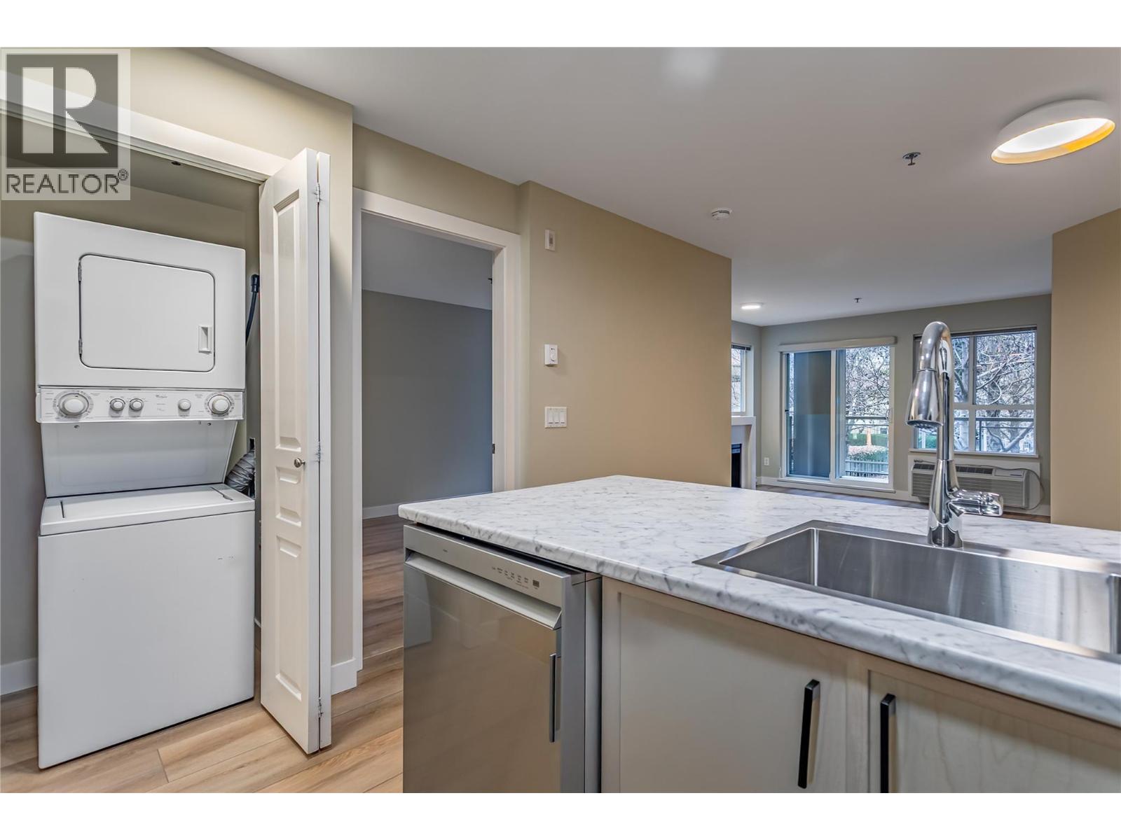JUST RENOVATED - one bedroom + den condo at Waterscapes with quiet exposure overlooking pool and court yard. This lovely downtown Kelowna condo has just had a major professional renovation completed including: new hard surface flooring throughout, new kitchen and bathroom cabinetry, new kitchen appliances, lighting and more. This condo shows like new! Spacious floor plan featuring a large living area, dedicated dining space with room for a dining table, nice sized covered deck, and primary bedroom with walk-in closet and cheater ensuite. Conveniently located in the Herons building which gives you direct access to all the amenities at Waterscapes. Residents have access to the beautiful resort-style Cascade Club, which includes an outdoor pool, garden courtyard, BBQ area, two hot tubs, a billiards room, a kitchen/lounge area, a fully equipped gym, and guest suites. Includes underground secure parking spot and storage locker. Enjoy life on the doorstep of Okanagan Lake and all that Downtown Kelowna has to offer! (id:21321)