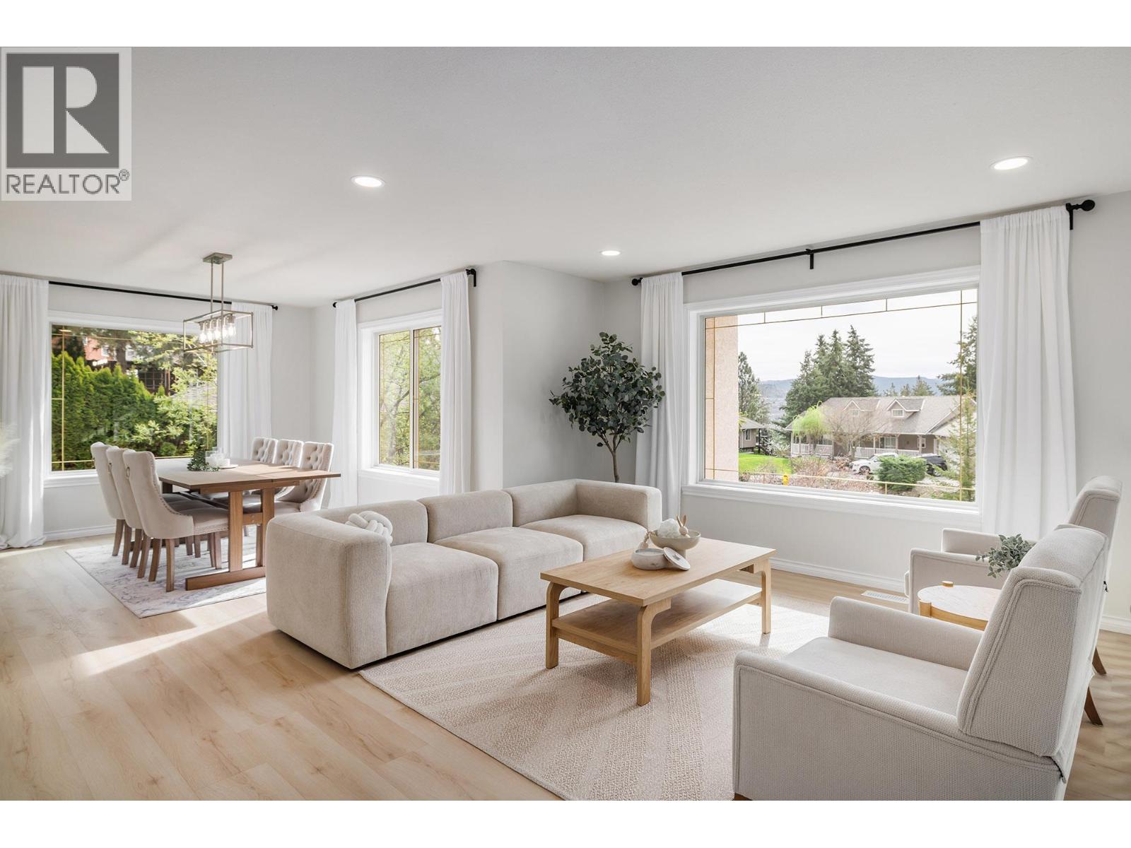 Live the dream in the Okaganan in this beautifully finished 5 bedroom home complete with a 2 bdrm mortgage helper suite and located in the highly sought-after community of Dilworth. Spanning on 1/3 acre lot, this home is situated in close proximity to beach, vineyards, shopping and everything Kelowna has to offer. The lower level is a self-contained suite with separate entrace to 2 bdrms, full bath, spacious family room, full kitchen, storage room and ensuite laundry, with versatility to extend into the main home with any future needs. Fall in love with this brand new kitchen featuring quartz countertops, dreamy faucets, granite farm sink and functional design. The upper level includes 2 good-sized bdrms and a primary bdrm of your dreams including a walk-in closet complete with laundry and a private patio perfect for evenings in the hot tub. The high-end finishes are carried on throughout in the private ensuite and main bathroom complete with soaker tub. The main level also features 2 dining areas, a family room and living room opening to a private patio with grapevine trellis, perfect for entertaining. The large picture windows showcase the peaceful valley views and beautiful mature trees. A rare lifestyle highlight is direct backyard access from your private trail leading to a scenic lakeview recreation area with ping-pong table, bar seating, and playground. Features: vinyl plank flooring, upgraded plumbing (no Poly B), modern pot lighting, large fenced yard, double garage. (id:21321)