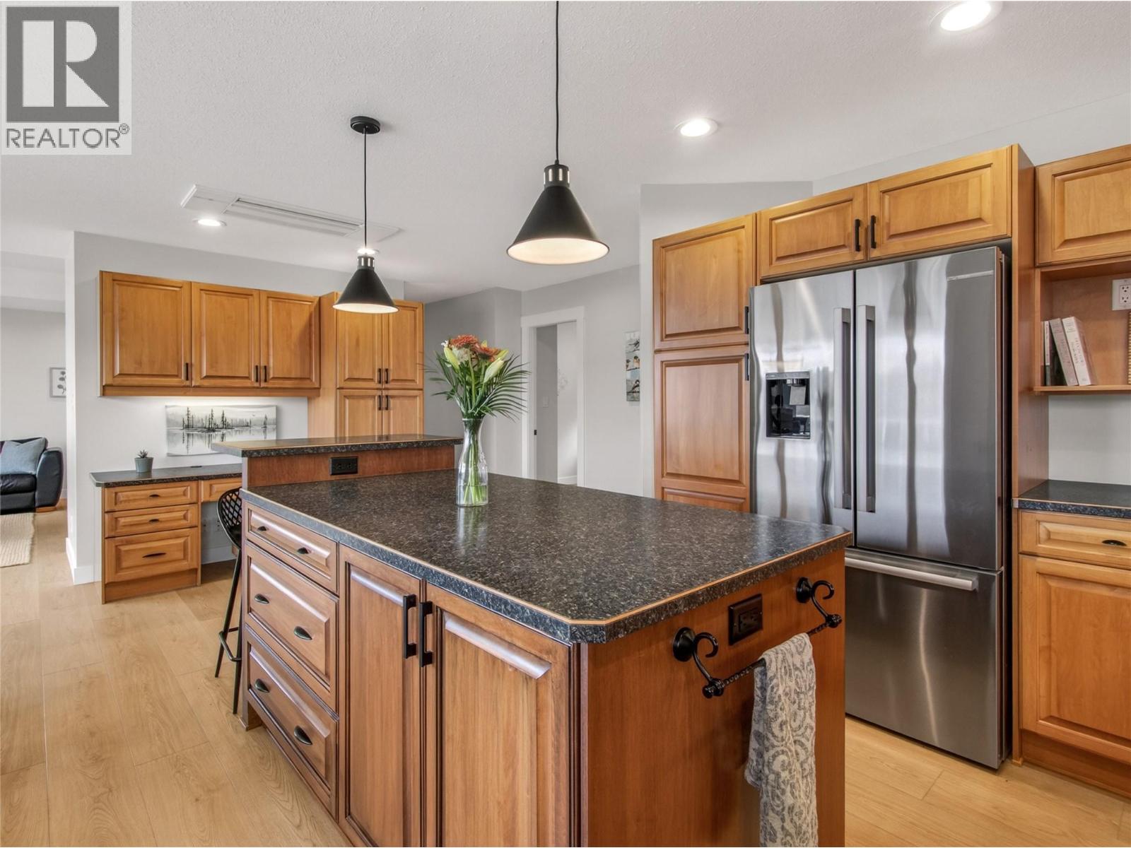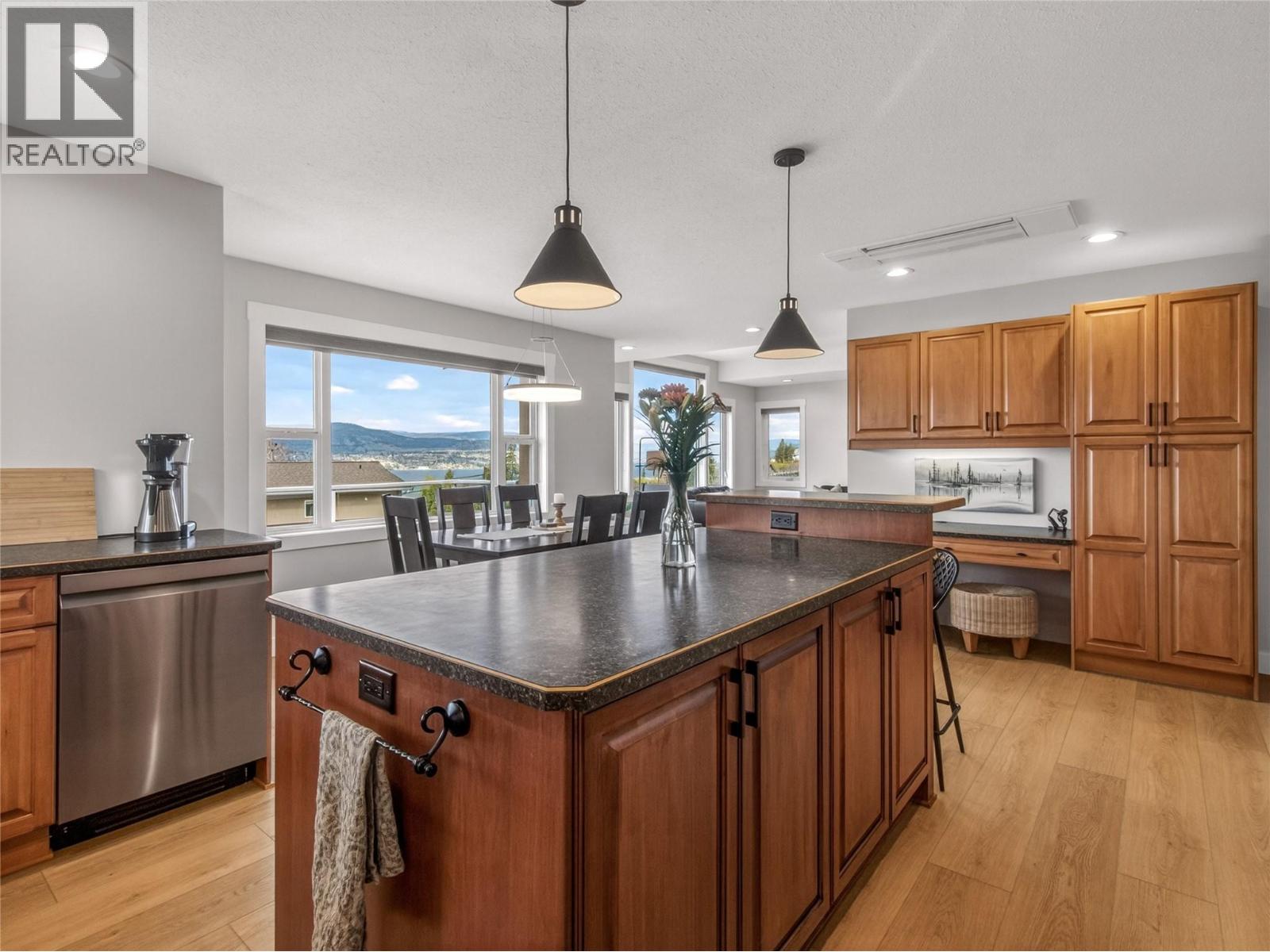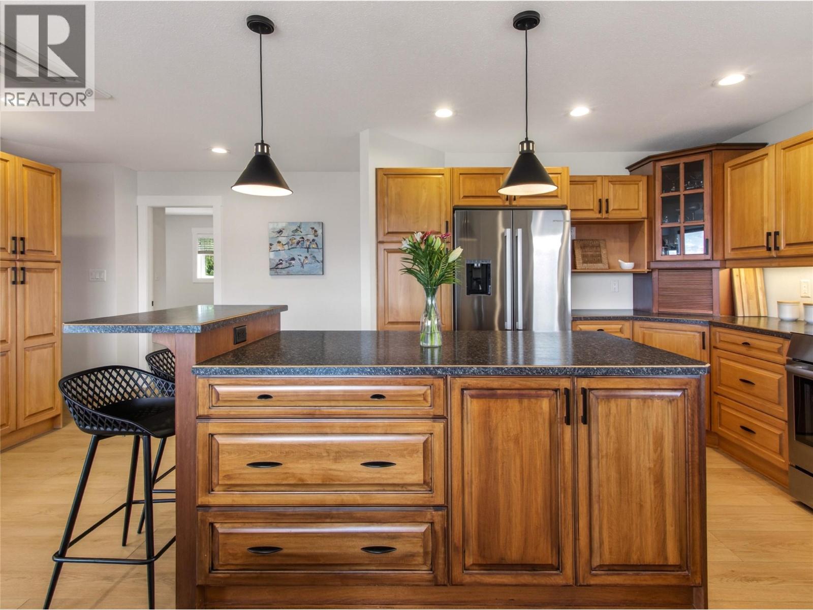 Stunning lake views, a beautiful family sized home with attached garage, + a studio suite above a 2nd detached garage, could all be yours in this dreamy Naramata Bench location! Built in 2005 this gorgeous 4 bedrm, 3 bathrm, 2527sqft home is bright & airy & move in ready. On the ground floor of this home the spacious foyer flows through to the large bright family room, plus there are two well appointed bedrooms & a full bathroom on this walk out level and attached double car garage! Upstairs on the main floor you can take in the views from every room, surrounded by vineyards behind & the lake out front you can enjoy every aspect. The huge kitchen has warm wood cabinets, a center island, extra storage & desk space, and that open plan design perfect for entertaining leading you into the large dining room & beautiful bright living room. The primary bedroom has a lovely ensuite with a large shower, a walk in closet, and access out to the backyard. There is a large 2nd bedroom & a full bathroom on this floor + convenient laundry. This level walks out to the gorgeous backyard complete with patio & pergola and room for a pool! As an added bonus this home has a detached double garage with a non conforming full one bedroom suite above it! The finishes and aesthetic are beautiful throughout this whole home and non conforming suite. Enjoy the lifestyle Naramata offers, a quiet village with strong community and activities, excellent shops and eateries and stunning beaches and wineries. (id:21321)