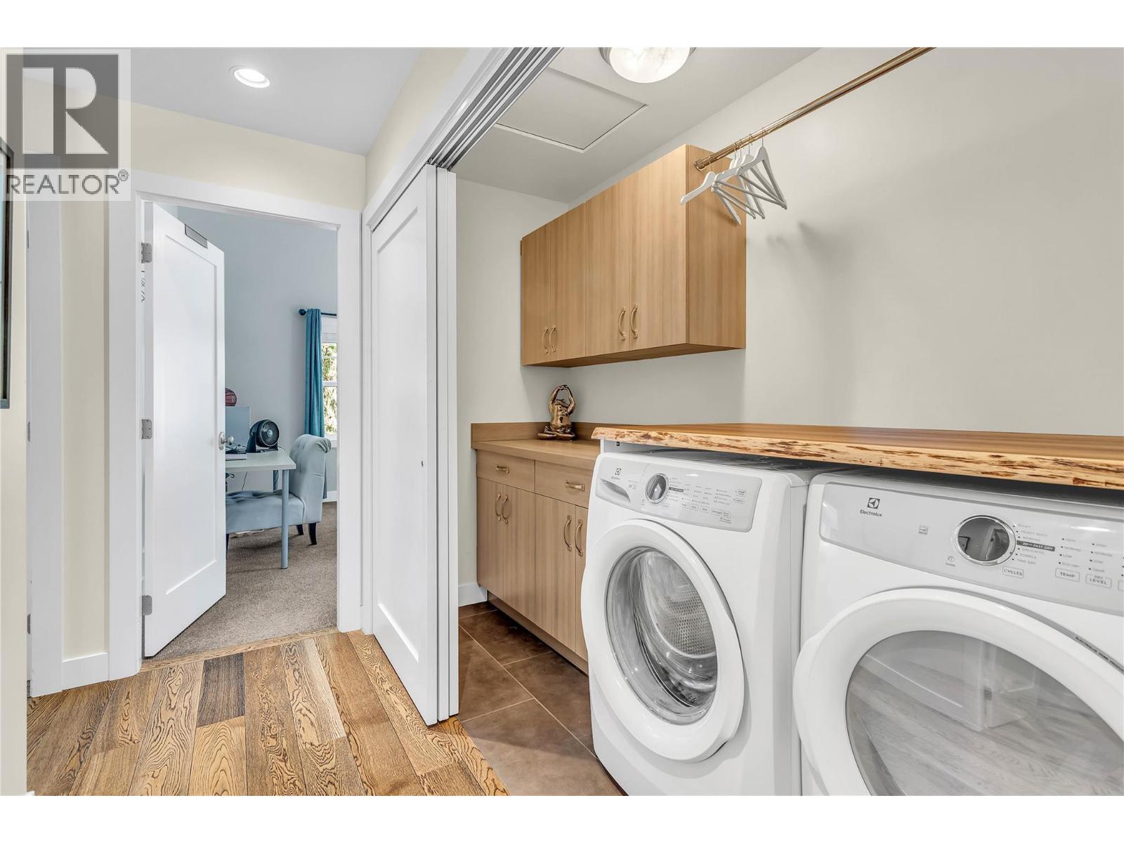 Welcome to your private sanctuary in Southeast Kelowna, where nature, thoughtful design, and everyday luxury come together on 4.25 acres of forested beauty. Mature trees surround this modern farmhouse, which offers 5600 sq ft of vibrant living space, perfect for quiet moments and lively gatherings. At the heart of the home, the kitchen features double islands, quartz counters, high-end appliances, and a spacious walk-in pantry, designed for creating special moments with family and friends. Vaulted dining and living areas with white-washed beams, a brick fireplace, and a sparkling crystal chandelier exude warmth and style. French doors open onto a wraparound patio, in-ground pool, and fire pit framed with lush landscaping, inviting you to relax and unwind in complete privacy. The main level offers two bedrooms with en-suite bathrooms, walk-in closets, a den, laundry, and a mudroom for convenience. Upstairs, the primary suite is a private retreat, complete with a spa-like ensuite, and a balcony overlooking the property—your perfect spot for a morning coffee or evening wine. The lower level is built for connection and fun, featuring a second kitchen, multiple living areas, and two bedrooms. A heated double garage with front and rear access, plus basement entry, adds extra convenience. Tucked away in Southeast Kelowna, this home offers rare privacy and natural beauty. This is more than just a home—it’s a lifestyle waiting for you to make it your own. (id:21321)