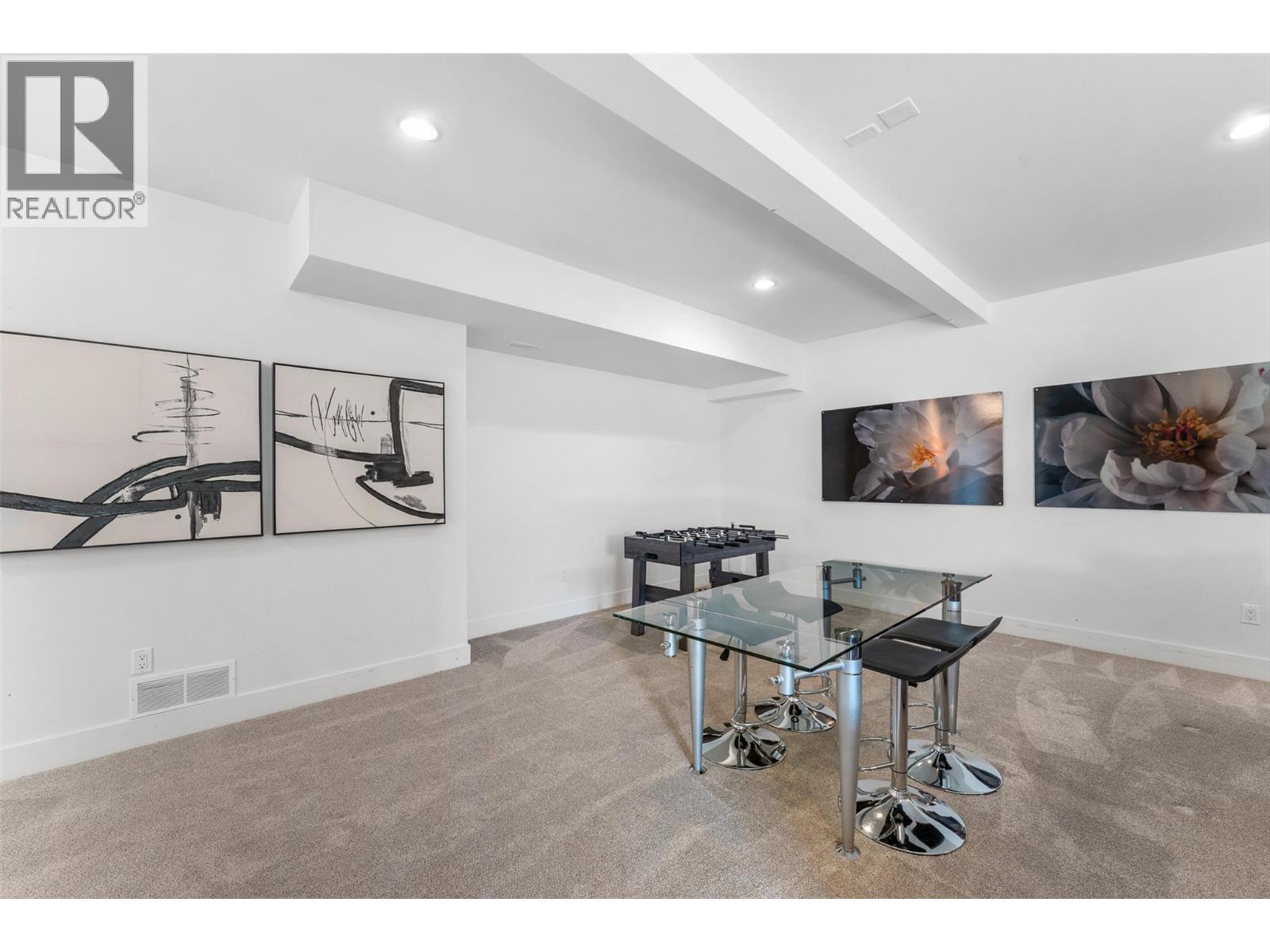 Modern lakeside retreat with unrivaled views. Perched above Kalamalka Lake on over 5 acres, this architecturally designed residence captures breathtaking views of the lake, valley, and Rattlesnake Point. Built by Peter Paneshick & Sons, the home showcases timeless modern design, expansive windows, and impeccable craftsmanship with 10 ft ceilings and 8 ft solid wood doors throughout. The main level flows seamlessly between open-concept living spaces, highlighted by soaring ceilings, a feature wall with a linear gas fireplace, and panoramic views from every vantage point. The chef’s kitchen impresses with Caesarstone counters, waterfall island, and premium appliances including Fisher & Paykel, Bosch, and Liebherr. A dining area, breakfast nook, and office extend effortlessly to the patio for outdoor entertaining beside the sunken hot tub and infinity-edge pool. Upstairs, the entire level is dedicated to the primary suite—a serene escape with private balcony, walk-in closet, and spa-inspired ensuite featuring heated floors, double vanity, and a soaker tub overlooking the lake. The lower level offers two guest beds, a full bath, rec room, and a bright den opening to the lower yard. A triple garage, extensive parking, and low-maintenance landscaping complete this extraordinary Okanagan retreat, designed for luxury living with a rare sense of privacy and connection to nature. (id:21321)