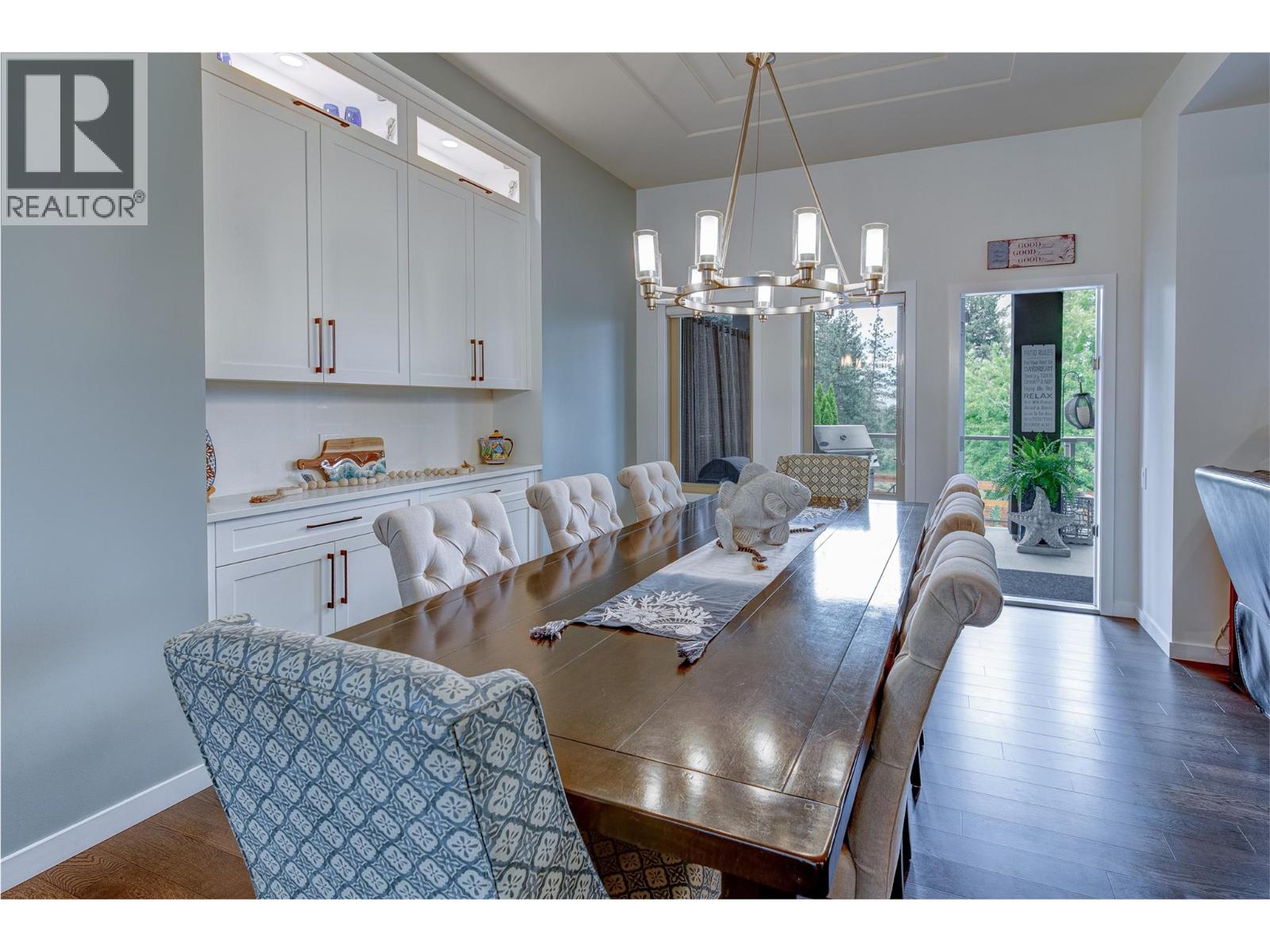 Beautifully UPDATED Walk-Out Rancher at Tallus Ridge. Private, Sun-drenched, Back Yard Oasis featuring a 1 piece fiber glass inground pool with lots of deck to lounge on! Open the front door & step into a ""Show Home"" decorated with an ""up to the minute"" color palette, feature walls, built in shelving & quartz counter tops throughout! Stunning Chef's kitchen is a joy to work in. Large Island with gas stove/oven with hood fan. Loads of cupboards, drawers, & eating bar. Dining Room has trayed ceiling & built in hutch. Living room also has a decorative ceiling & showcase travertine titled fireplace with gorgeous, solid wood wall feature. Primary Bedroom has spa-like ensuite: double sinks, corner tiled shower & separate tub, w/i closet and access to the deck. You will love the roomy Main Floor Laundry with a closet, cupboards, counters, and a sink. Large covered deck on main level overlooks the pool & patio. A curved staircase leads you downstairs to a massive recreation/family room with a 2 sided fireplace and wet bar. Loads of room for and outdoor kitchen. Bring your Pool Table! 2 more bedrooms! The storage room could become a Media Room or gym! More covered patio on the lower level to maximize your Okanagan lifestyle. Oversized garage has a epoxy floor, work bench, cabinetry, & lots of mezzanine storage. Lots of parking on driveway and room for an RV. 2 garden sheds in rear yard for pool equipment and garden tools. Minutes to golf, wineries & shopping. (id:21321)