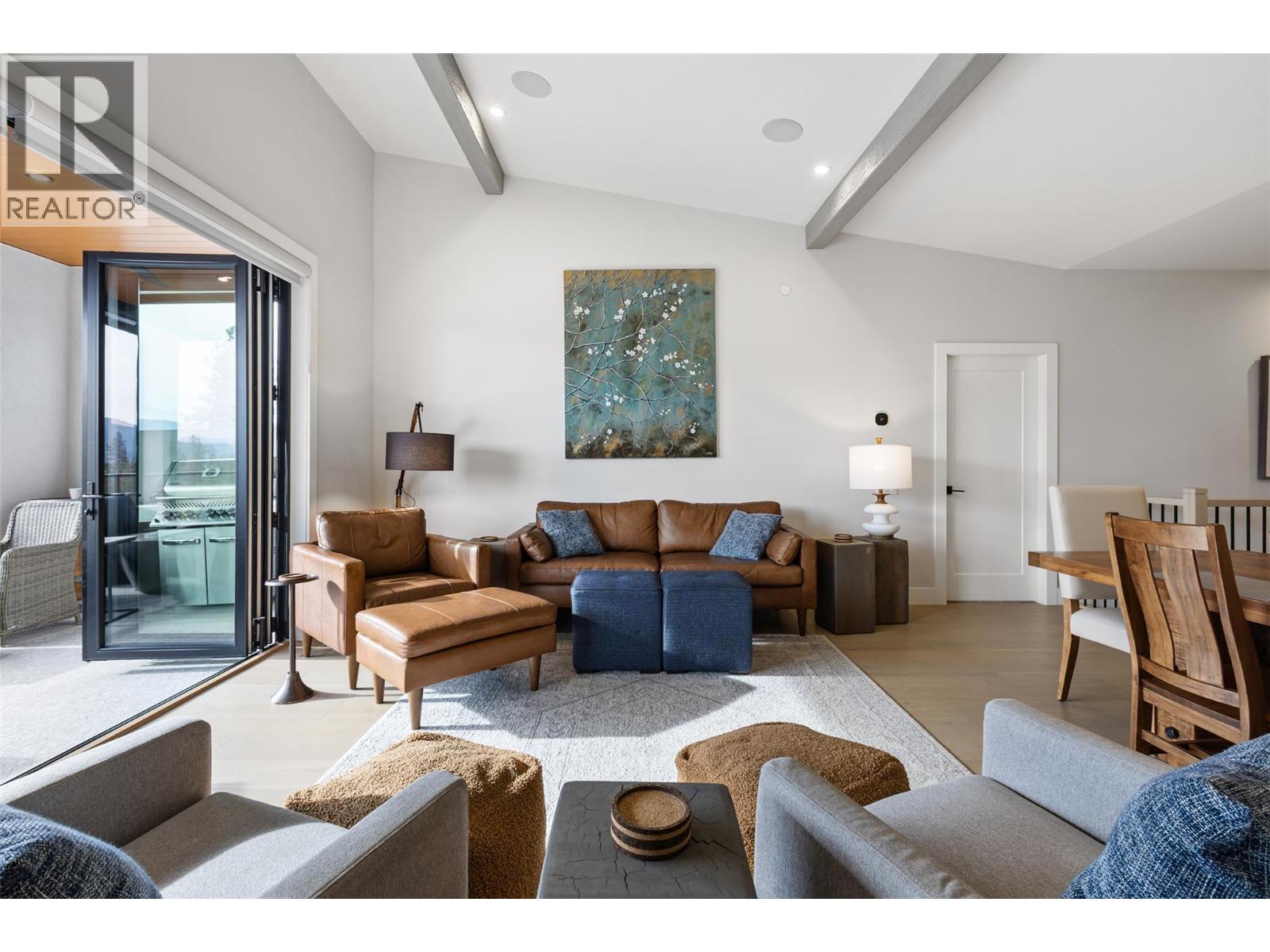 Dream retreat in Lakestone —where elegance, comfort, and nature converge. With over $30,000 in upgrades, this home must be seen to be appreciated! This 3-bed + den, 3-bath walkout townhome comes fully-furnished & decorated for immediate, turn-key occupancy! Chef’s kitchen that inspires culinary creativity, with high-end stainless steel appliances, a gas range, wine fridge, & large island that invites connection and conversation with room for 4 stools. Rich wood floors add warmth, while the seamless layout invites you from the kitchen into a bright and airy living space, perfect for entertaining. Floor-to-ceiling gas fireplace with unique tile surround, wallpaper & beamed/vaulted ceilings make this home stand out from the rest. Nano-doors welcome the outside-in & frame peaceful views of the lush landscape, while the upper deck with its automated sunshades - offers a private escape. Primary suite is haven featuring a spa-style ensuite w/heated floors, dual sinks, deep soaker tub, and walk-in closet. Lower walkout level expands your living space with two generously sized bedrooms that both fit King sized-beds, stylish 5-pce bath, a private office/den, and a rec room ready for movie nights complete with wet bar and wine display! Step outside to a tranquil enclosed patio. Residents enjoy exclusive access to the Centre Club: outdoor pools, a gym, & sports courts. Whether you’re looking for a fulltime residence or a luxurious lock-and-leave option, this home offers refined living. (id:21321)