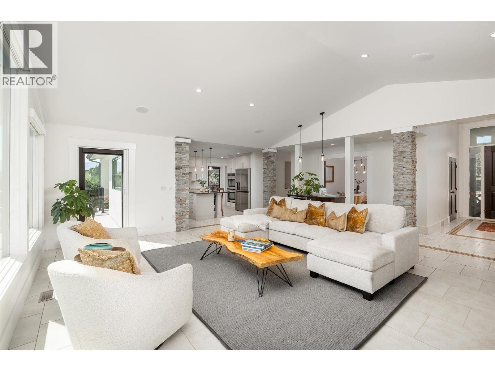 This modern home sits on a gated .75-acre private lot in a quiet, sought-after community in Lakeview Heights. Surrounded by mature, easy-to-maintain gardens and backing onto nature, the property offers stunning panoramic views of the lake, mountains, and city skyline. The expansive, well-established gardens create a tranquil setting perfect for relaxation and outdoor enjoyment. The home boasts numerous recent upgrades, including the addition of a 4th bedroom, a new furnace, a new high-efficiency heat pump, a 12kW solar panel system, and a Powerwall 3 energy storage battery. These energy-efficient features significantly reduce utility bills and contribute to a sustainable lifestyle. Inside, enjoy a warm and welcoming ambiance highlighted by an impressive fireplace and floor-to-ceiling windows framing picturesque lake, mountain, and city views. The gourmet kitchen features an oversized granite island, a butler’s pantry, and immediate access to a covered deck ideal for al fresco dining or relaxing around a natural gas fireplace. Outdoor amenities are equally impressive, including a hot tub off the primary suite, a heated 14’x36’ pool, and a private outdoor cabana bar with fridge, sink, and surround sound. Located just minutes from downtown Kelowna, golf courses, schools, and city parks, this home is ideally situated for outdoor enthusiasts with nearby hiking and biking trails in Kalamoir Park. Short walks lead to wineries, shops, pubs, cafes, and the new community centre with recreational facilities - such as tennis, pickleball, basketball courts, and a playground. Additional features include a new 4th bedroom with lakeview, private entrance lower level one-bedroom Airbnb, ideal for generating extra income, and room for a potential carriage house, perfect for multi-generational living or additional rental opportunities. (id:21321)