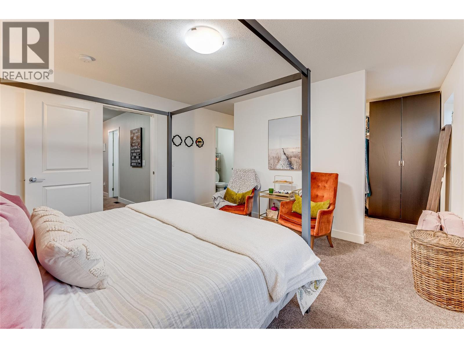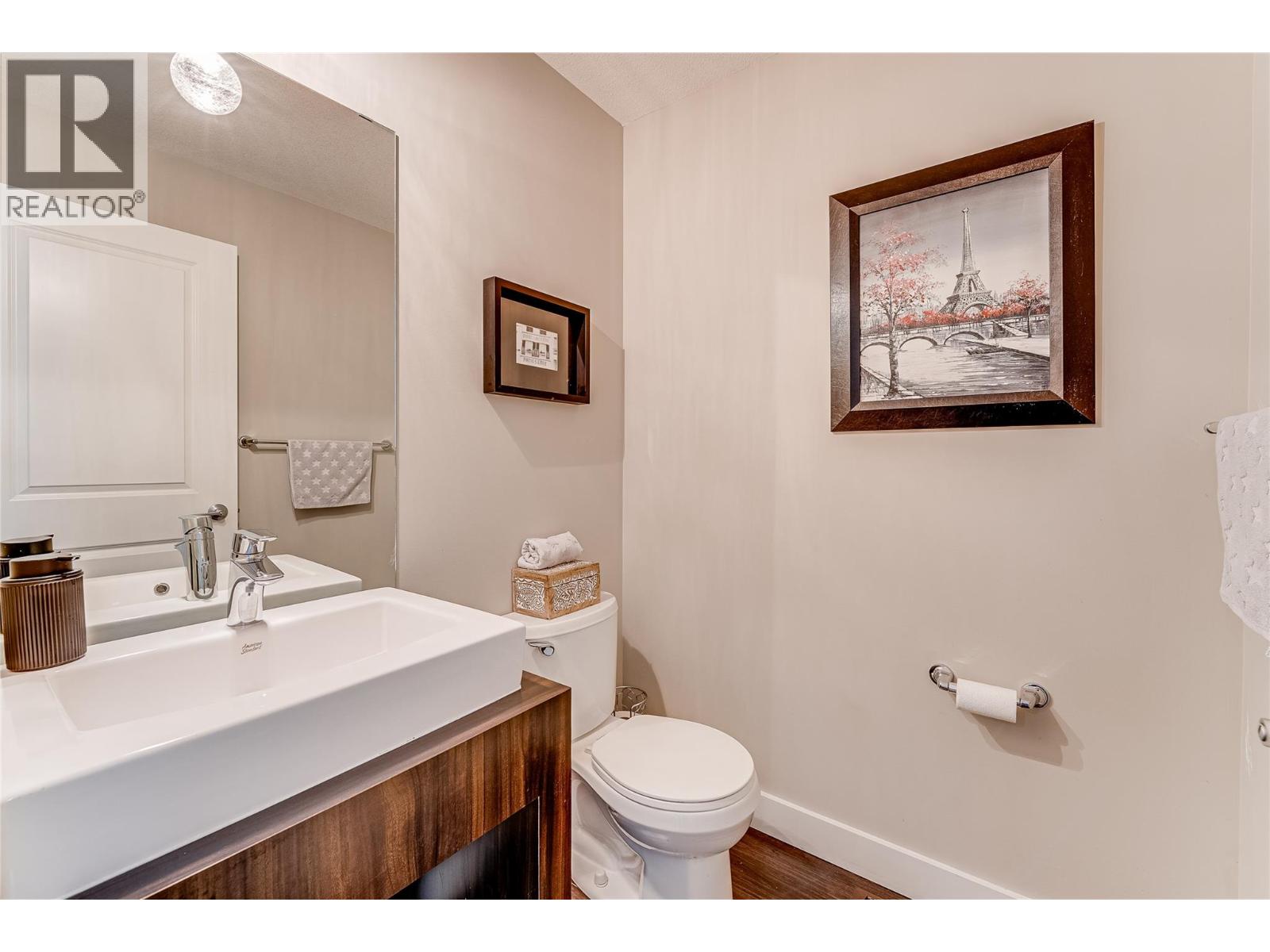 The epitome of turnkey living, this entirely modern, move-in ready townhome in an attractive 4-unit complex, built in 2014, offers the low-maintenance lifestyle that’s in high demand. The main level is a bright open concept with gleaming laminate flooring. The well-appointed kitchen is outfitted with wood cabinetry and complementary countertops, as well as a tiled backsplash. The adjacent dining room contains French doors leading out to a large balcony, and the living room is spacious and cozy, with a two-piece bath and garage access off the hall. On the upper floor, there is an inviting master suite with walk-in closet and handsome ensuite bathroom. A second bedroom shares the full hall bathroom with guests. Further, a bonus loft space is great as an office or playroom. An unfinished, full-height basement with the mechanicals, abundant storage and roughed-in plumbing/wiring awaits your creative ideas. (id:21321)
