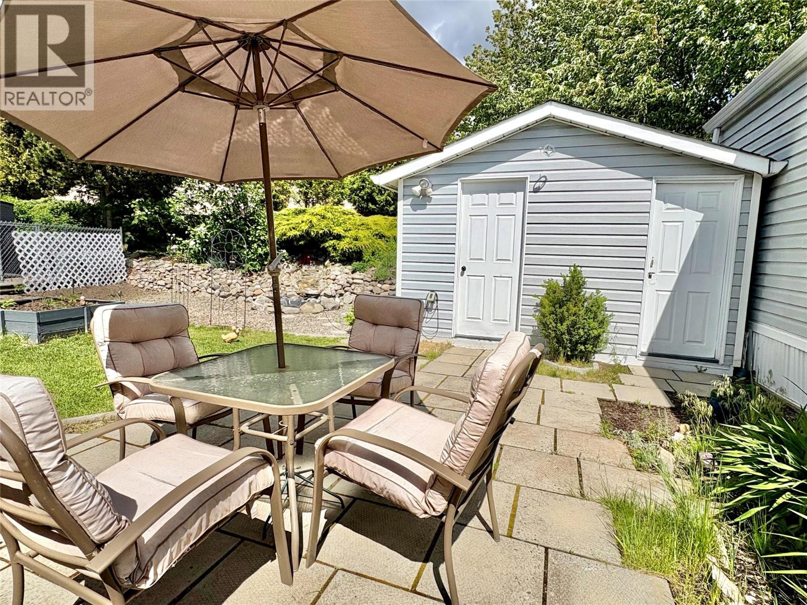 Welcome to Crystal Springs 55+ community! This well cared-for home has numerous updates, including a newer furnace and hot water tank. Enjoy making meals in the updated kitchen, featuring, a generous island with bar style seating, quartz countertops, a dedicated coffee bar, and stainless steel appliances. You’ll appreciate the vaulted ceilings and the natural light from the skylight. Plus, the added sunroom provides year-round extra living space. The primary bedroom offers a walk-in closet, and its ensuite features a fully tiled shower, the second bedroom is ideal for guests or a hobby room, enjoying abundant natural light and fabulous mountain views. Outside, discover a charming, fenced backyard complete with a lovely garden and a tranquil water feature. A practical shed with electricity and ample entertaining space make it perfect for summer evenings with guests. Situated near Shannon Lake Golf Course, you'll enjoy easy access to recreation, stunning mountain views, and the vibrant community atmosphere. Residents of Crystal Springs can take advantage of the impressive clubhouse, offering a library, puzzles, games, pool tables, monthly dinners, a rentable guest suite, and happy hours—a wonderful opportunity to connect and enjoy an active social life. RV storage is also available! (square footage includes the 153 sq ft sunroom with heated electric fireplace and insulation) One Pet is allowed up to 12 pounds when full grown with Park approval. (id:21321)