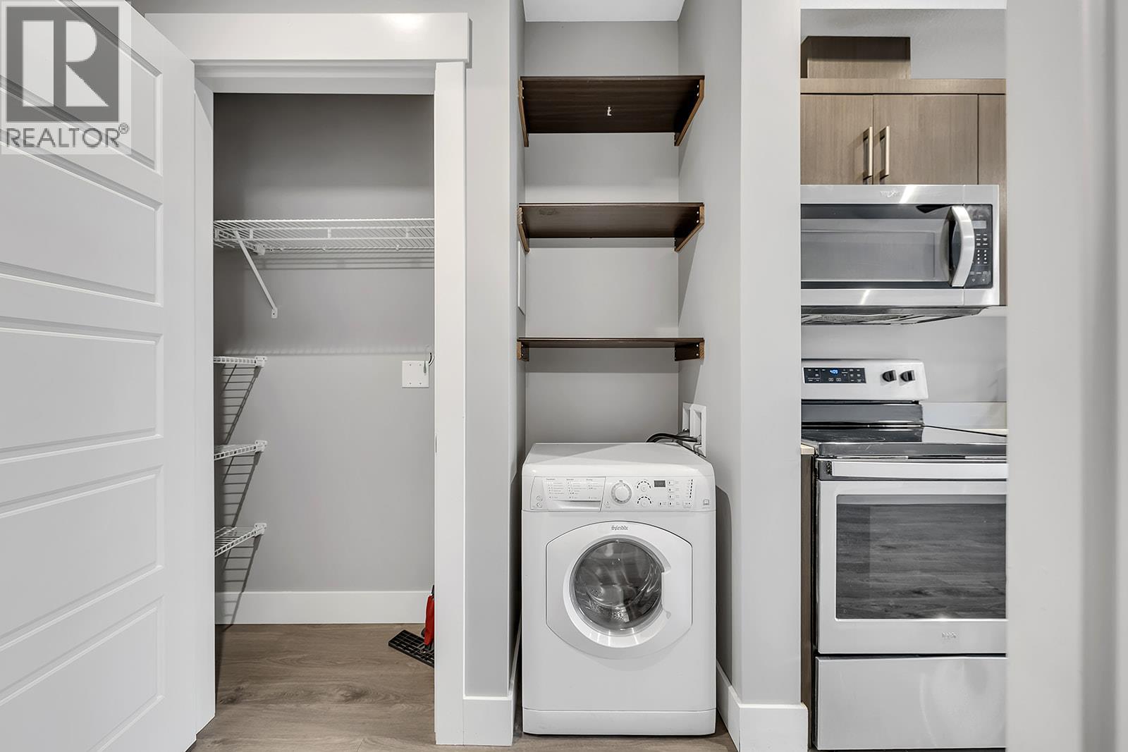 Centrally located modern studio suite is ready for move in!! Complete with a full kitchen that includes stainless steel appliances & quartz countertops. This suite has lots of natural light through the large window, a full 4 piece bathroom, in suite laundry & A/C. Cambridge House offers exceptional amenities, including a large open indoor concept social lounge, gym, business center, and an outdoor courtyard with a barbecue area. Short stroll to downtown Kelowna's many amenities, including beaches, trails, shopping, dining, and a variety of entertainment. 1 secured parking stall and storage locker included. 2 dogs or 2 cats or 1 of each. Less than 25 lbs. Rentals allowed. This property is ideal for first-time buyers, students, or investors. (id:21321)