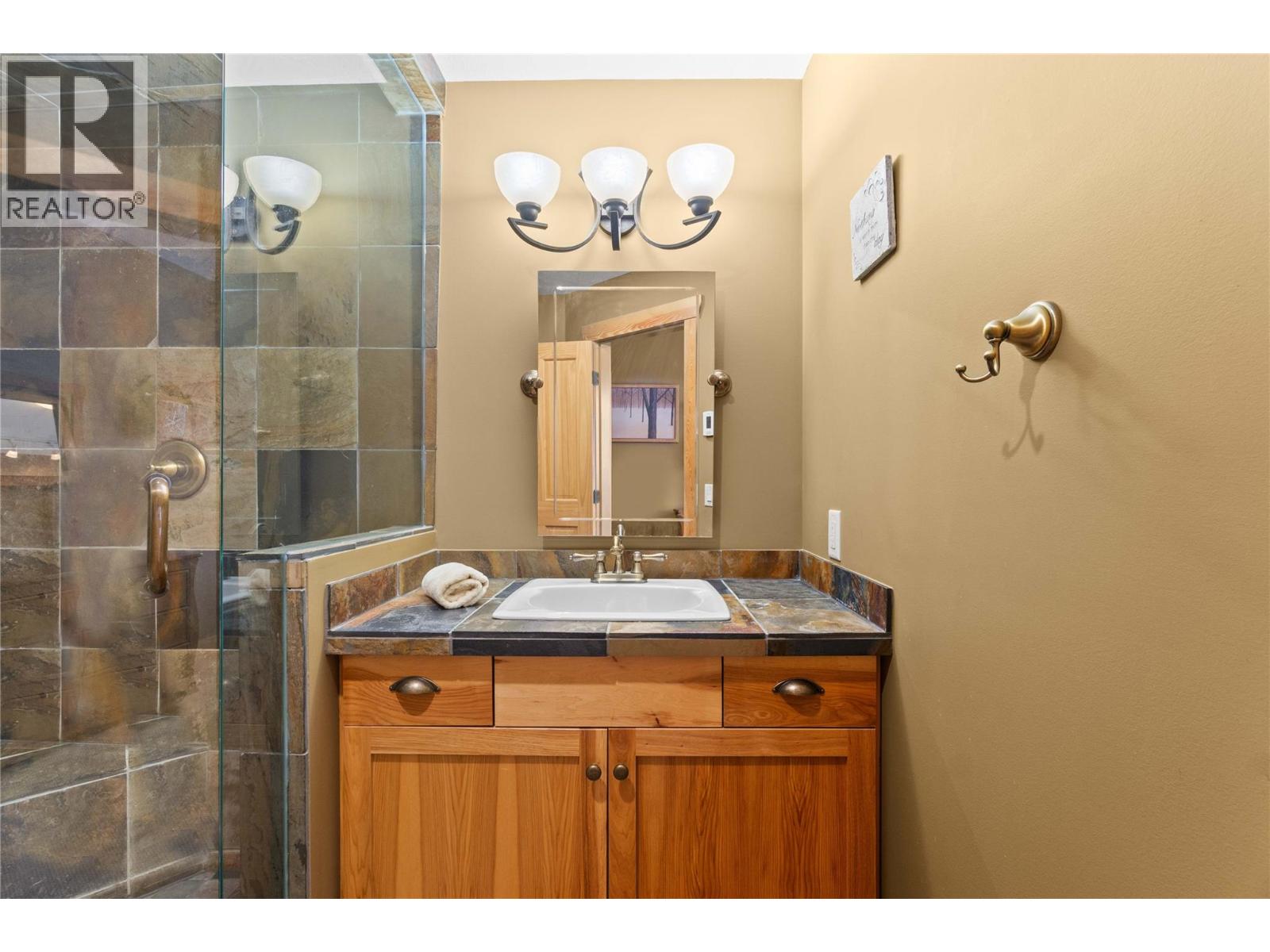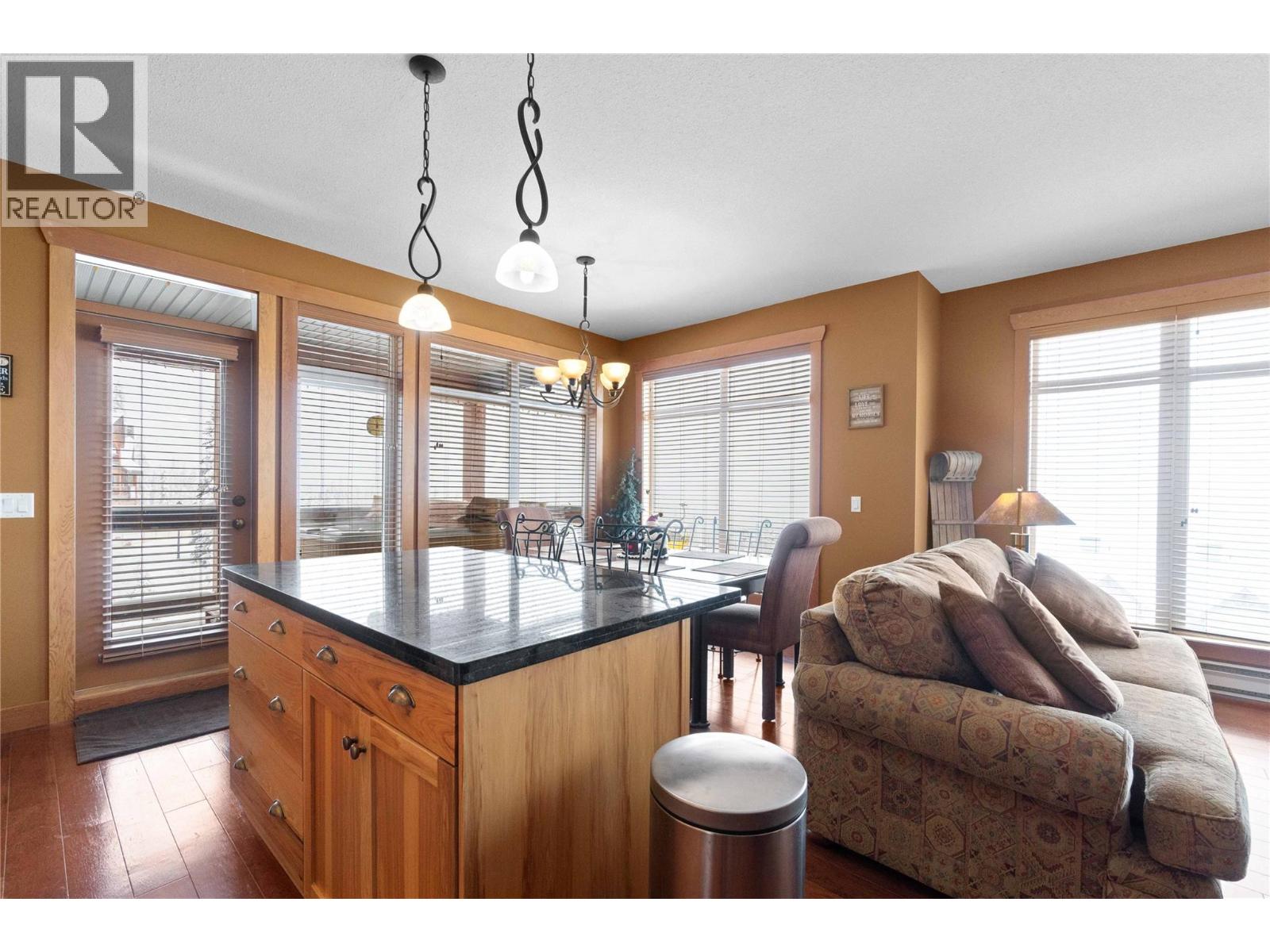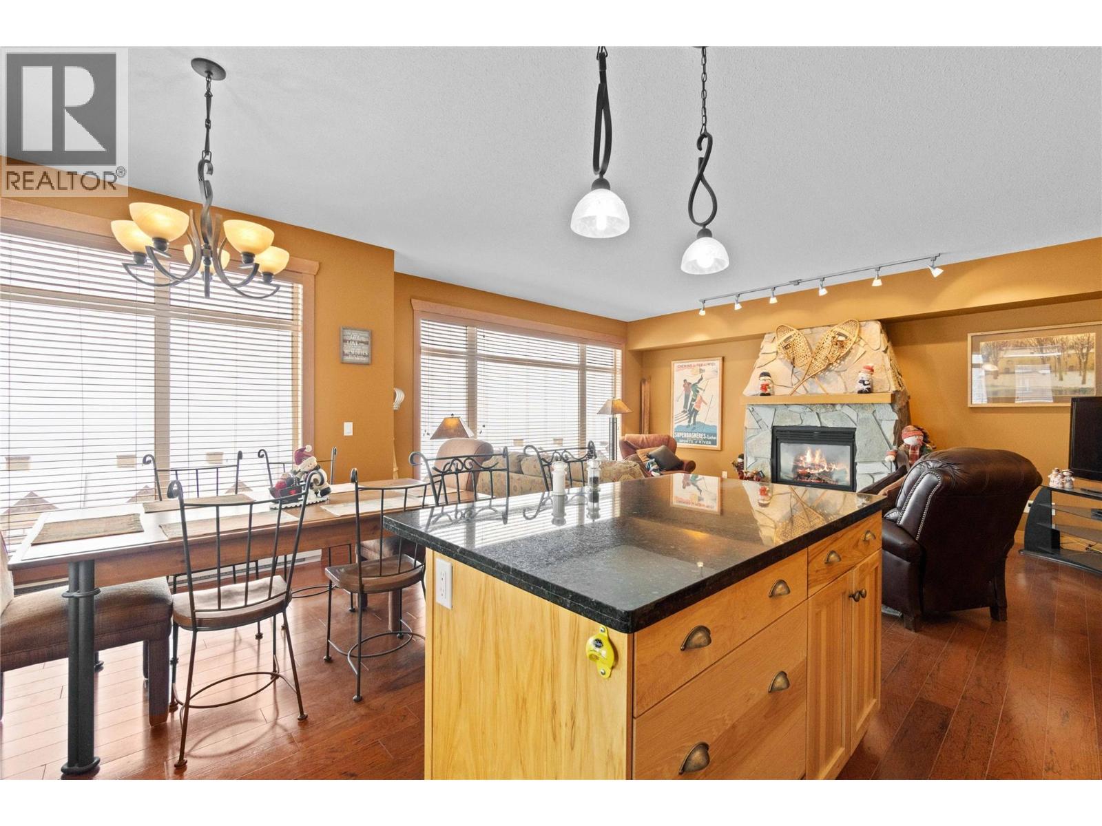 Top floor corner unit ski chalet with unobstructed views in Big White's favorite boutique building: Glacier Lodge. This ski in/out former show home boasts 2 bd + 2 bath; has simply incredible views of the valley, Monashees and weekly fireworks. Easy access with a ski bridge 25 steps to your front door. 2 secure underground parking stalls & 2 ski storage lockers just steps from the unit. Centrally located right on Happy Valley Way you are just mins to the village or gondola. Private hot tub/balcony. In-suite laundry. Stainless appliances, granite counters. New fridge+microwave. Hardwood floors, heated slate tiles, steam shower. Spacious entry, stone fireplace and over height ceilings. Smart floor plan with space to entertain or host family. Rarely used by the Owner, the unit has never been rented, well-run strata and the unit is in excellent condition. No rental restrictions or revenue share required. Sold turn key, ready to occupy for Jan 1 with all furniture, decor and linens/sundries. Sleeps 8. Newer washer/dryer, h/w tank, vacuum and under-cabinet lighting. Measurements are approx. (id:21321)