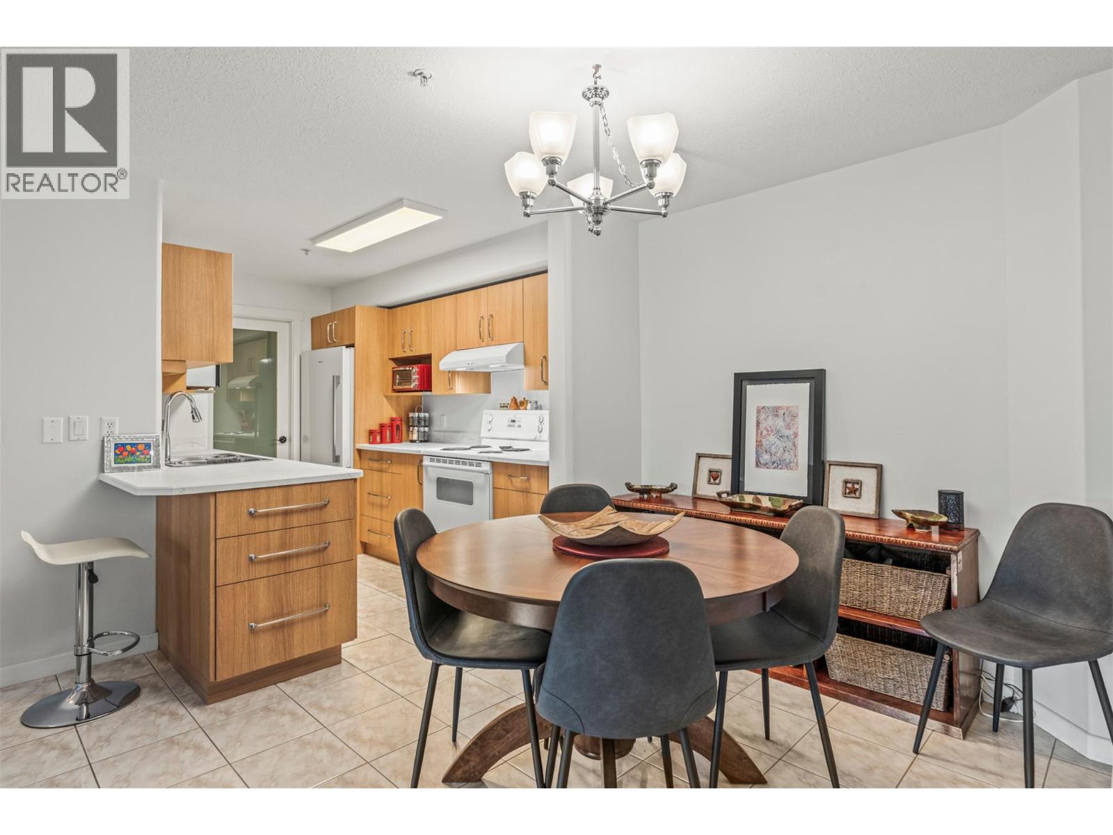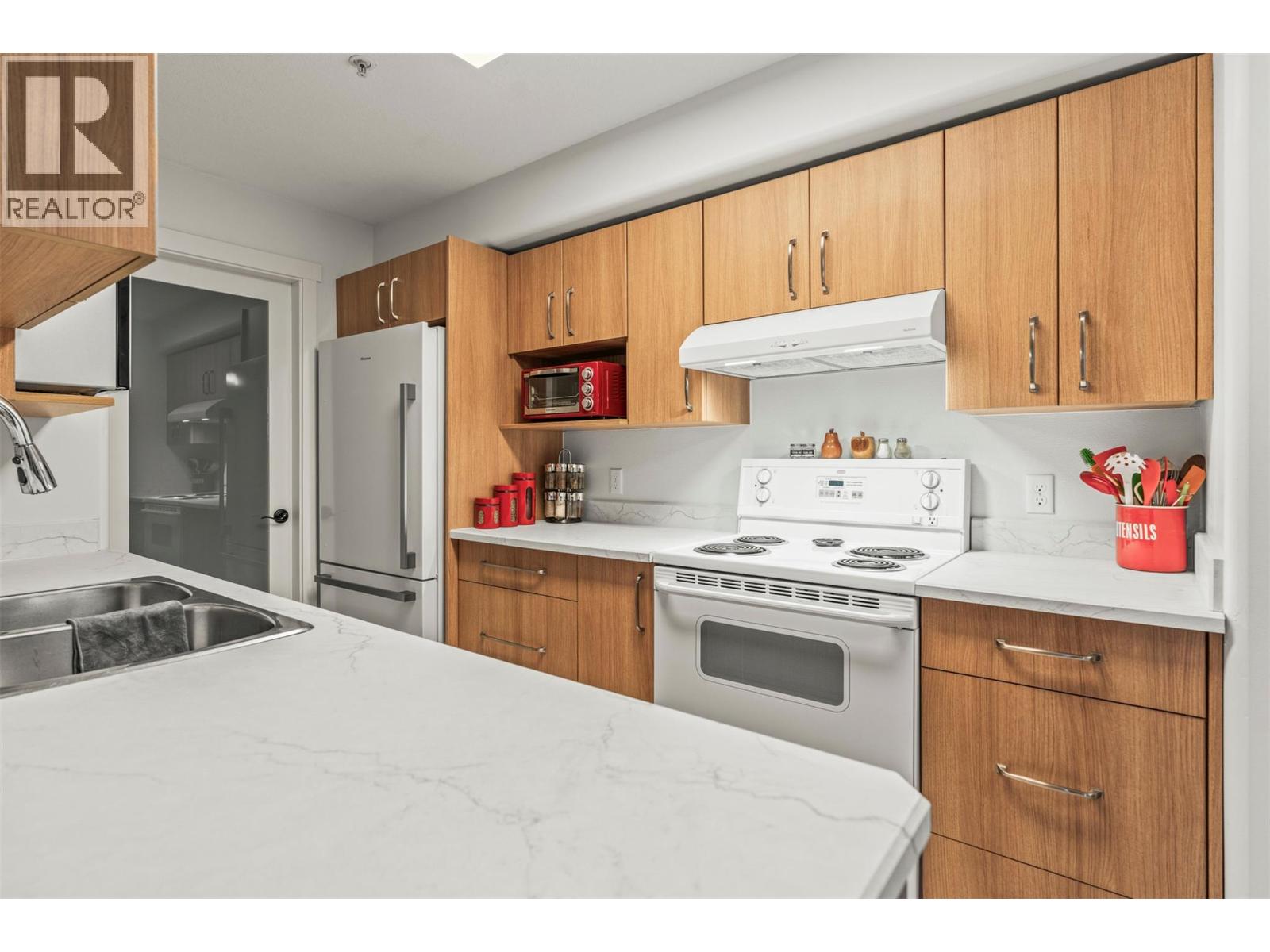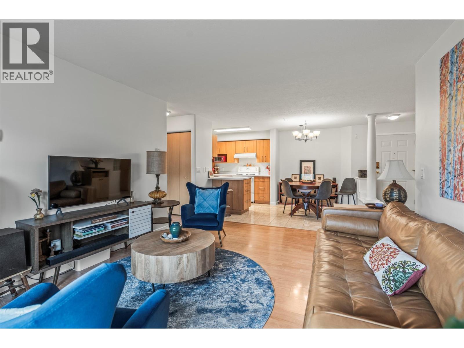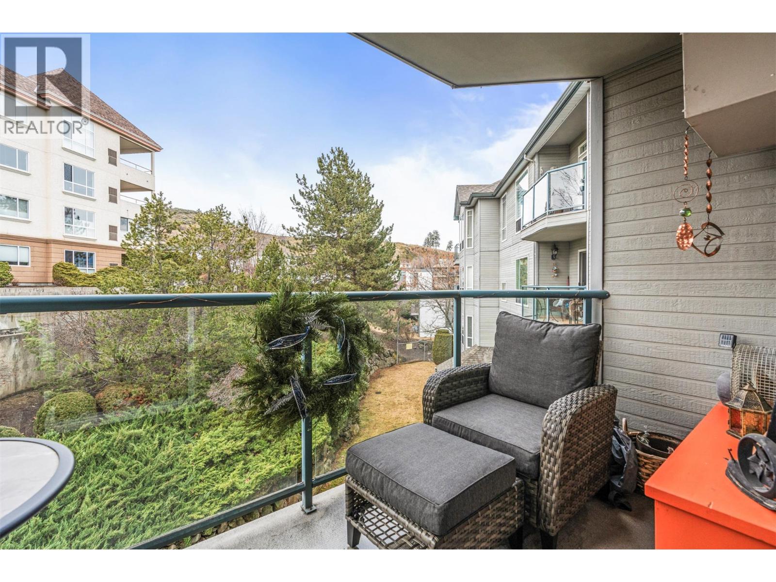 Bright and airy, this 2-bedroom, 2-bathroom apartment at Royal Village offers a comfortable and inviting living space. The galley-style kitchen, complete with a large pantry, had $10,000 in upgrades in 2024 and overlooks the open-concept dining and living area, where a cozy fireplace adds warmth and charm. Sliding doors lead to a covered deck that backs onto greenspace, a perfect spot to unwind and take in the lush gardens—keep an eye out for deer passing by! The spacious primary bedroom features double closets, a generous window for natural light, and a private 4-piece ensuite. Positioned at the opposite end of the apartment, the second bedroom offers privacy and convenience with a pocket door leading to the 3-piece bath. An in-unit stackable washer and dryer add ease to daily living. Enjoy the perks of a central location—just a short walk to downtown Vernon, where you’ll find shops, restaurants, and local amenities. The complex also offers great community features, including underground parking, a gym, a boardroom, and a common area patio. This 55+ complex is ideal for those seeking a quiet and well-maintained environment. Great opportunity for those downsizing and looking for a convenient and secure lock and leave. Learn more about this fantastic Vernon property on our website. Ready to take a closer look? Schedule your private showing today! (id:21321)