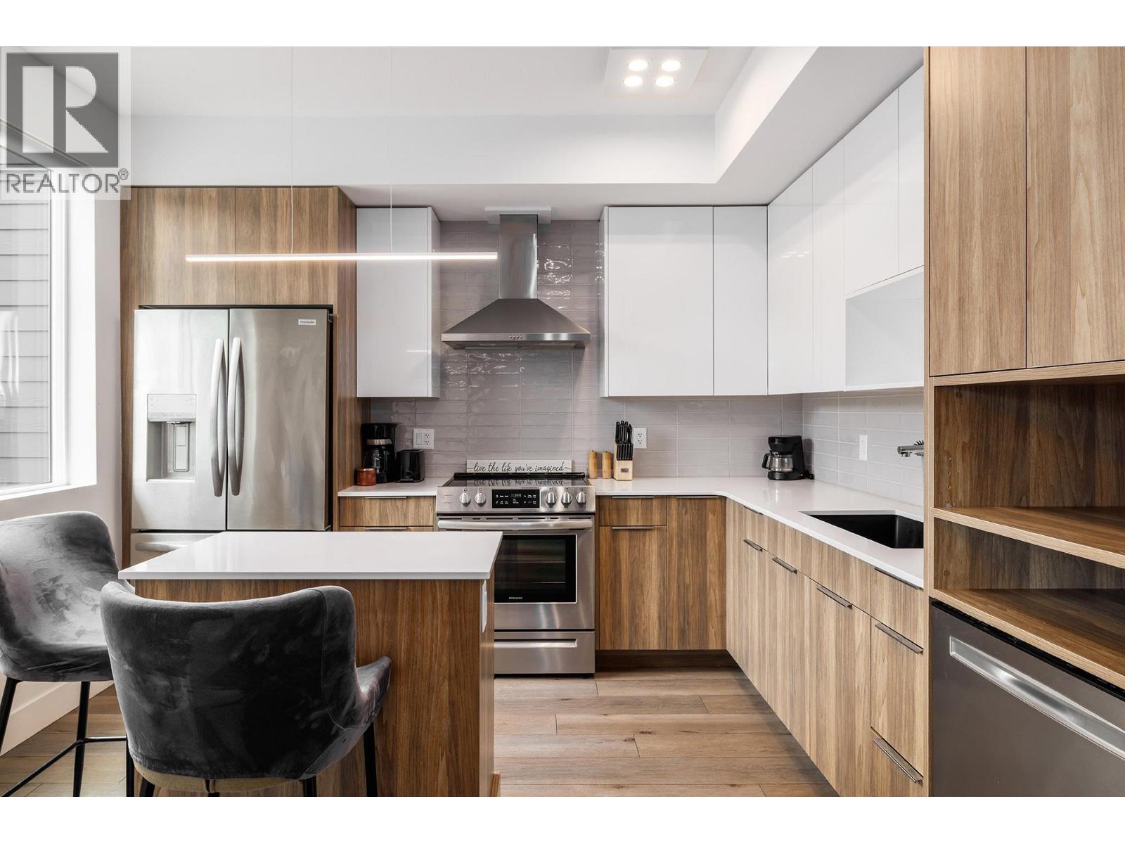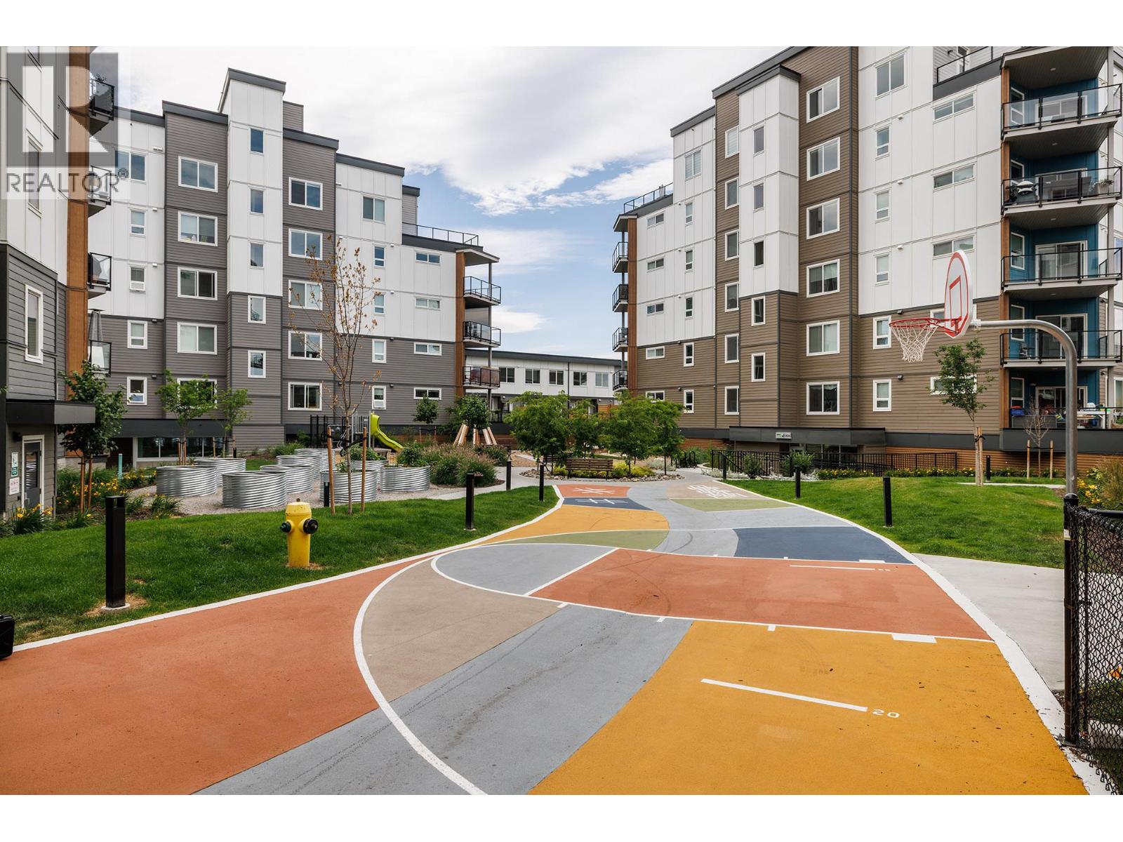 Welcome to Green Square in Kelowna’s Lower Mission—an ideal home base for professionals, downsizers, or investors. This 1-bedroom + den, 1-bath condo offers 750 sq. ft. of bright, functional living space and can be sold fully turnkey for added convenience. The kitchen features quartz countertops, soft-close components in cabinetry, and quality Frigidaire appliances, including an electric range with gas hookup available. An eat-in island with seating for two flows into the open living area, where sliding doors open to a spacious covered deck with glass railings, a gas line, and views of the surrounding mountains. The primary bed room includes a walk-in closet and direct access to the 4-piece bath with a floating vanity and tub/shower combination. A separate den provides flexible space for guests or a home office, while in-suite laundry and A/C offer comfort and practicality. Located just steps from Casorso Elementary and walking distance to beaches, restaurants, shops, Pandosy Village, breweries, and wineries. The pet-friendly building also features a rooftop patio with panoramic views—perfect for enjoying the Okanagan lifestyle. Vacant & ready for quick possession! (id:21321)