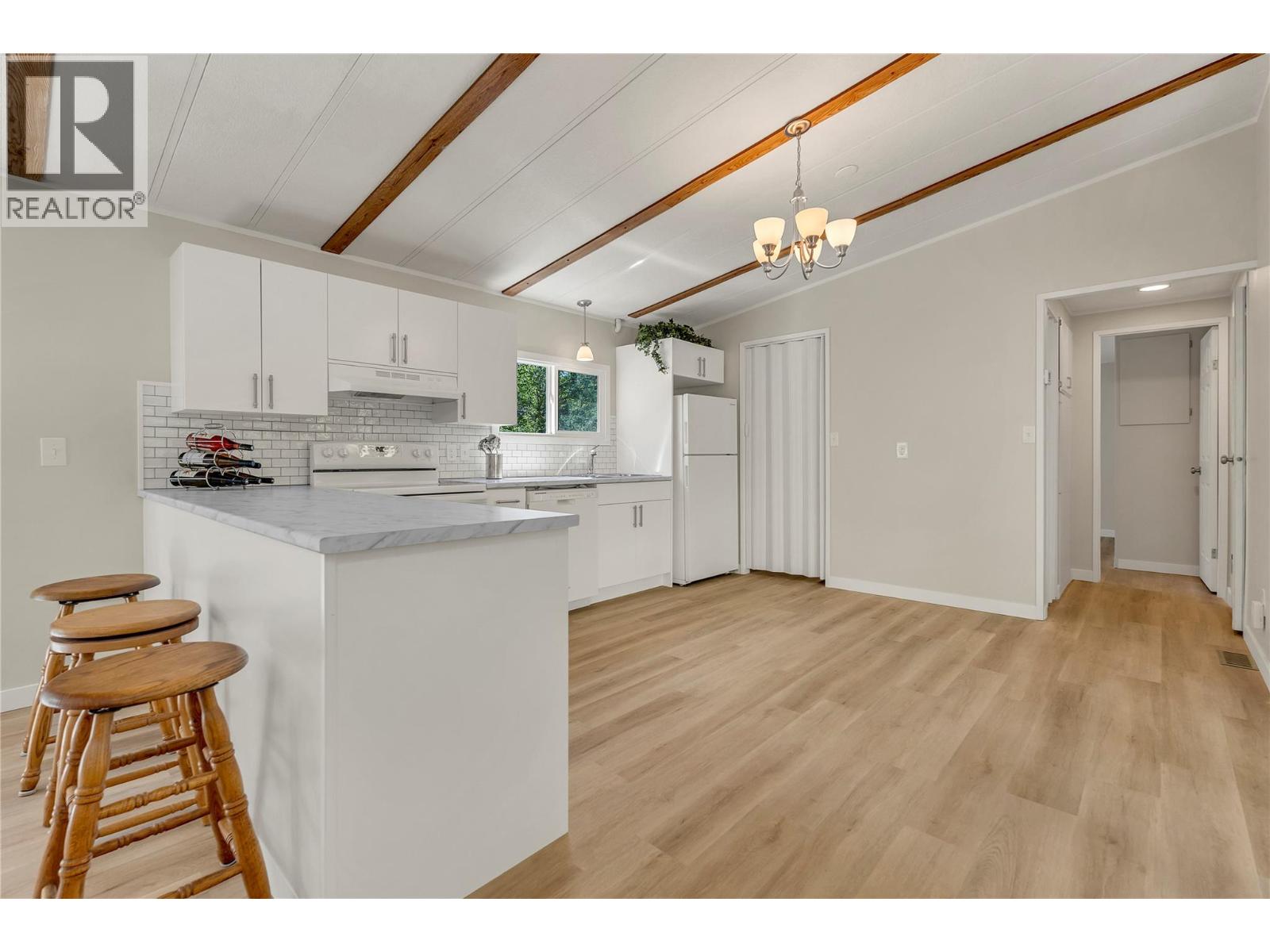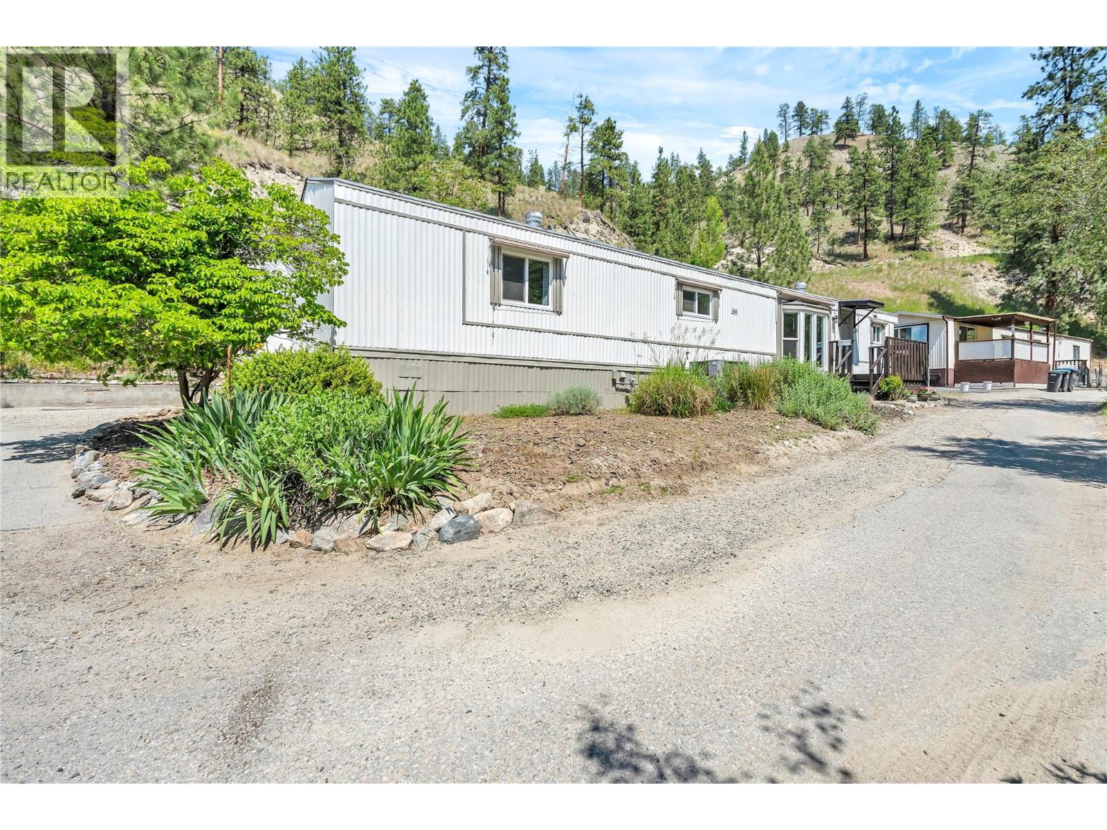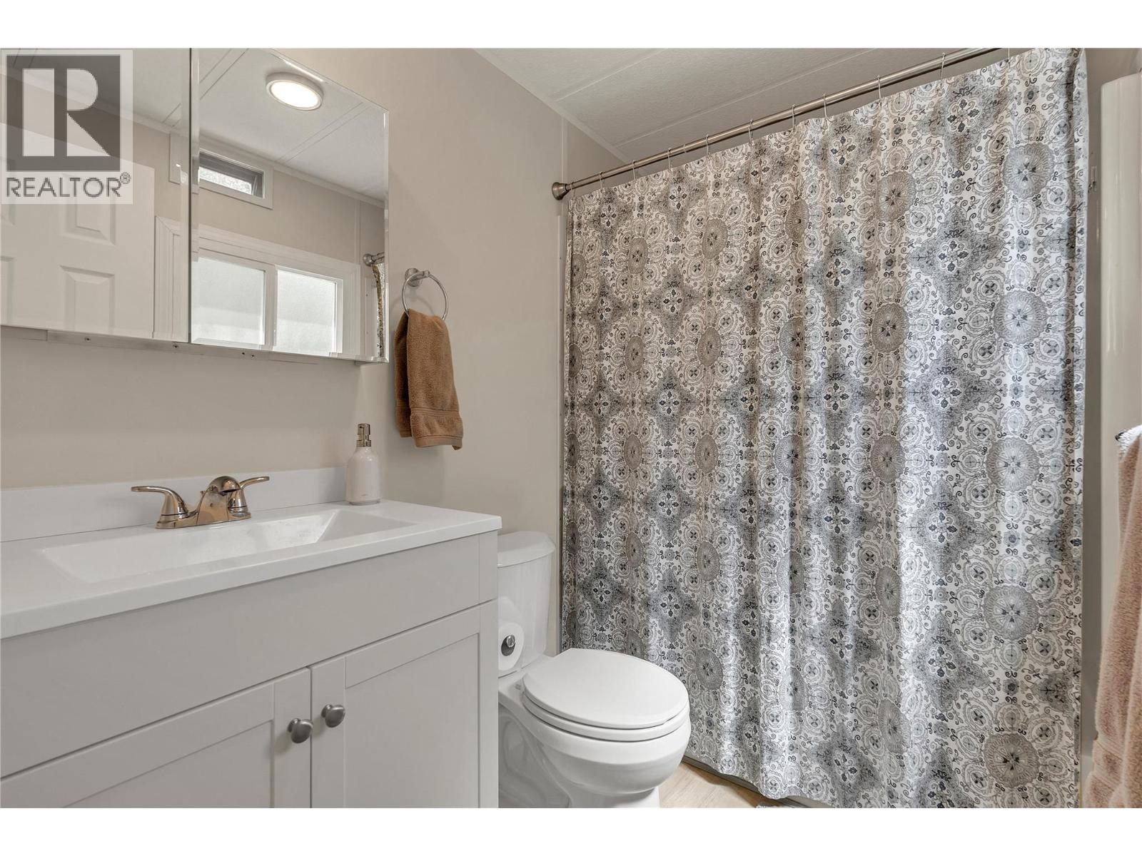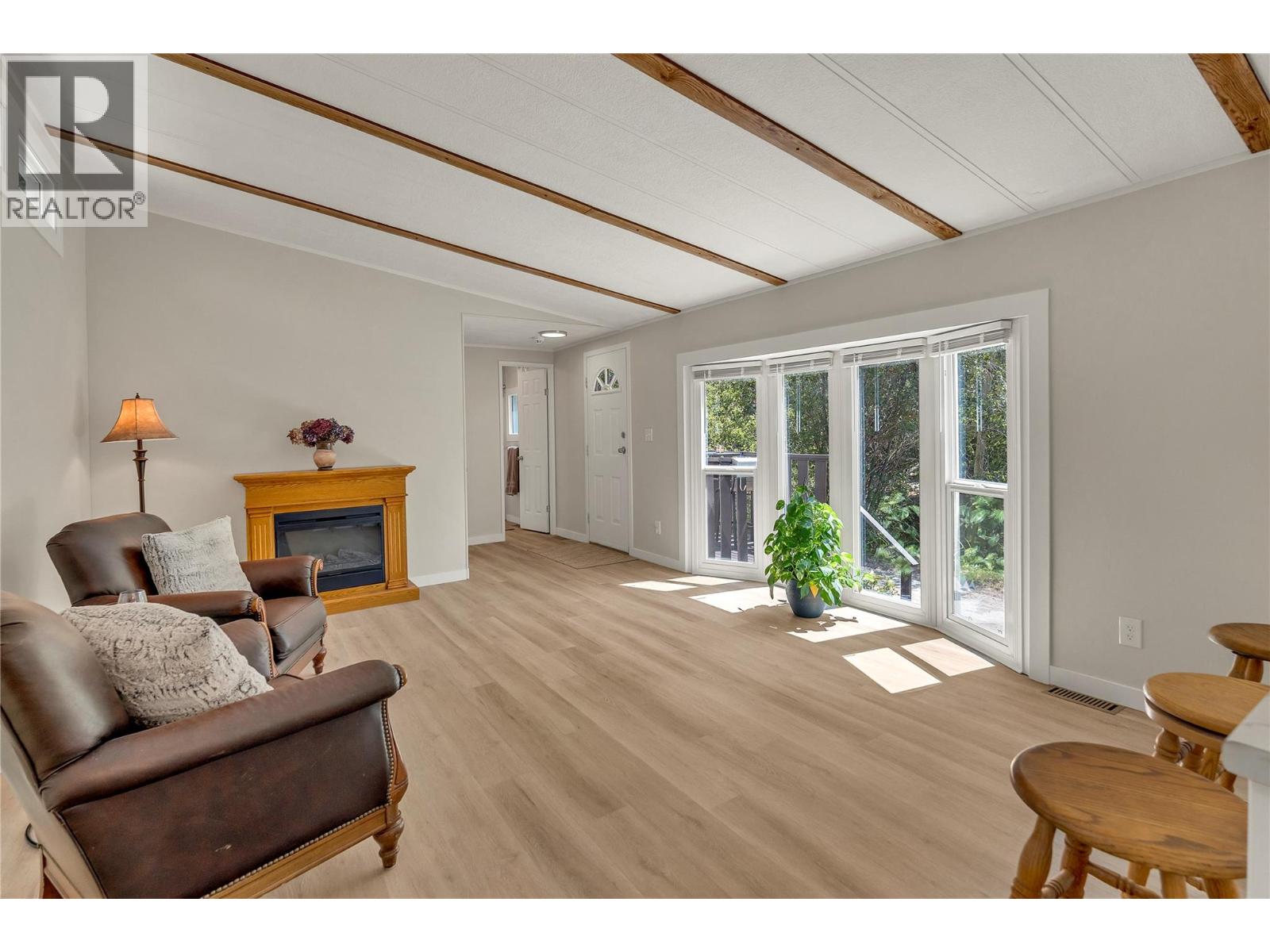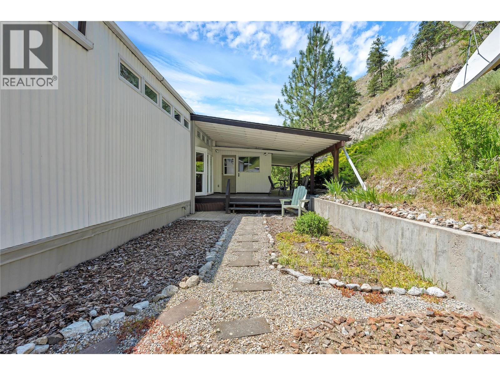 Welcome to Pleasant Valley, one of the most unique mobile home parks in the Okanagan—just a short, level drive to the heart of Penticton. Surrounded by nature and bordered by the ever-flowing, beautiful Penticton Creek, this park offers a peaceful setting unlike any other. This substantially renovated 3-bedroom, 2-bathroom home is tucked away in a private, low-traffic area across the creek, where the soothing sound of water and the natural surroundings create a serene atmosphere. The home feels far from a typical mobile, with its high shed-style ceilings, abundant natural light, and absence of narrow hallways. Inside, the impressive renovations include a new kitchen and bathrooms, updated flooring throughout, fresh interior and exterior paint, modern light fixtures, and plumbing. Outside, the spacious yard is ideal for outdoor living and hobbies, featuring a large covered deck, a flat and private backyard, and even a small patio area overlooking the creek. There is ample parking, and the park also offers RV parking (subject to availability and a monthly fee). Pleasant Valley is a well-managed 55+ community that allows two pets (size restrictions apply). (id:21321)