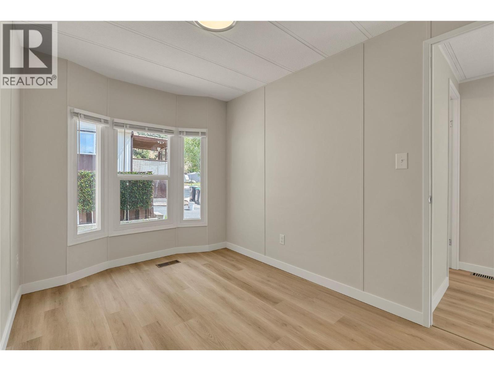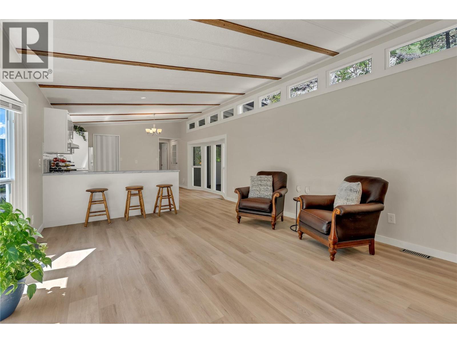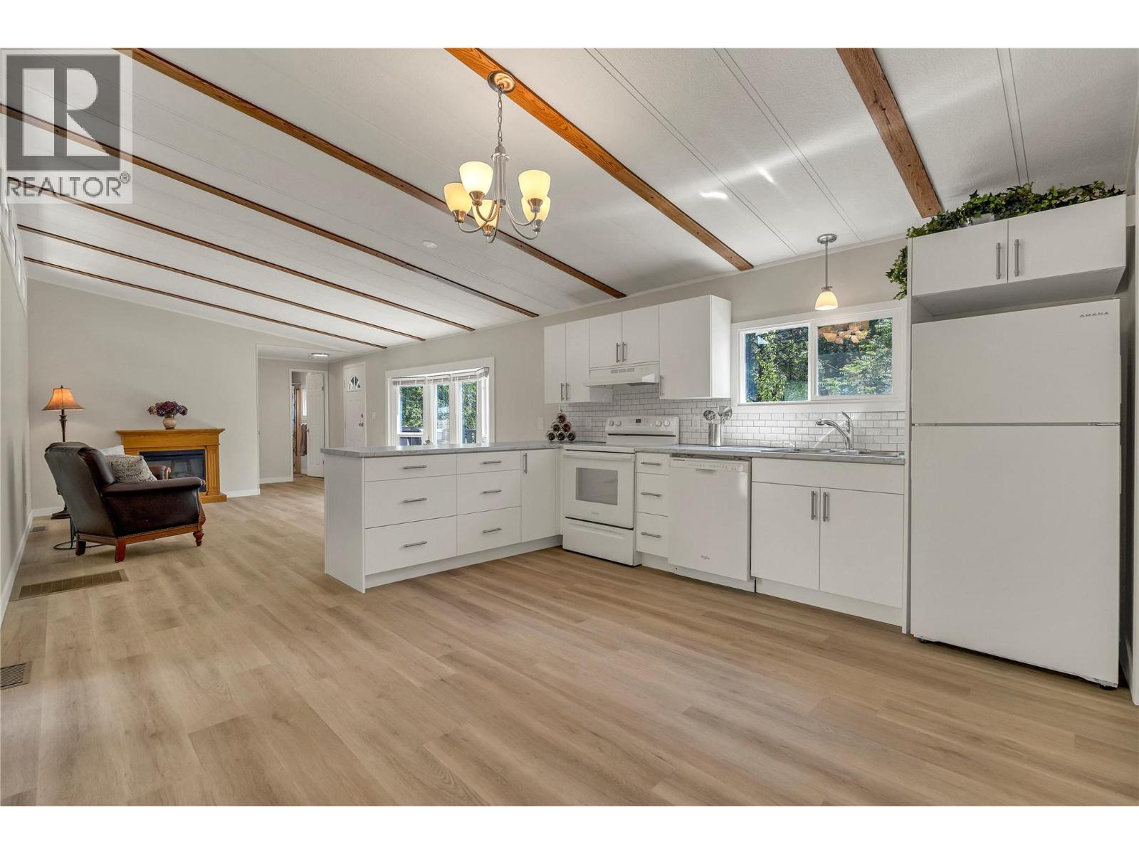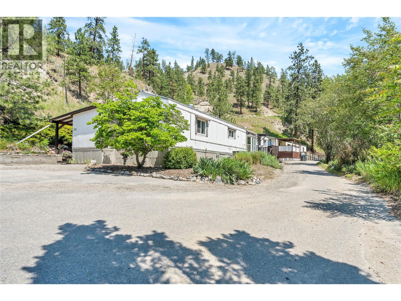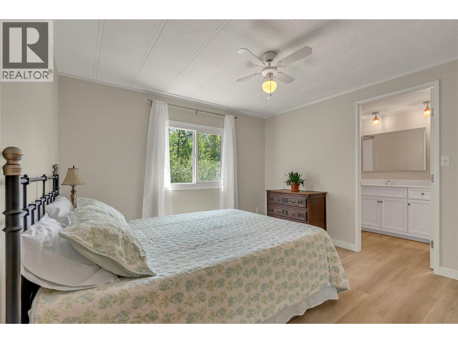 Welcome to Pleasant Valley, one of the most unique mobile home parks in the Okanagan—just a short, level drive to the heart of Penticton. Surrounded by nature and bordered by the ever-flowing, beautiful Penticton Creek, this park offers a peaceful setting unlike any other. This substantially renovated 3-bedroom, 2-bathroom home is tucked away in a private, low-traffic area across the creek, where the soothing sound of water and the natural surroundings create a serene atmosphere. The home feels far from a typical mobile, with its high shed-style ceilings, abundant natural light, and absence of narrow hallways. Inside, the impressive renovations include a new kitchen and bathrooms, updated flooring throughout, fresh interior and exterior paint, modern light fixtures, and plumbing. Outside, the spacious yard is ideal for outdoor living and hobbies, featuring a large covered deck, a flat and private backyard, and even a small patio area overlooking the creek. There is ample parking, and the park also offers RV parking (subject to availability and a monthly fee). Pleasant Valley is a well-managed 55+ community that allows two pets (size restrictions apply). (id:21321)