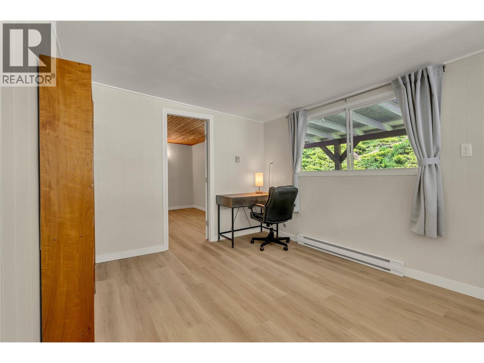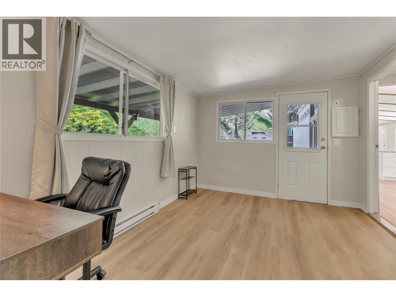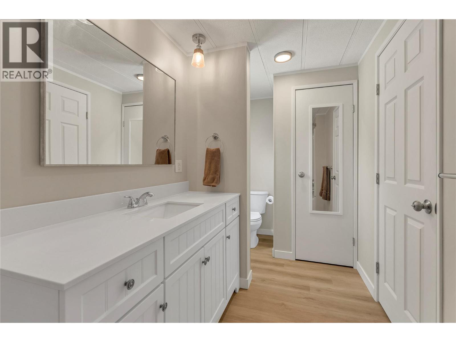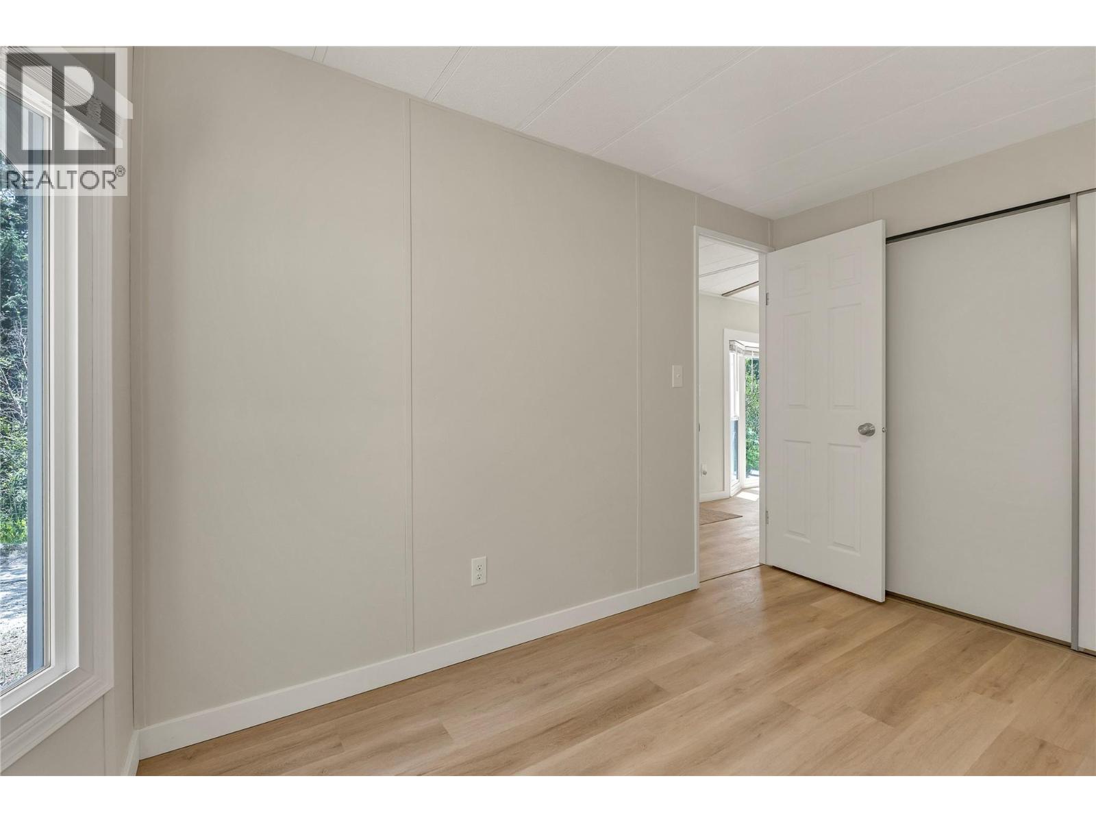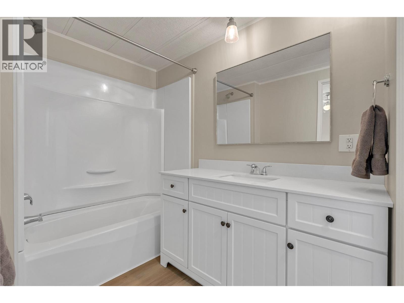 Welcome to Pleasant Valley, one of the most unique mobile home parks in the Okanagan—just a short, level drive to the heart of Penticton. Surrounded by nature and bordered by the ever-flowing, beautiful Penticton Creek, this park offers a peaceful setting unlike any other. This substantially renovated 3-bedroom, 2-bathroom home is tucked away in a private, low-traffic area across the creek, where the soothing sound of water and the natural surroundings create a serene atmosphere. The home feels far from a typical mobile, with its high shed-style ceilings, abundant natural light, and absence of narrow hallways. Inside, the impressive renovations include a new kitchen and bathrooms, updated flooring throughout, fresh interior and exterior paint, modern light fixtures, and plumbing. Outside, the spacious yard is ideal for outdoor living and hobbies, featuring a large covered deck, a flat and private backyard, and even a small patio area overlooking the creek. There is ample parking, and the park also offers RV parking (subject to availability and a monthly fee). Pleasant Valley is a well-managed 55+ community that allows two pets (size restrictions apply). (id:21321)