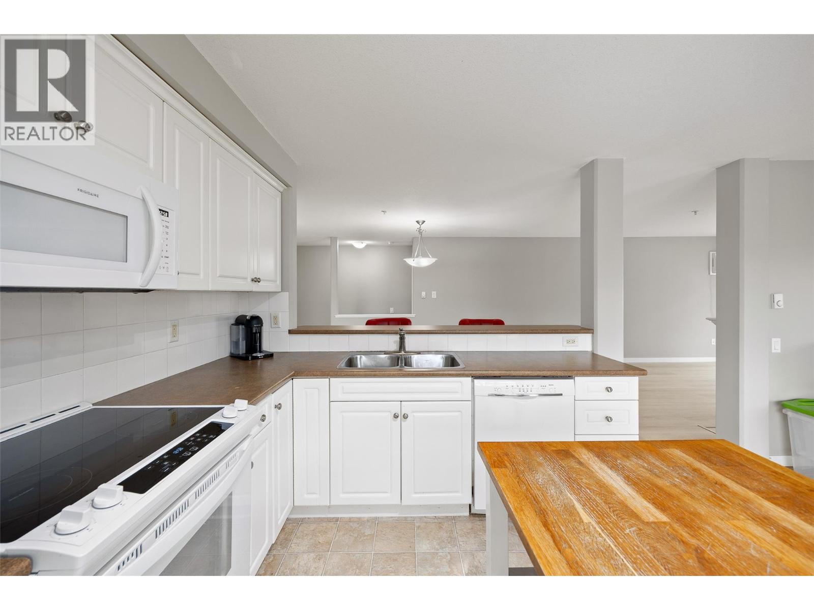 The Ultimate Lower Mission Lifestyle. This bright 2-bed corner unit in Wildwood Village is fully refreshed with new flooring, fresh paint, and updated appliances. The open-concept layout flows onto a massive wrap-around patio—perfect for entertaining. Enjoy a premier Okanagan location: steps to the beach, H2O Centre, golf courses, and wineries. Includes a cozy fireplace, A/C, underground parking, and a building guest suite. Modern, spacious, and move-in ready. Pet & Rental friendly. Truly a must-see! (id:21321)