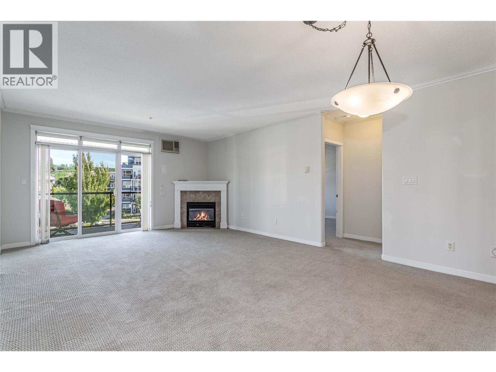 Spacious & well maintained 2 bedroom, 2 bathroom condo in the heart of North Glenmore! Welcome to Brandt’s Crossing - a quiet, gated community just steps from all amenities and directly across the street from a park. This corner unit features a split-bedroom layout for optimal privacy. The primary suite includes a walk-through closet and a 4-piece en-suite as well as a separate A/C unit. The second bedroom, currently used as a den, boasts two large windows that flood the space with natural light. Want a full second bedroom? Simply add a door to convert it back! The open-concept living and dining area is perfect for entertaining, complete with a cozy gas fireplace and access to the first of two balconies. The bright kitchen offers ample cabinetry, generous counter space, and access to a second balcony—ideal for your morning coffee. Additional features include: In-suite laundry/storage room, central vac, storage locker (located just down the hall), secure underground parking, pet-friendly and well-managed strata! Enjoy a range of on-site amenities, including a fitness center, games room, social lounge, workshop, bike storage, and a guest suite. Location is everything—and this condo is just a short walk to shopping, restaurants, coffee shops, schools & parks! Plus, you're only minutes from UBCO, Kelowna International Airport, and downtown Kelowna. Come have a look today & don’t miss your chance to experience the best of the Okanagan lifestyle! (id:21321)