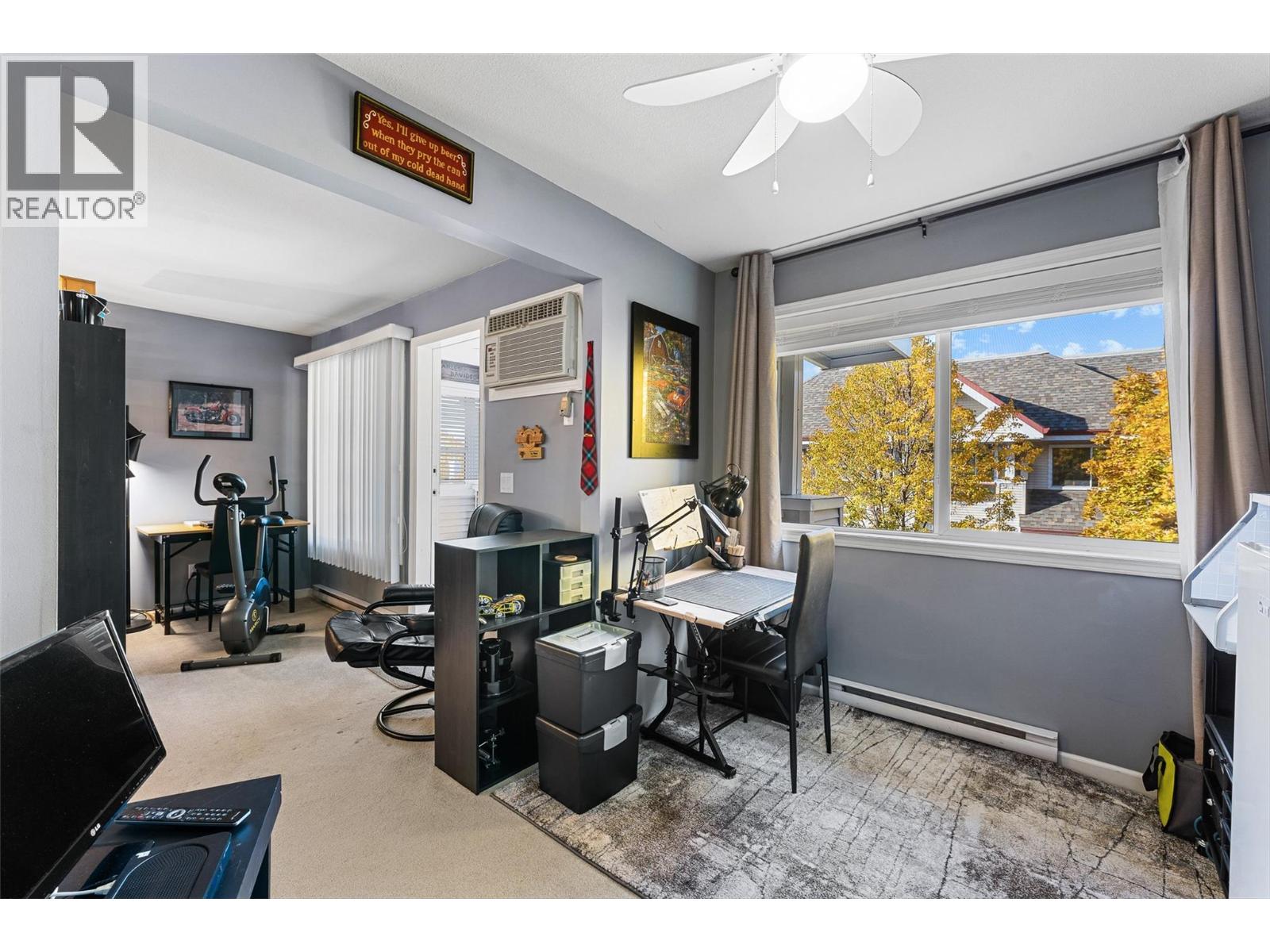 Perched quietly on the top floor, this 1-bedroom + den condo offers more than just a home, it offers peace of mind in a welcoming community. Designed for low-maintenance living, the open-concept layout features a functional kitchen with warm cabinetry and a double sink, flowing into an open living space and an enclosed sunroom that invites year-round use - think morning coffee nook, craft space, or a reading retreat. The den makes an ideal home office or hobby area. The building itself feels like an extension of your living room, with amenities including a clubhouse, shuffleboard, pool table, guest suite, gym, BBQ patio, and even garden plots for green thumbs. A secured parking spot, storage locker and workshop add practical appeal. Pet-friendly (1 cat or 1 small dog allowed) and just a short stroll to Capri Mall, groceries, and local dining, this unit offers comfort and connection in a convenient, central location. (id:21321)