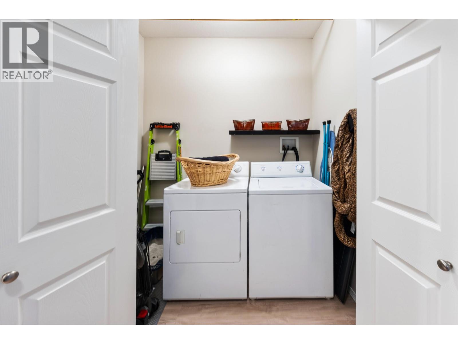 Welcome to this beautifully updated 2-bedroom, 2-bathroom condo offering 1,116 sq ft of comfortable living in a highly convenient location with 9 foot ceilings and mountain views. This bright and spacious unit features new laminate flooring in the main living area, fresh modern paint, and a functional open-concept layout perfect for everyday living and entertaining, with large windows that showcase the surrounding mountain scenery. The kitchen is equipped with newer appliances and ample cabinetry, flowing seamlessly into the dining and living areas. The primary bedroom includes a generous closet and private ensuite, while the second bedroom and full bathroom provide flexibility for guests, a home office, or additional living space. Enjoy the unbeatable lifestyle this location offers—just steps to transit, shopping, restaurants, and everyday amenities. Nature lovers will appreciate being close to Mission Creek Green Way, with easy access to scenic walking and hiking trails right at Mission Creek Park. Additional features include in-suite laundry, amenities room, gym, secure parking, and a well-maintained building. An excellent opportunity for first-time buyers, downsizers, or investors—this move-in ready home offers exceptional value in a sought-after area. Book your showing today! One dog or one cat allowed with size restrictions (id:21321)