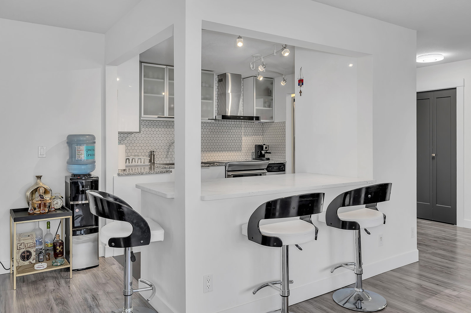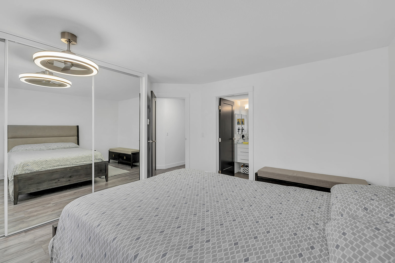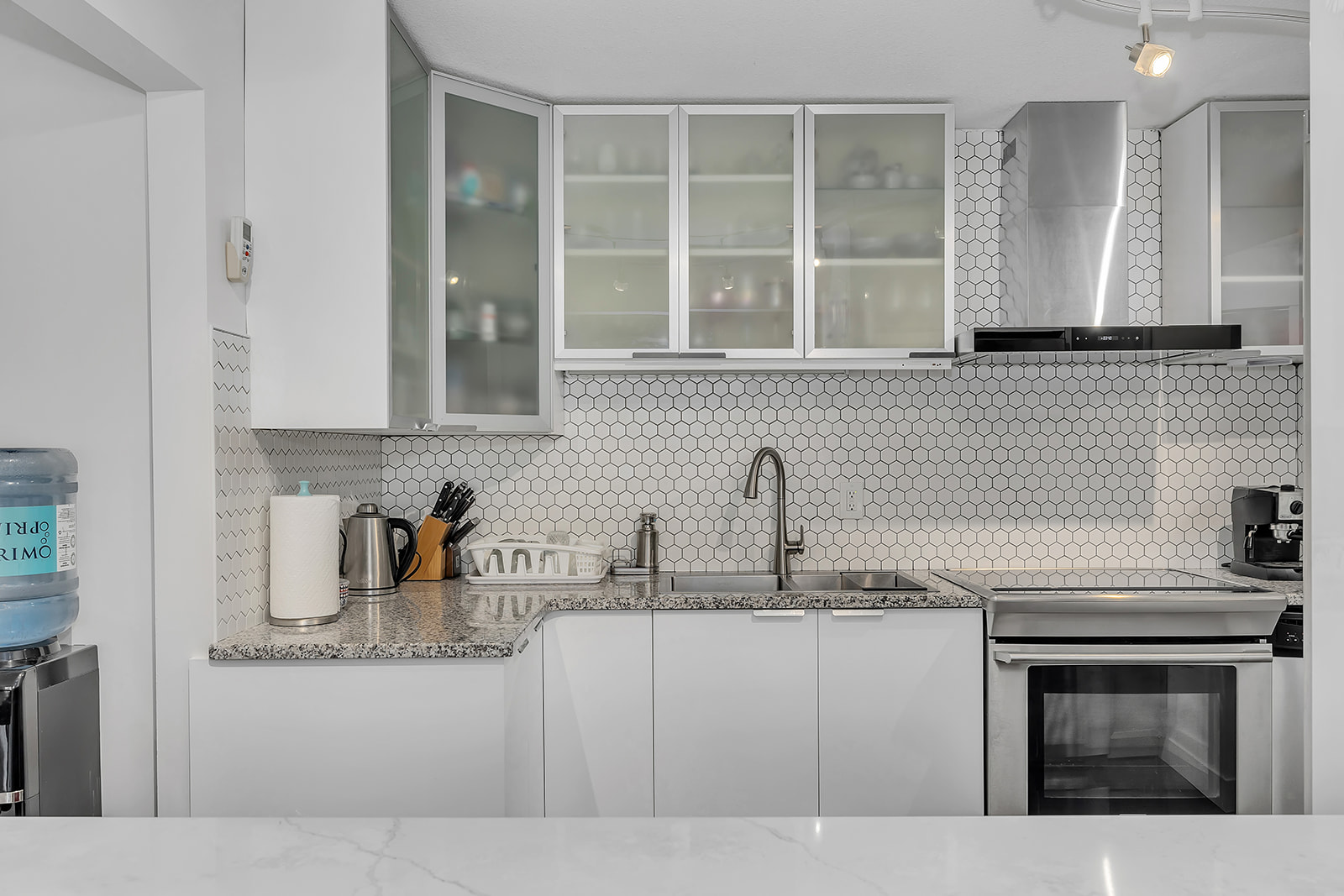 Welcome to 312-780 Houghton Road, a bright and open 2-bed, 2-bath end-unit condo suite in Peachtree Place. Step inside and you'll immediately notice the thoughtful upgrades throughout this fully renovated home. The kitchen features newer stainless steel appliances, a dual-basin sink, a quartz island with bar seating, a new overhead range hood, ample cupboard space, and easy-to-clean tile flooring. The dining and living areas are adjacent to the kitchen, leading to a cozy corner patio. The spacious bedrooms are on opposite ends of the home for added privacy, with the primary offering an ensuite and large windows that fill the space with natural light, plus a second bedroom with a large walk-in closet. Both bathrooms have been fully updated with modern vanities, glass showers with waterfall showerheads, and stylish fixtures. The large laundry room doubles as extra storage, and two extra closets provide plenty of space to stay organized. Further upgrades include brand-new doors, light fixtures, and modern appliances. Plus, with no shared walls, you'll enjoy peace and quiet! Peachtree Place is ideally located just steps from restaurants, grocery stores, schools, and public transit, and is a short drive from YLW, UBCO, and downtown Kelowna. Ben Lee Park is directly across the street, offering trails, a water play area, sports courts, and more. The complex also features an exercise room, bike room, games room, library, and guest suite!