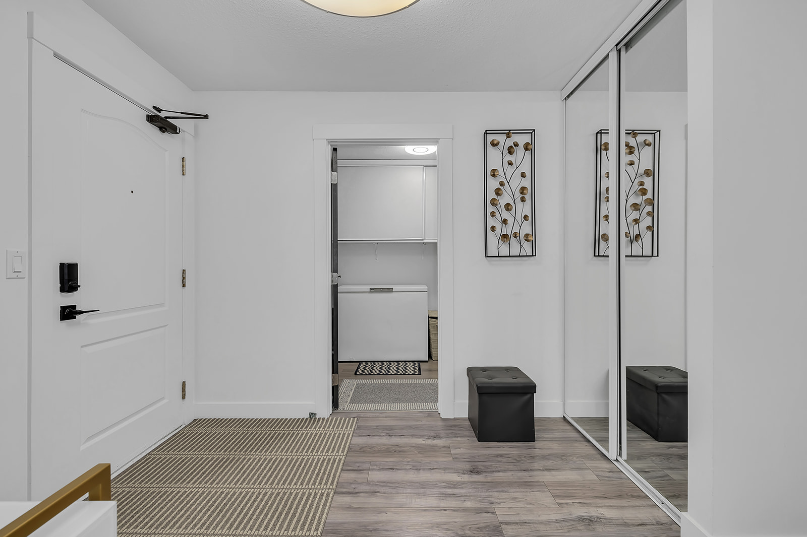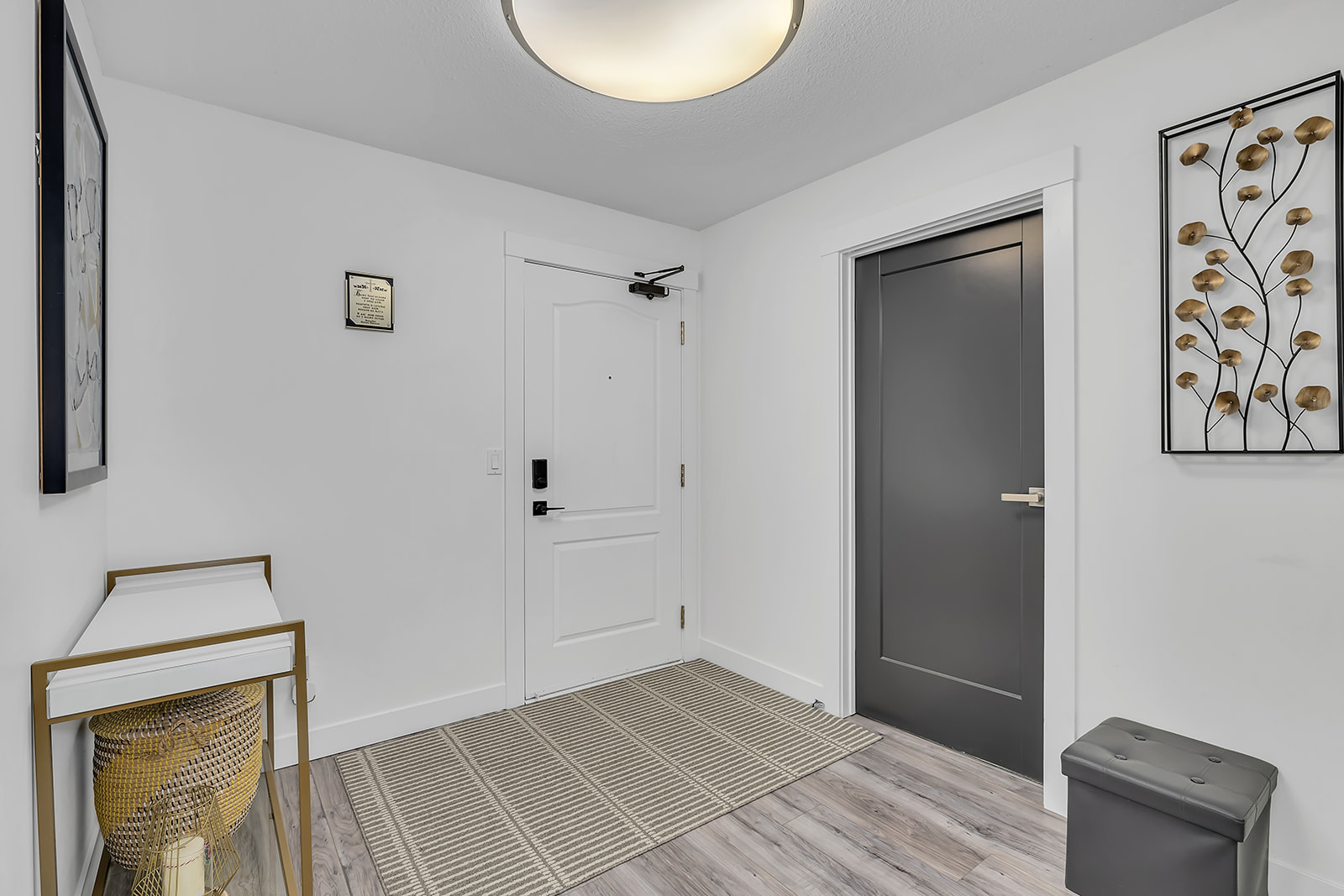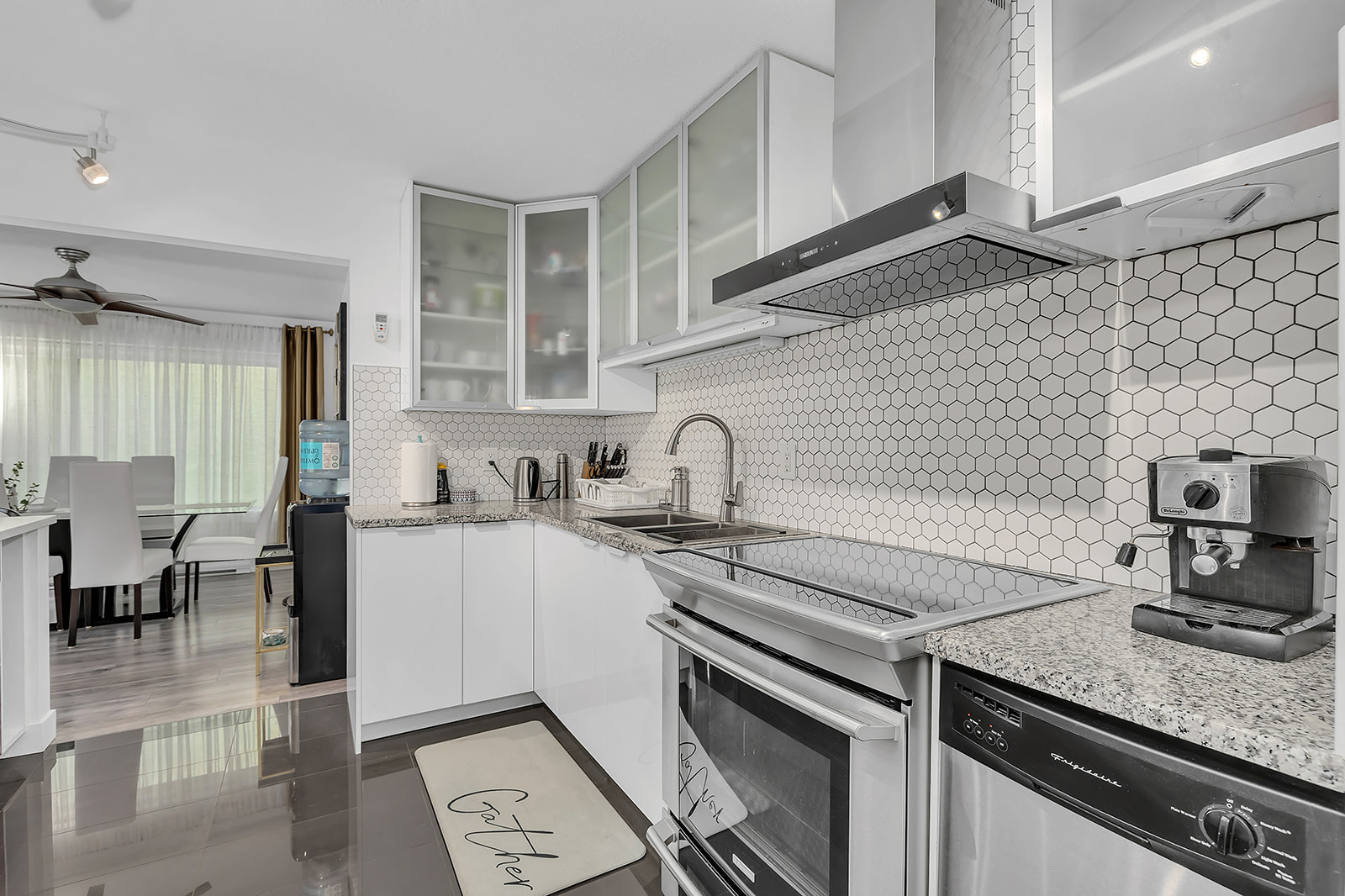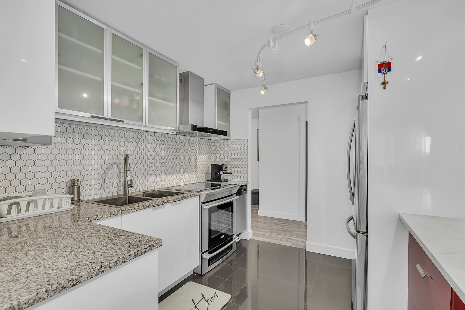 Welcome to 312-780 Houghton Road, a bright and open 2-bed, 2-bath end-unit condo suite in Peachtree Place. Step inside and you'll immediately notice the thoughtful upgrades throughout this fully renovated home. The kitchen features newer stainless steel appliances, a dual-basin sink, a quartz island with bar seating, a new overhead range hood, ample cupboard space, and easy-to-clean tile flooring. The dining and living areas are adjacent to the kitchen, leading to a cozy corner patio. The spacious bedrooms are on opposite ends of the home for added privacy, with the primary offering an ensuite and large windows that fill the space with natural light, plus a second bedroom with a large walk-in closet. Both bathrooms have been fully updated with modern vanities, glass showers with waterfall showerheads, and stylish fixtures. The large laundry room doubles as extra storage, and two extra closets provide plenty of space to stay organized. Further upgrades include brand-new doors, light fixtures, and modern appliances. Plus, with no shared walls, you'll enjoy peace and quiet! Peachtree Place is ideally located just steps from restaurants, grocery stores, schools, and public transit, and is a short drive from YLW, UBCO, and downtown Kelowna. Ben Lee Park is directly across the street, offering trails, a water play area, sports courts, and more. The complex also features an exercise room, bike room, games room, library, and guest suite!